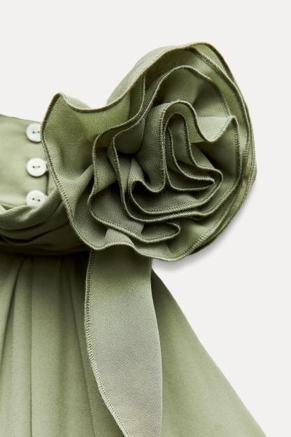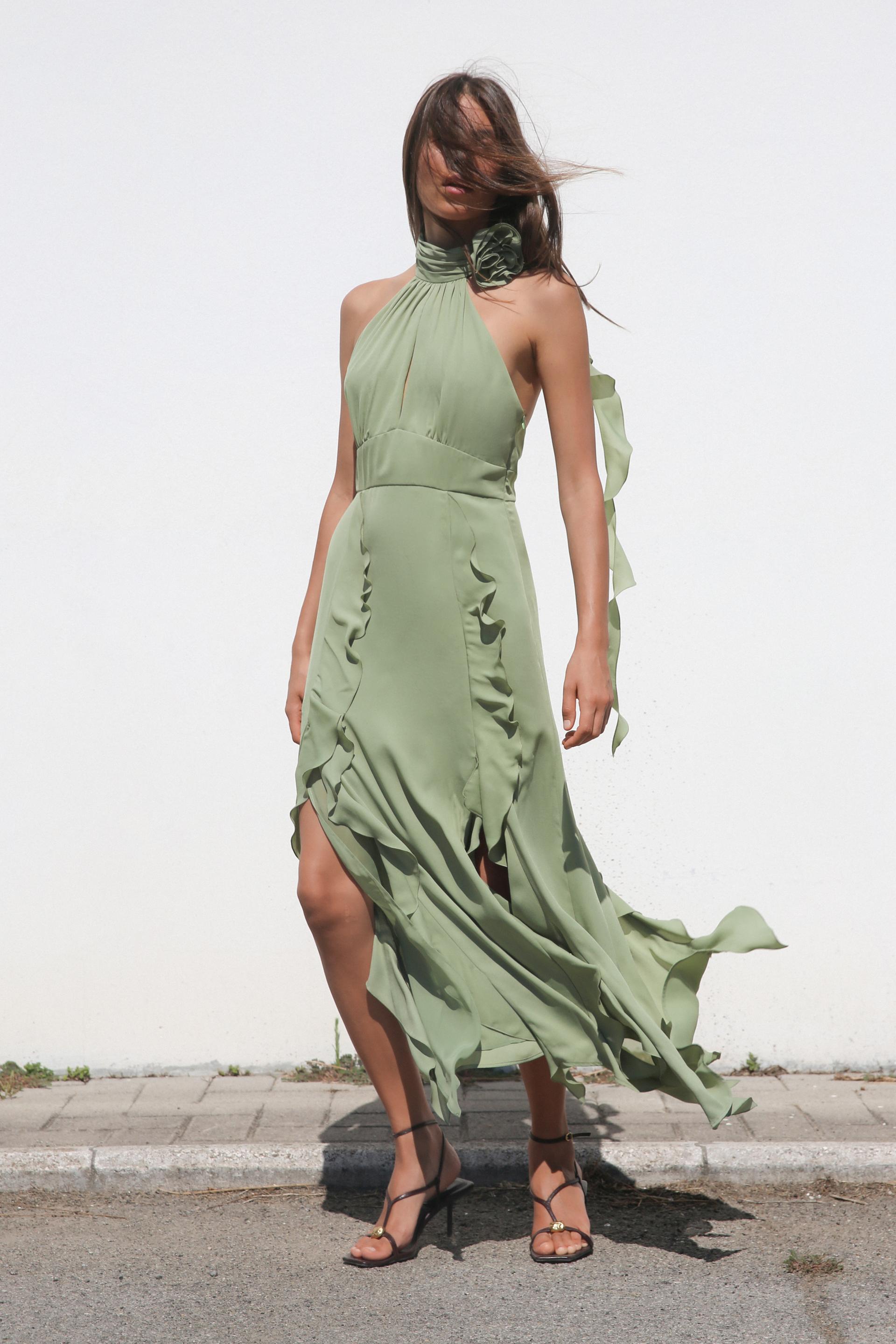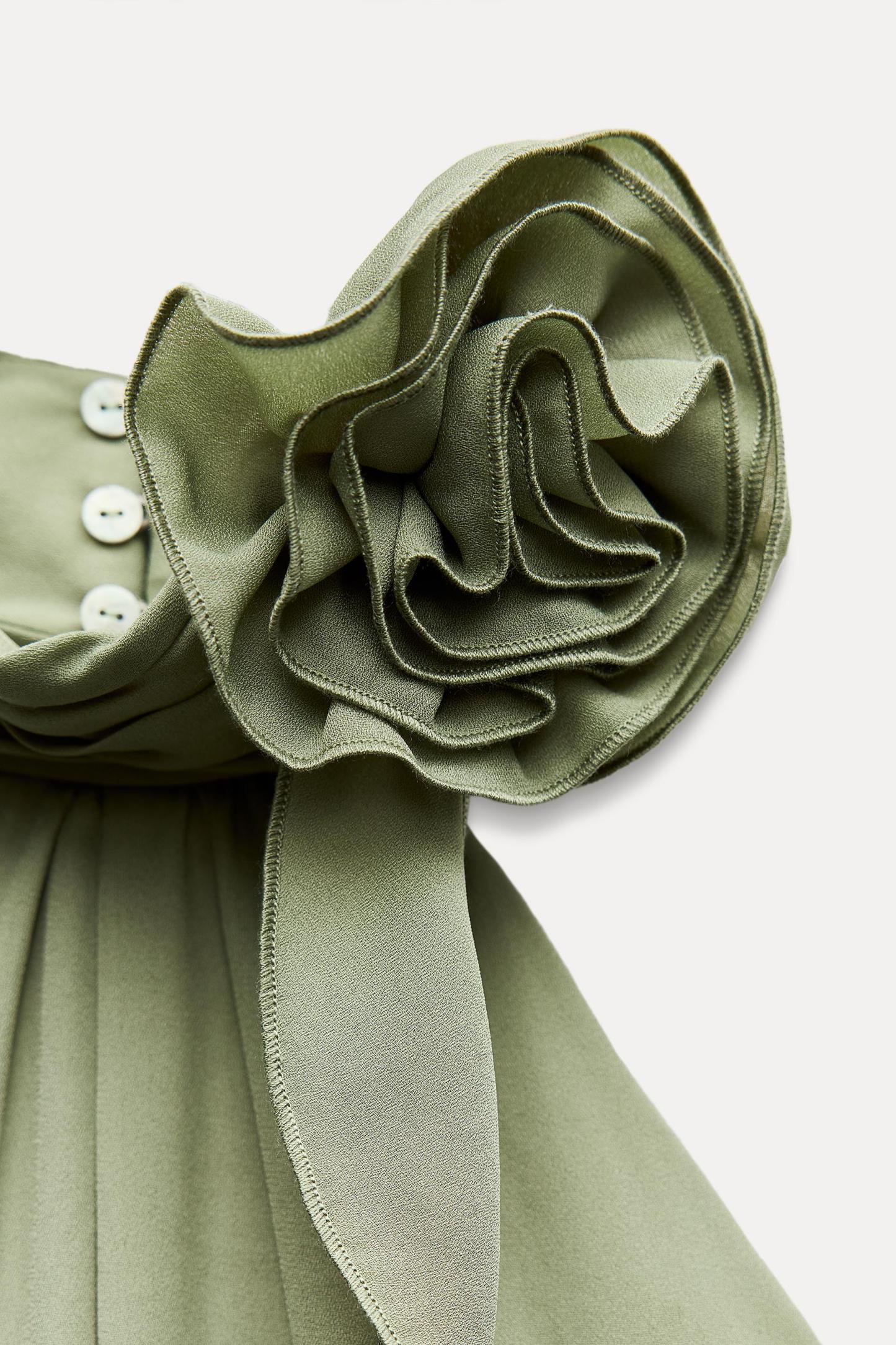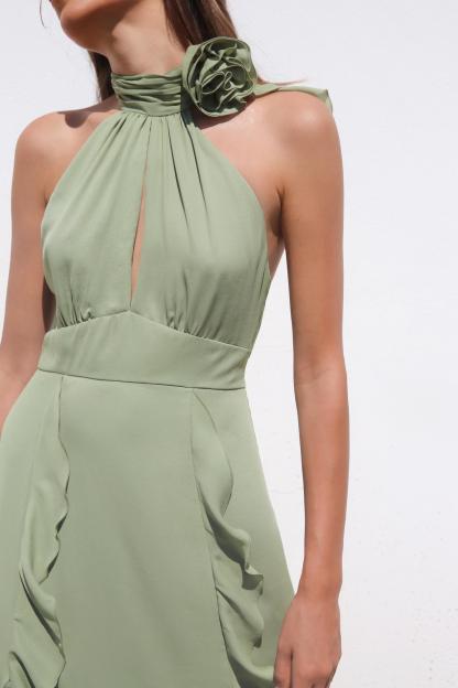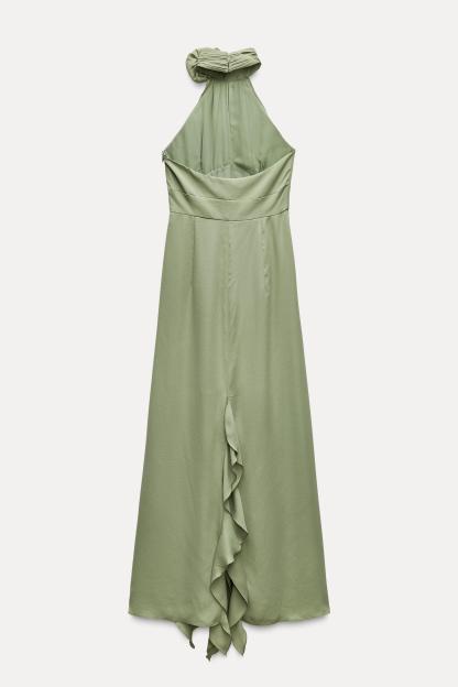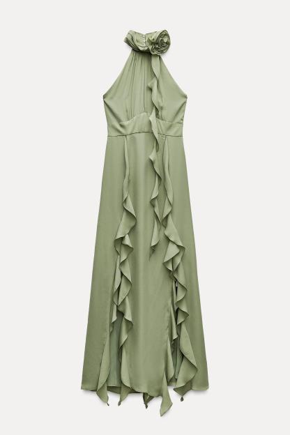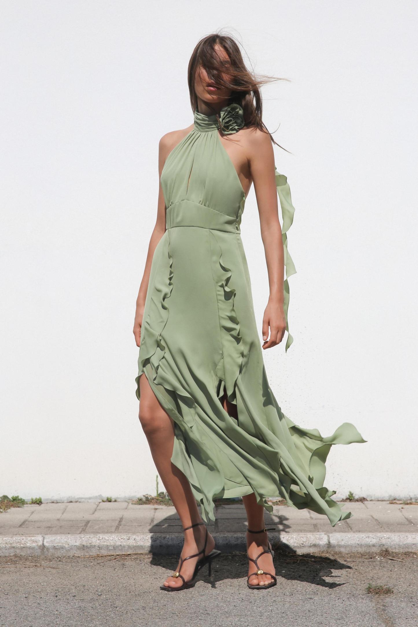 RUFFLED FLOWER HALTER NECK DRESS