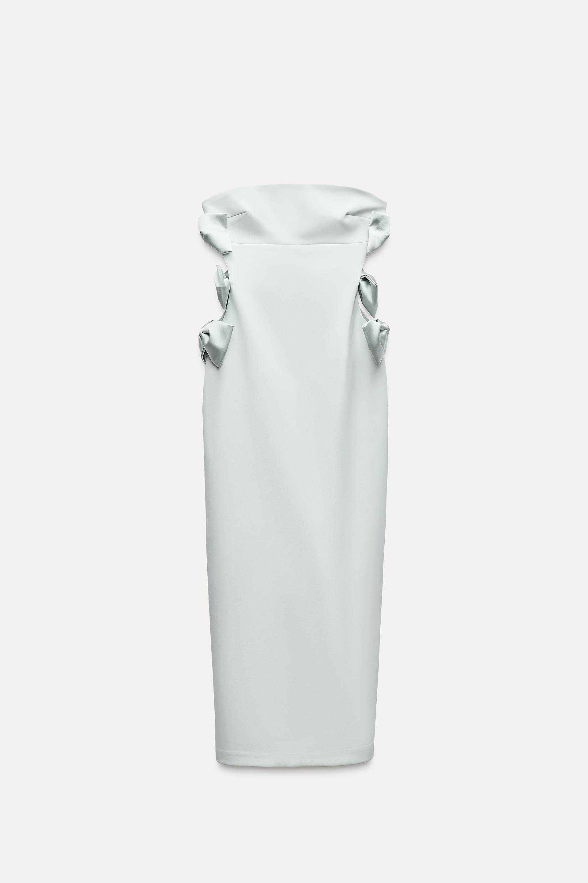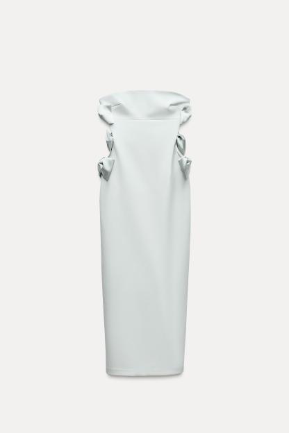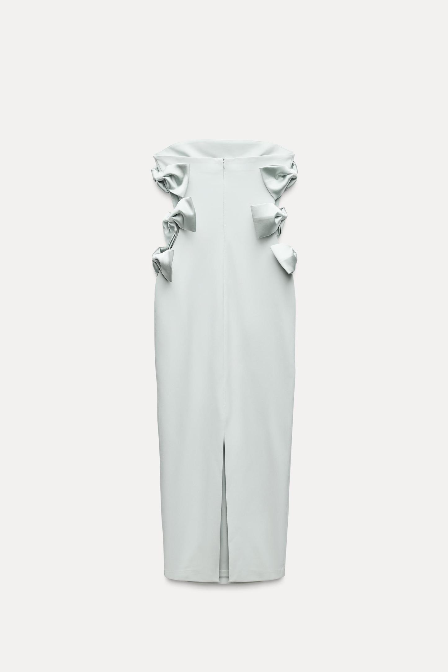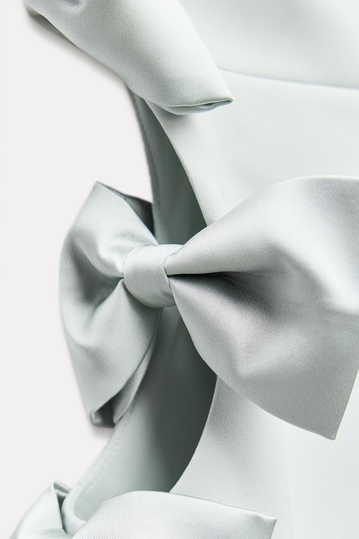 SATIN EFFECT BOW MIDI DRESS