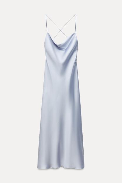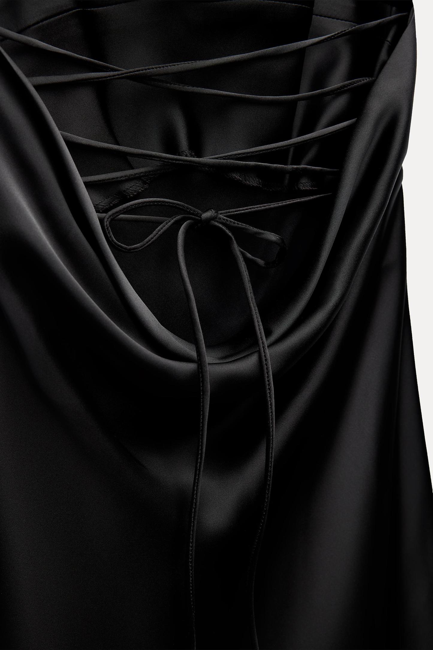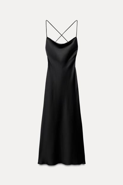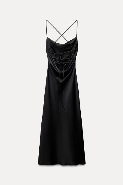 SATIN EFFECT DRAPED MIDI DRESS