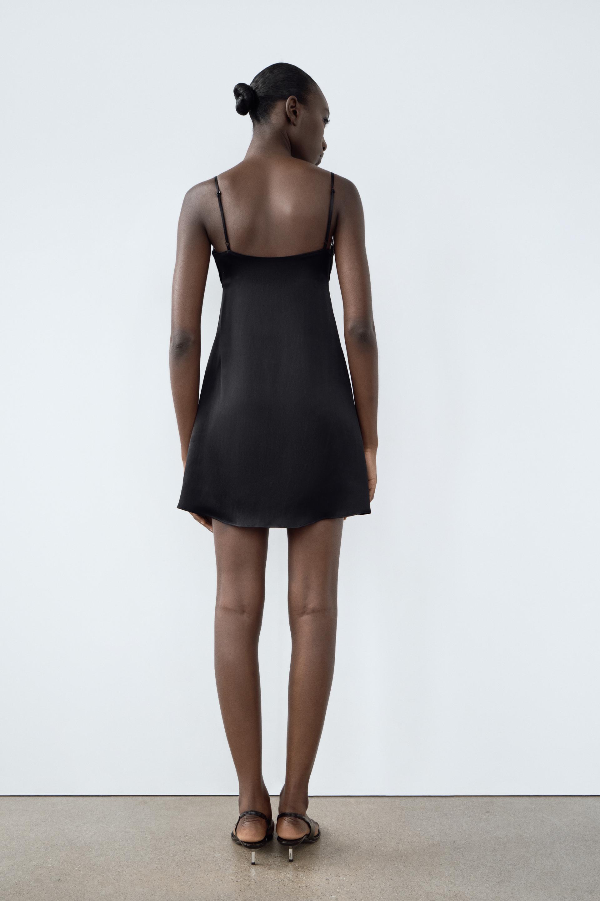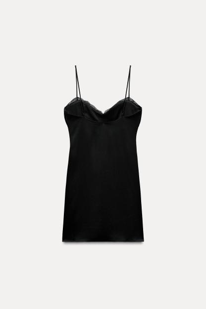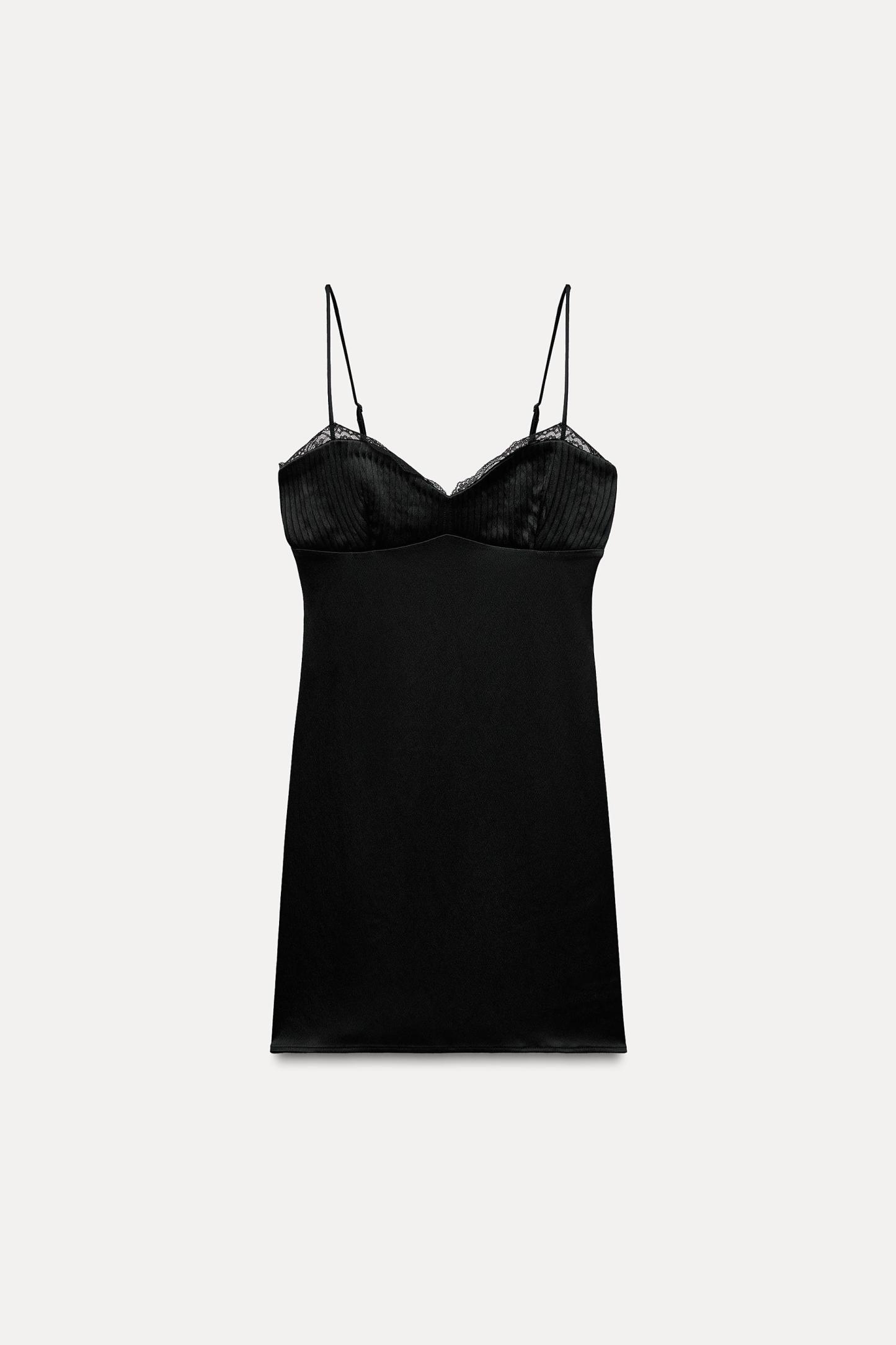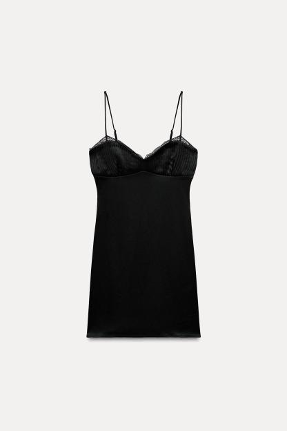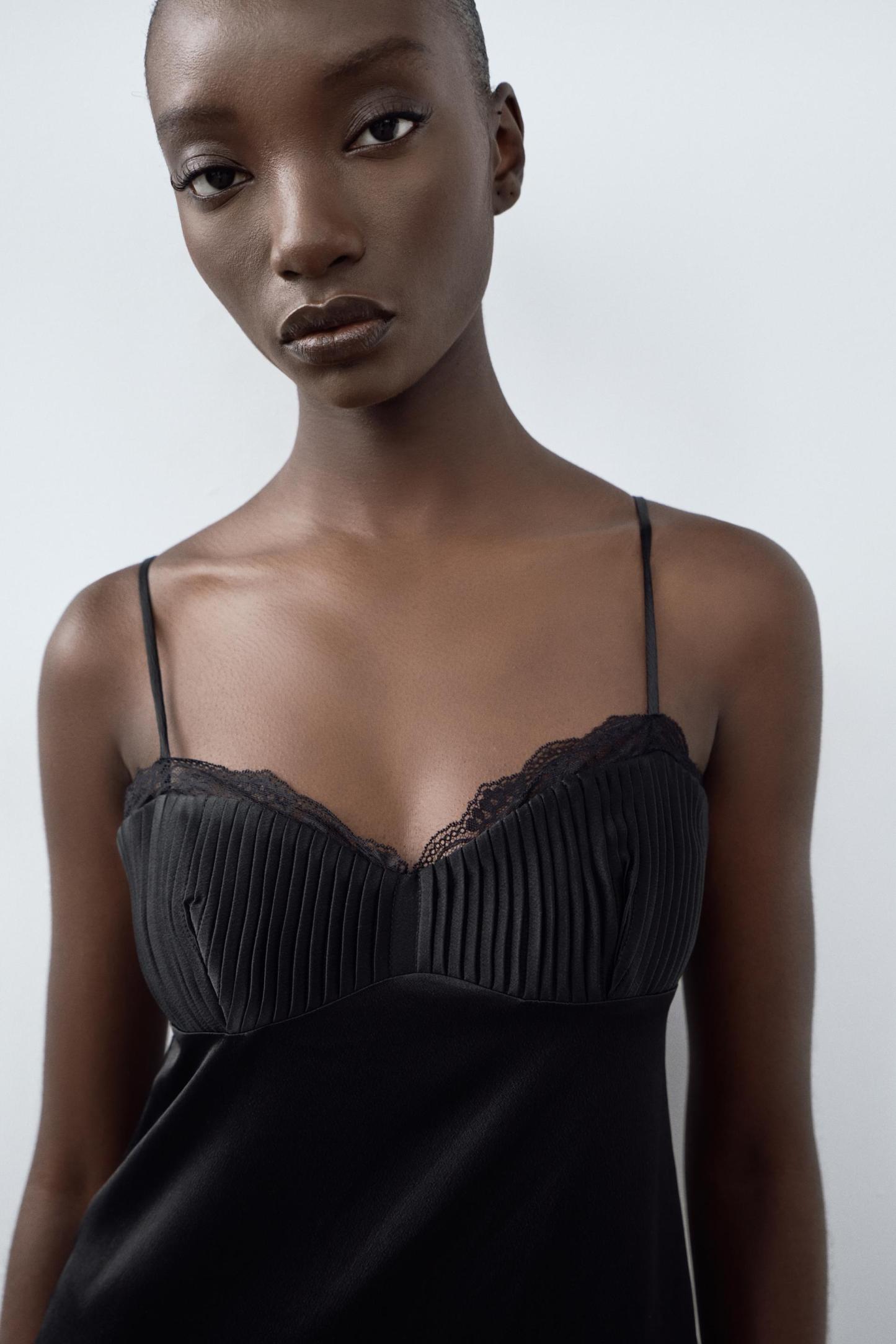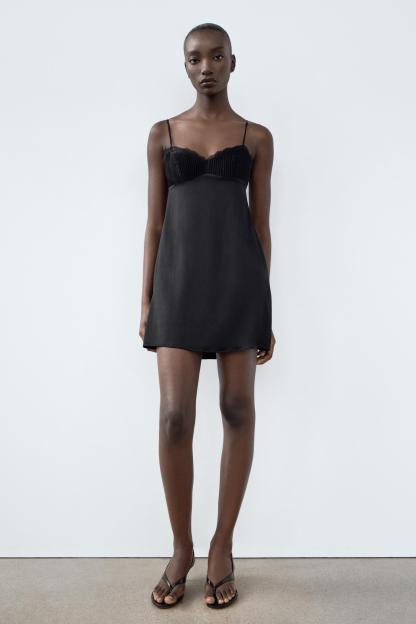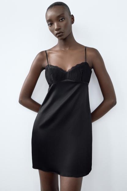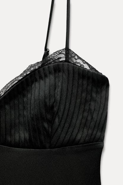 SATIN EFFECT PLEATED LACE DRESS