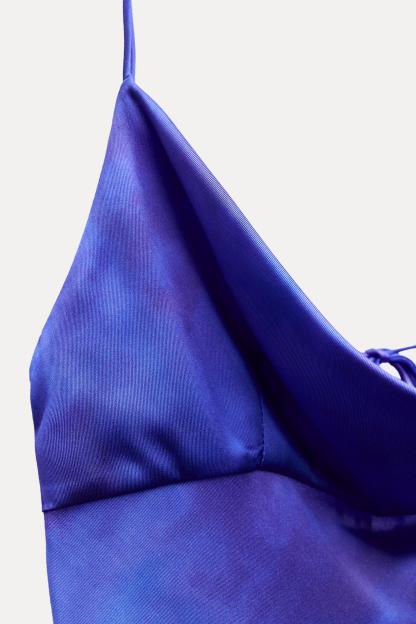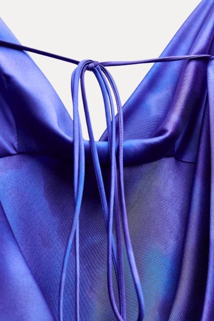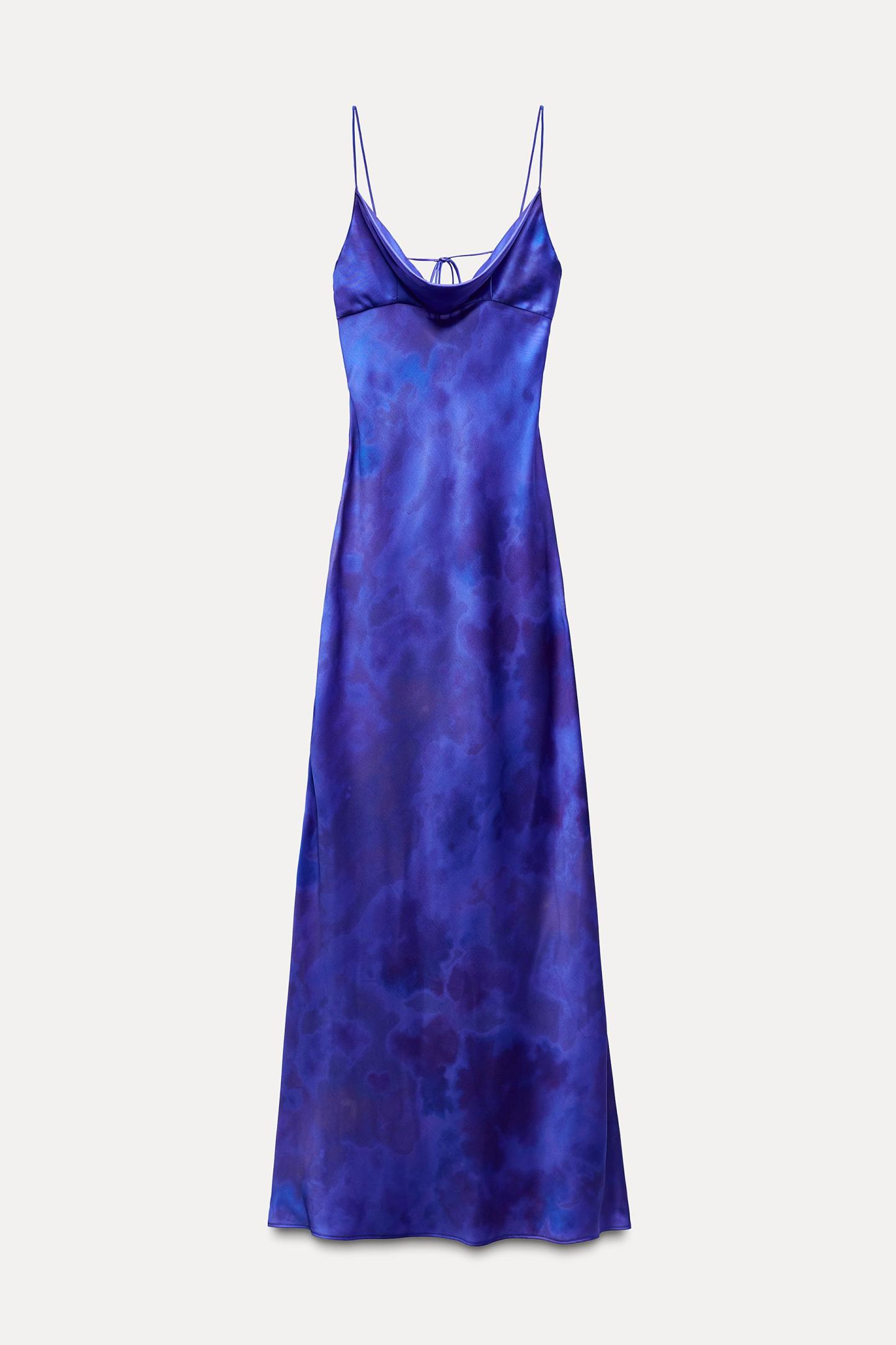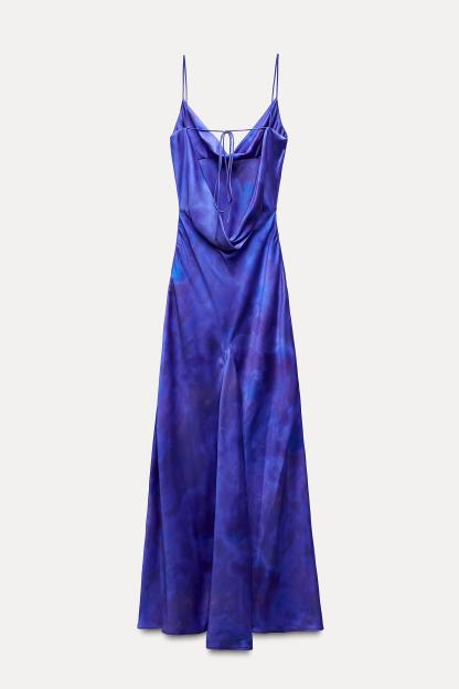 SATIN EFFECT PRINTED LONG DRESS