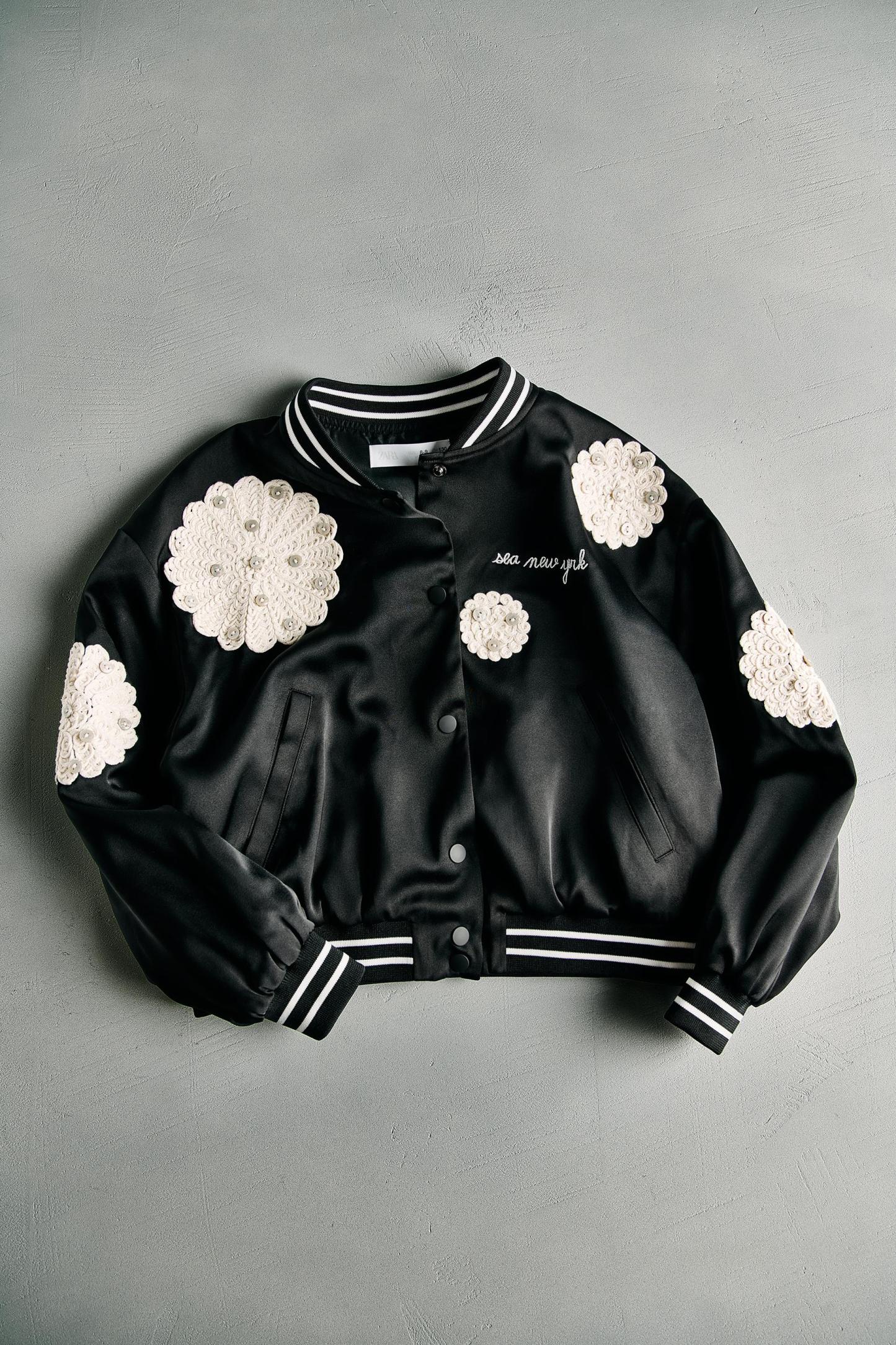 SEA NY FLORAL SATIN EFFECT BOMBER