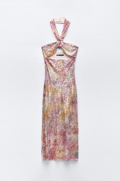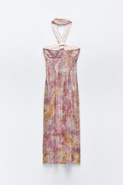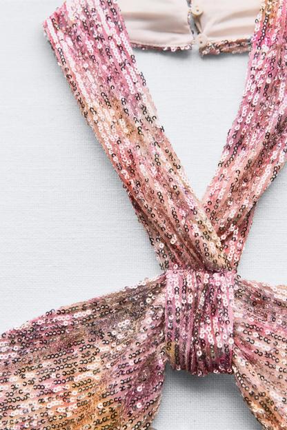 SEQUIN KNOTTED HALTER DRESS