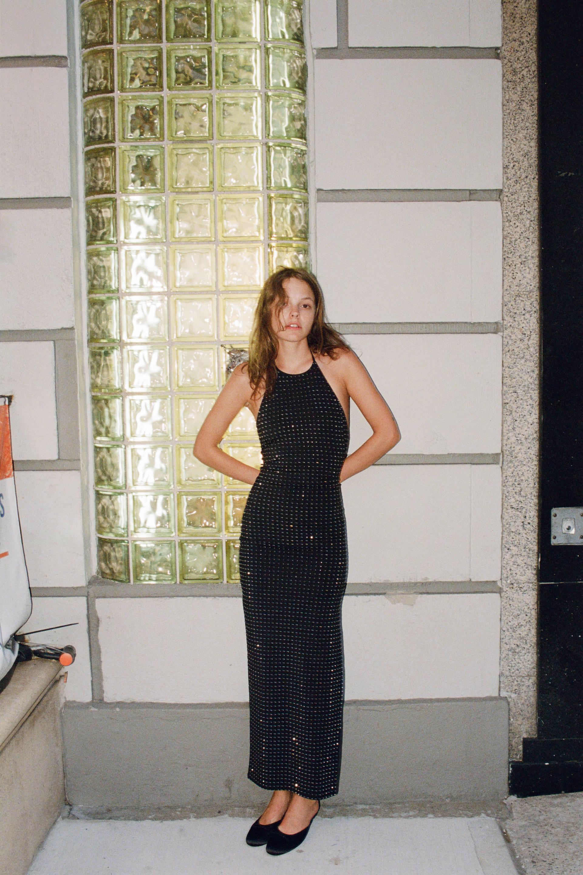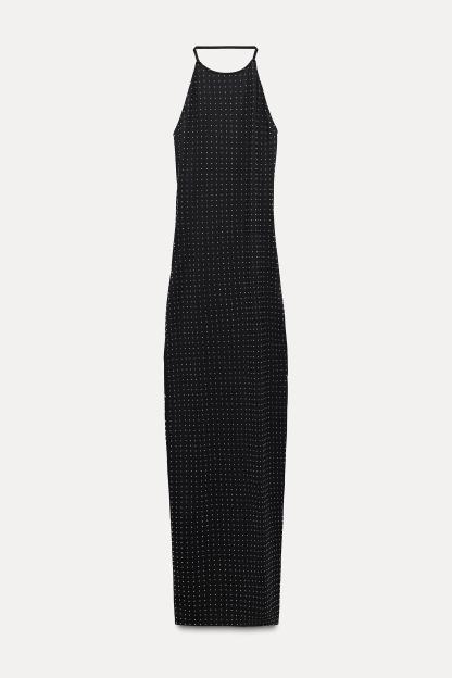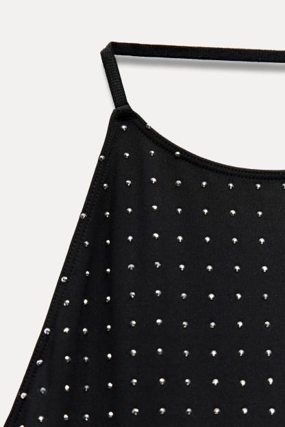 SHIMMER POLYAMIDE HALTER DRESS