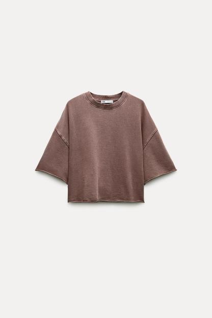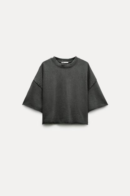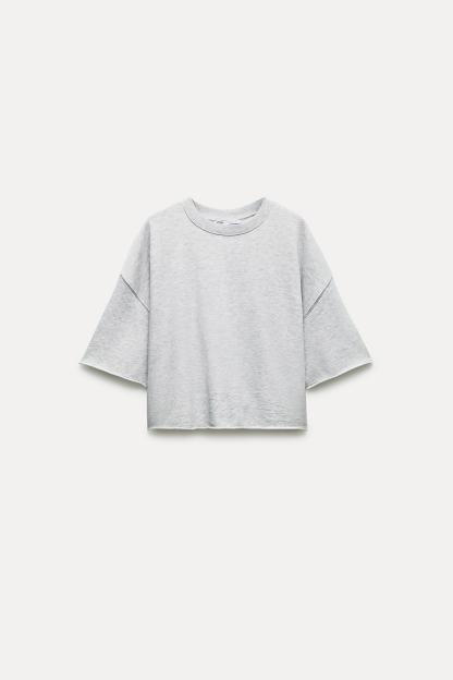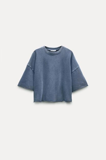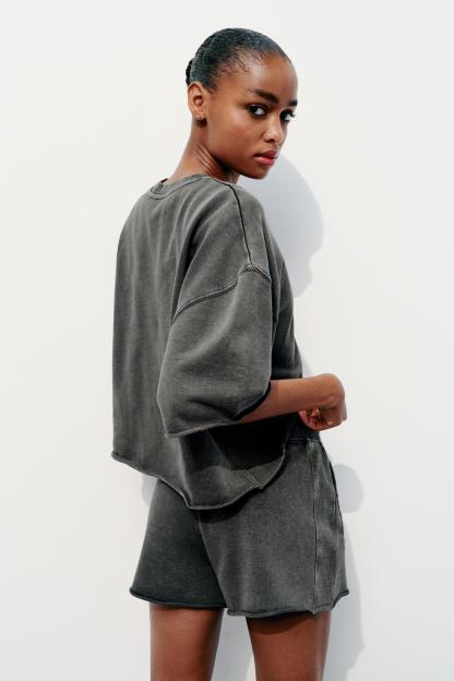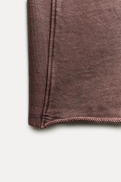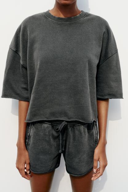 SHORT SLEEVE RIB PLUSH SWEATSHIRT