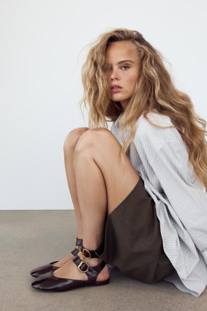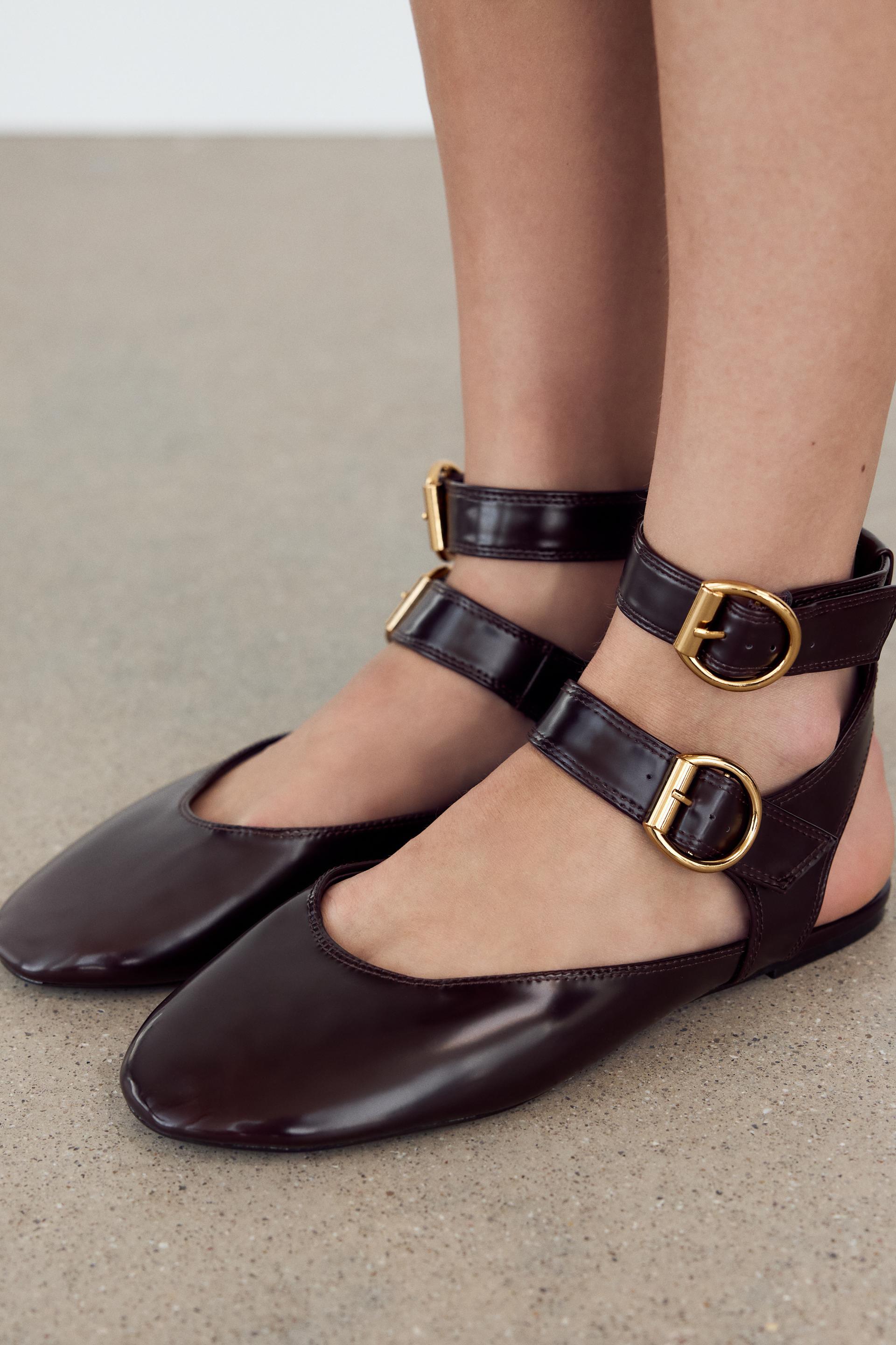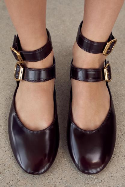 SLINGBACK DOUBLE BUCKLE BALLET FLATS