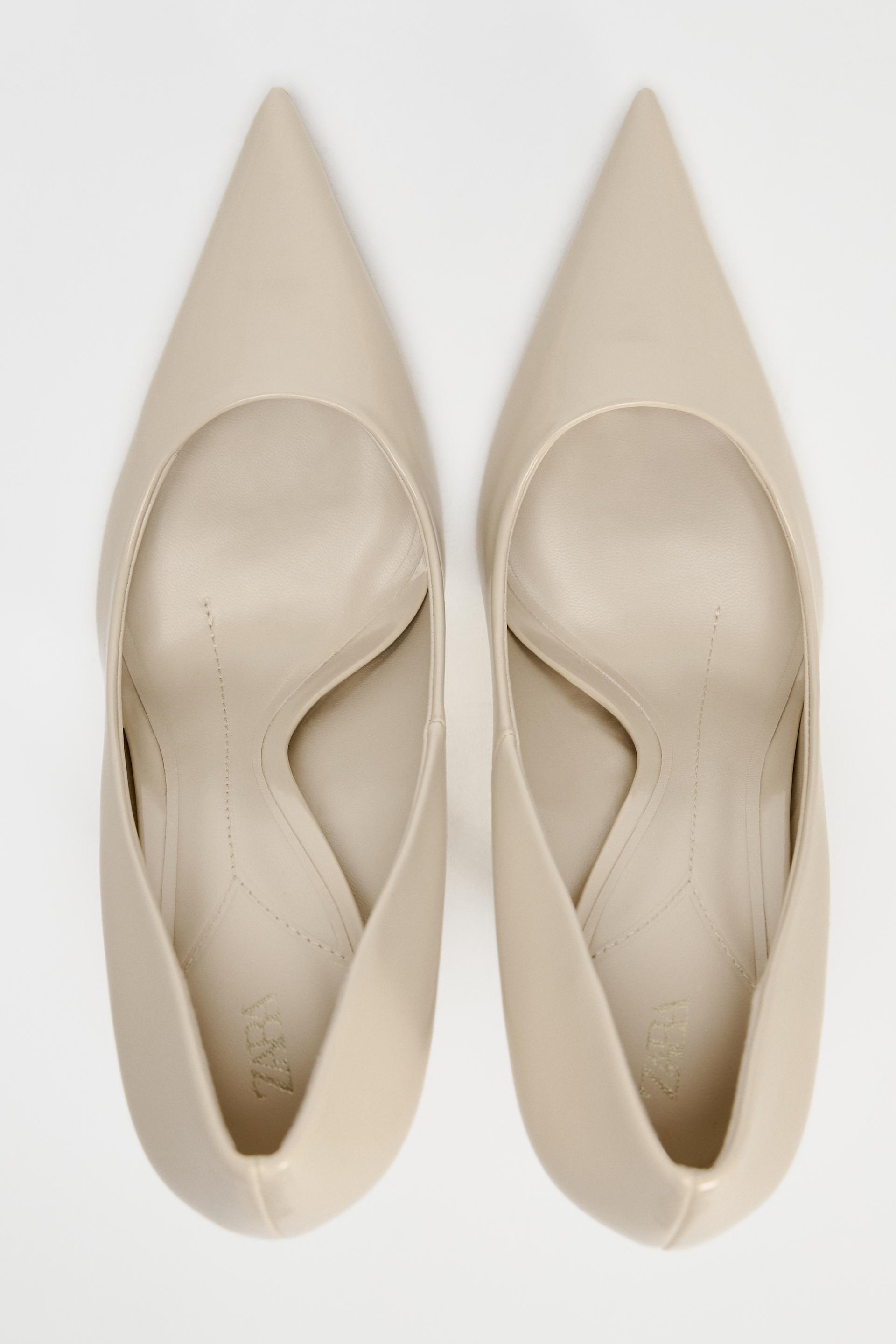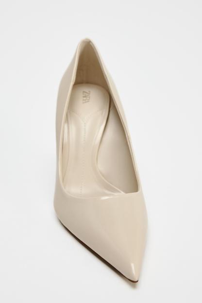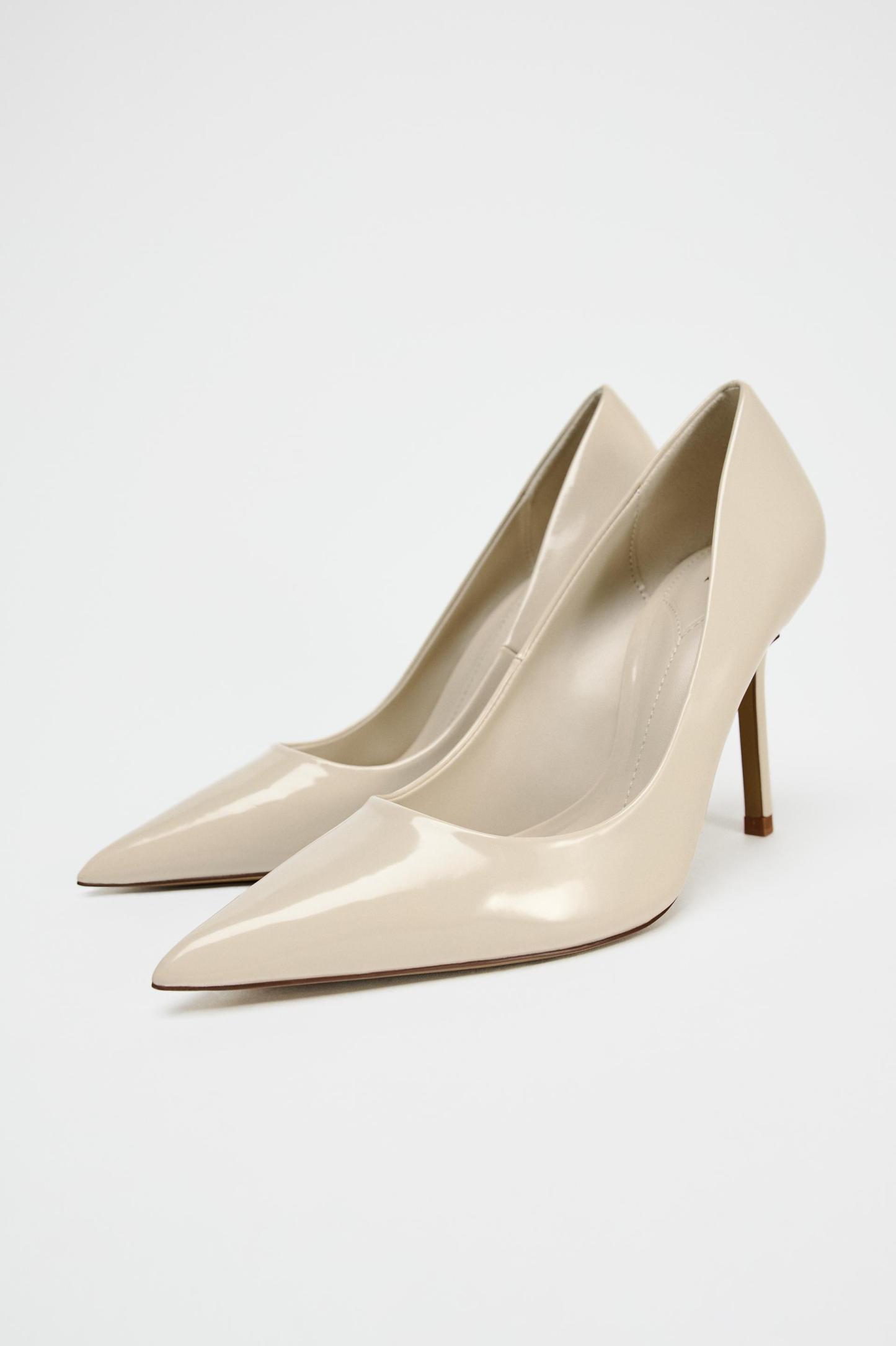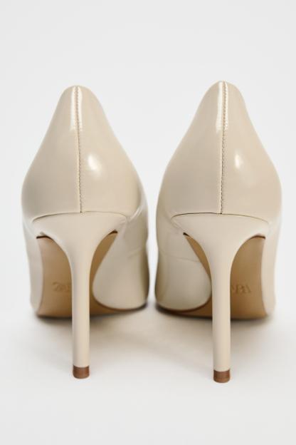 Stiletto heel patent effect high heels. Pointed toes and round topline. <br/><br/>Heel height: 3.7 inches (9.5 cm)