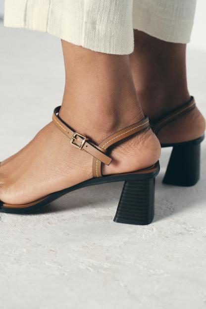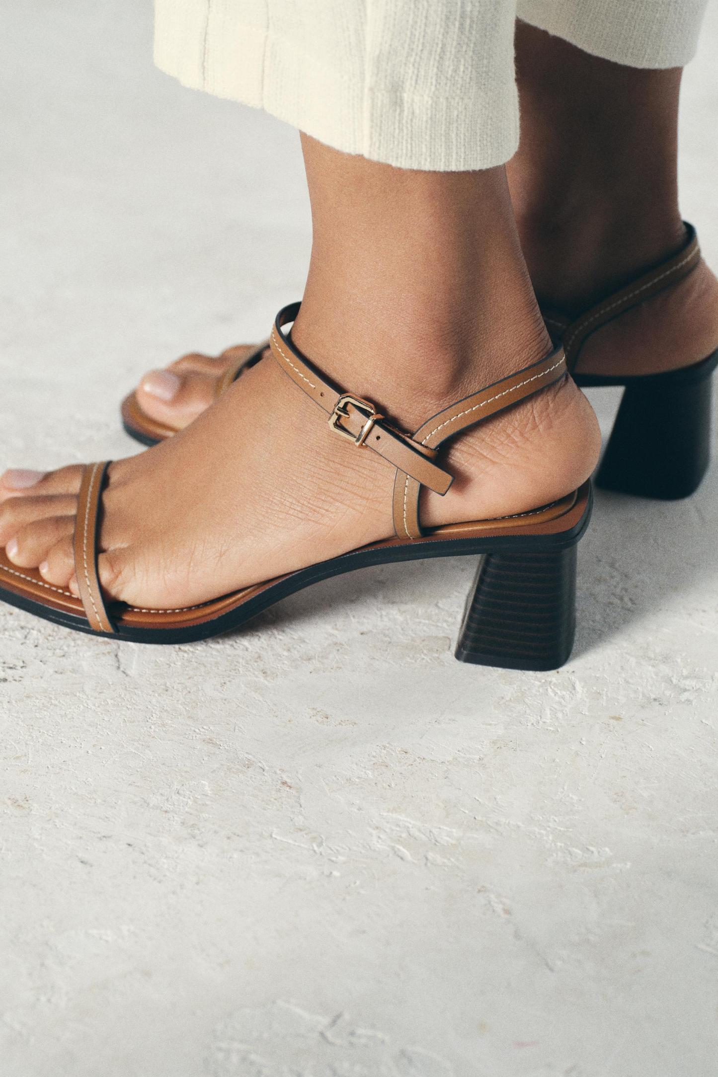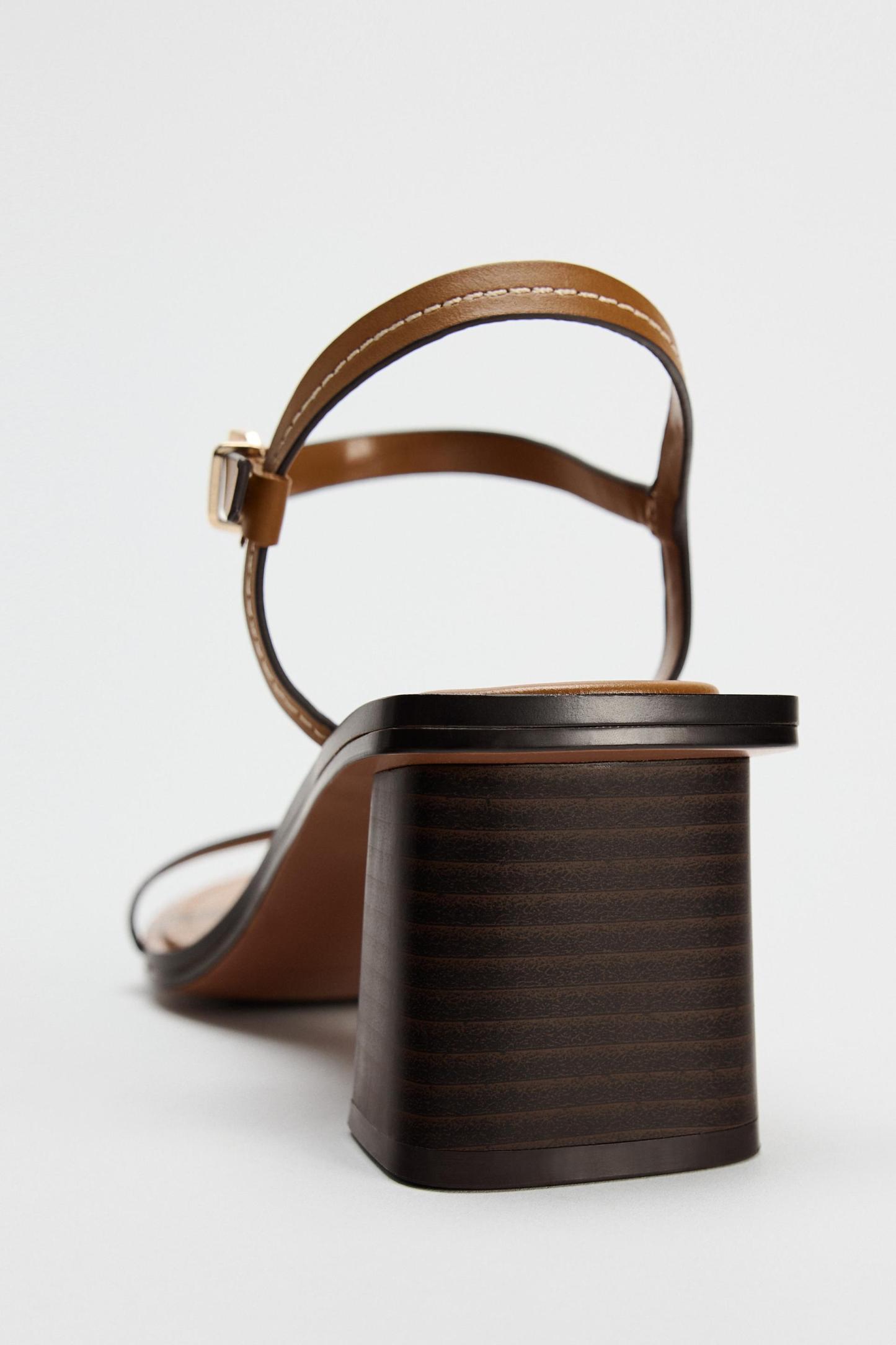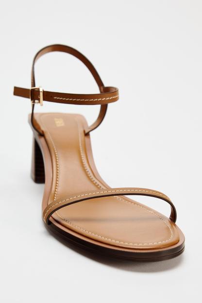 STITCHED HEELED LEATHER SANDALS