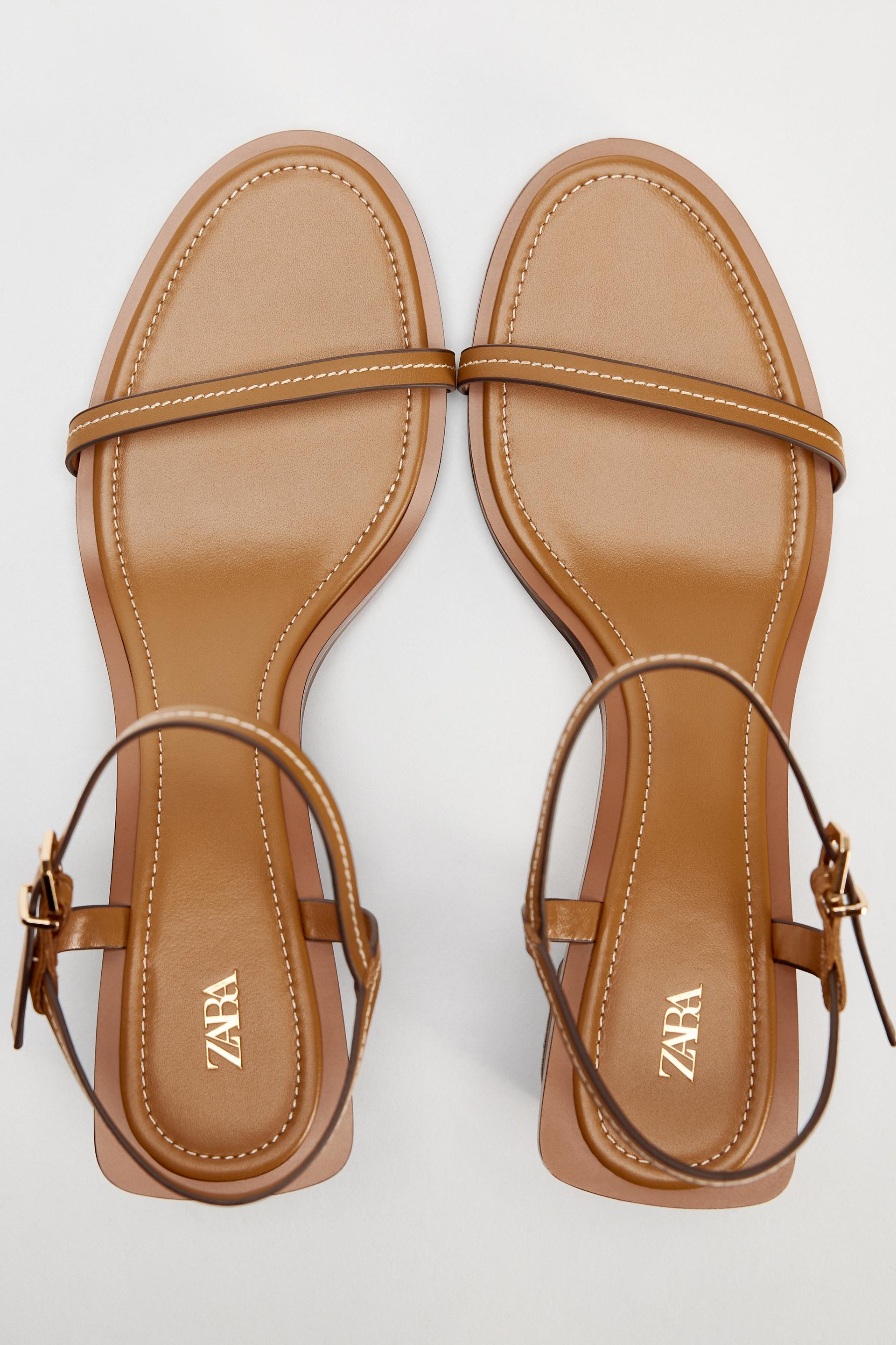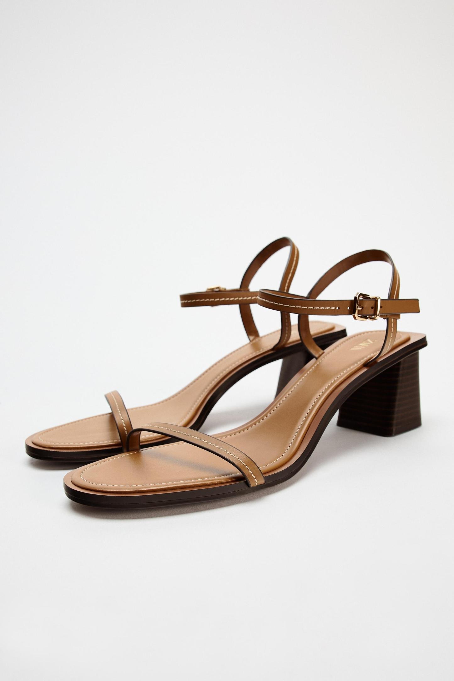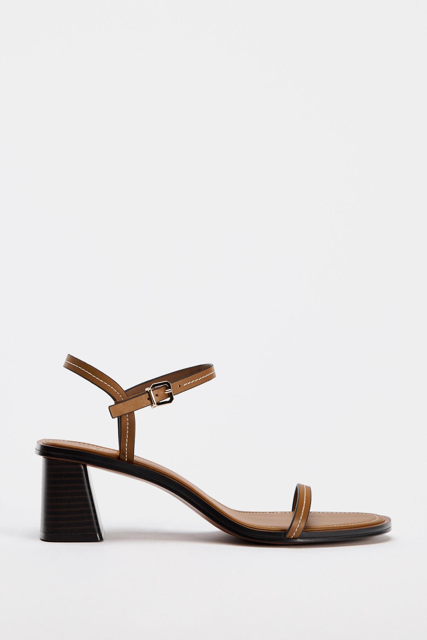 STITCHED HEELED LEATHER SANDALS
