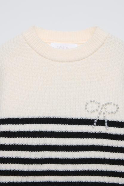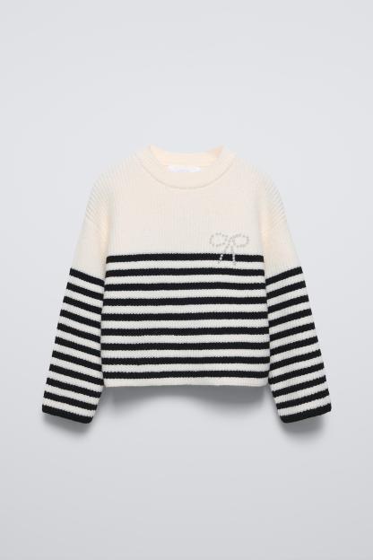STRIPED KNIT SWEATER WITH BOW