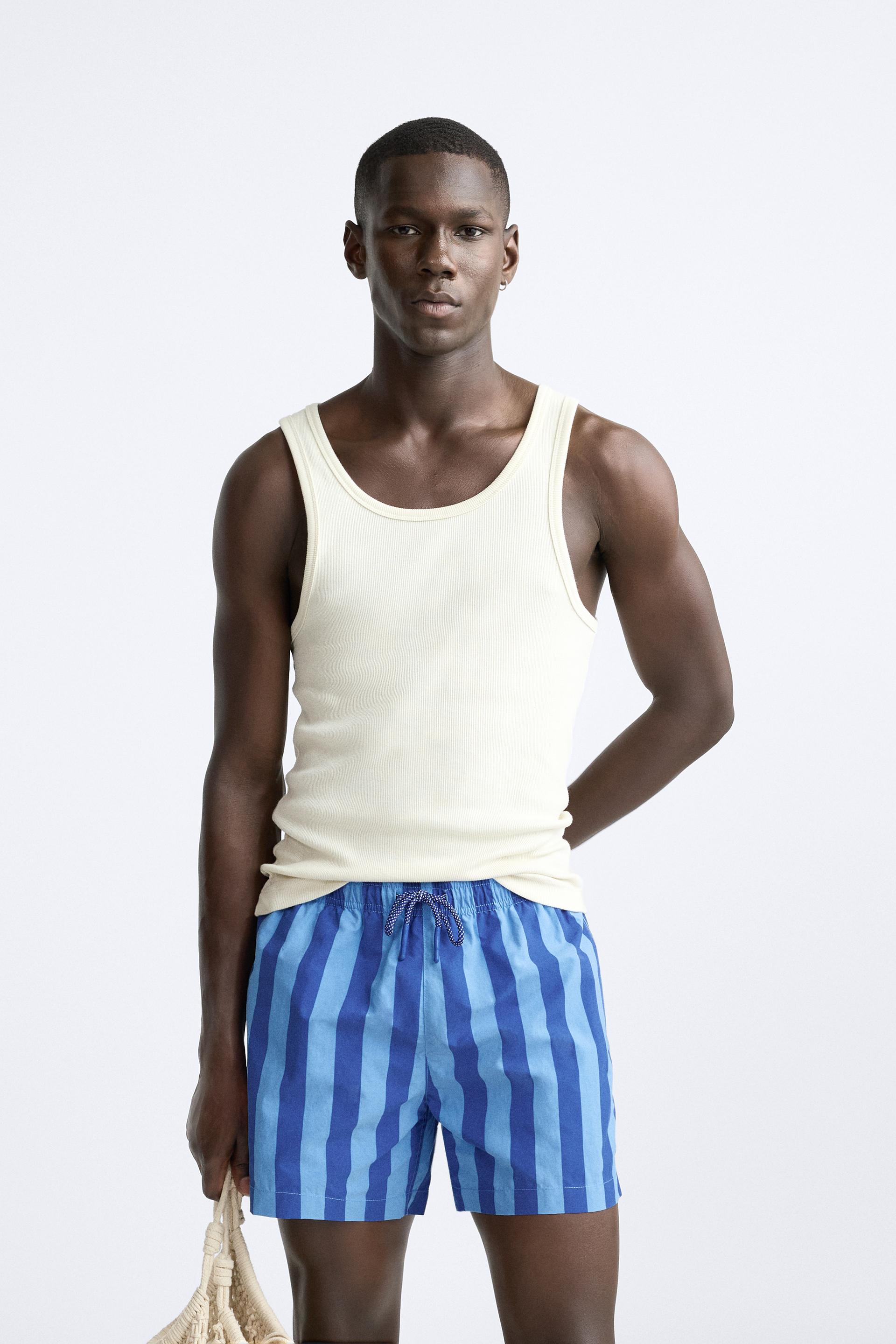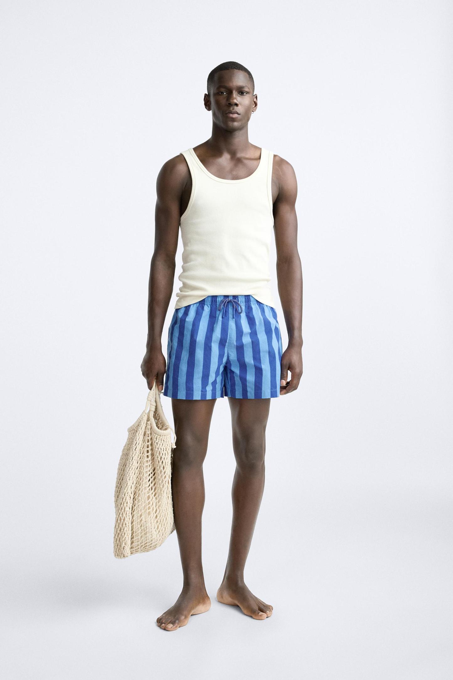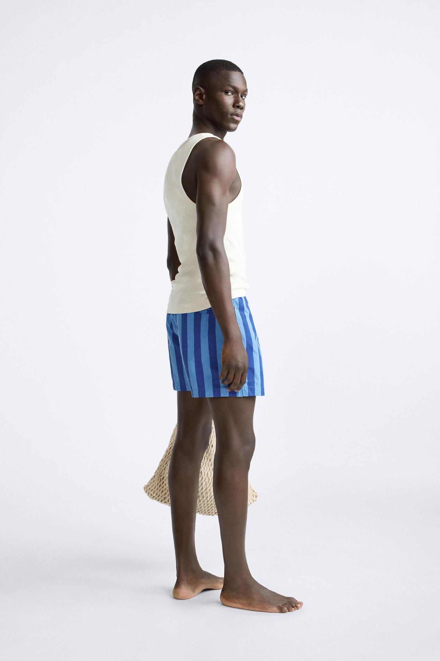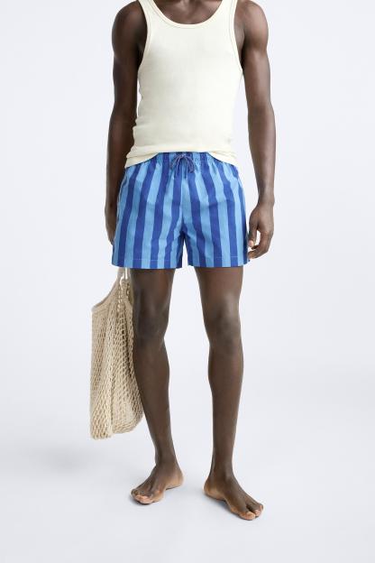 STRIPED REGULAR SWIMMING TRUNKS
