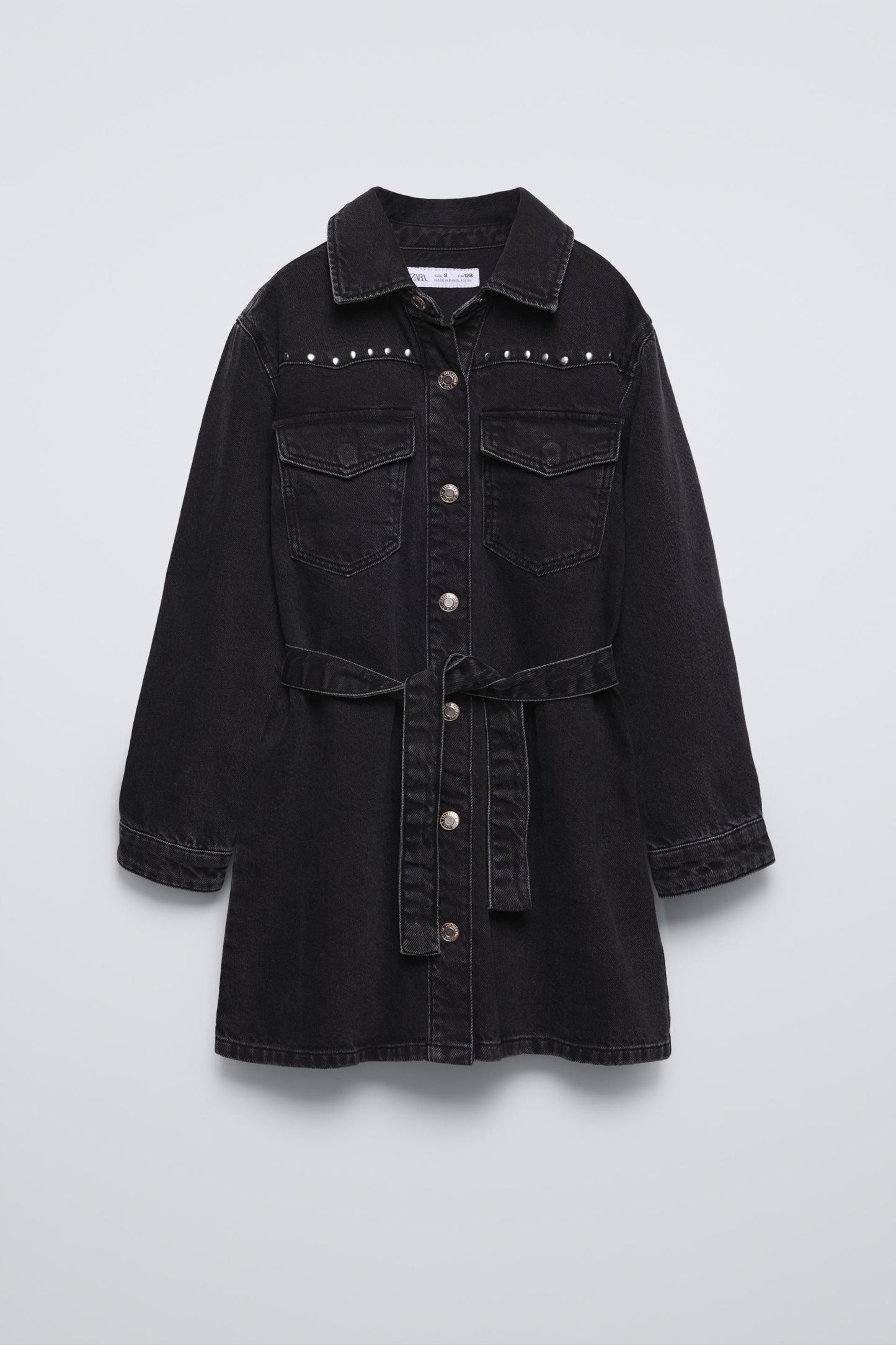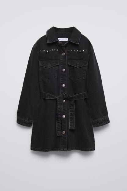 STUDDED DENIM PINAFORE DRESS