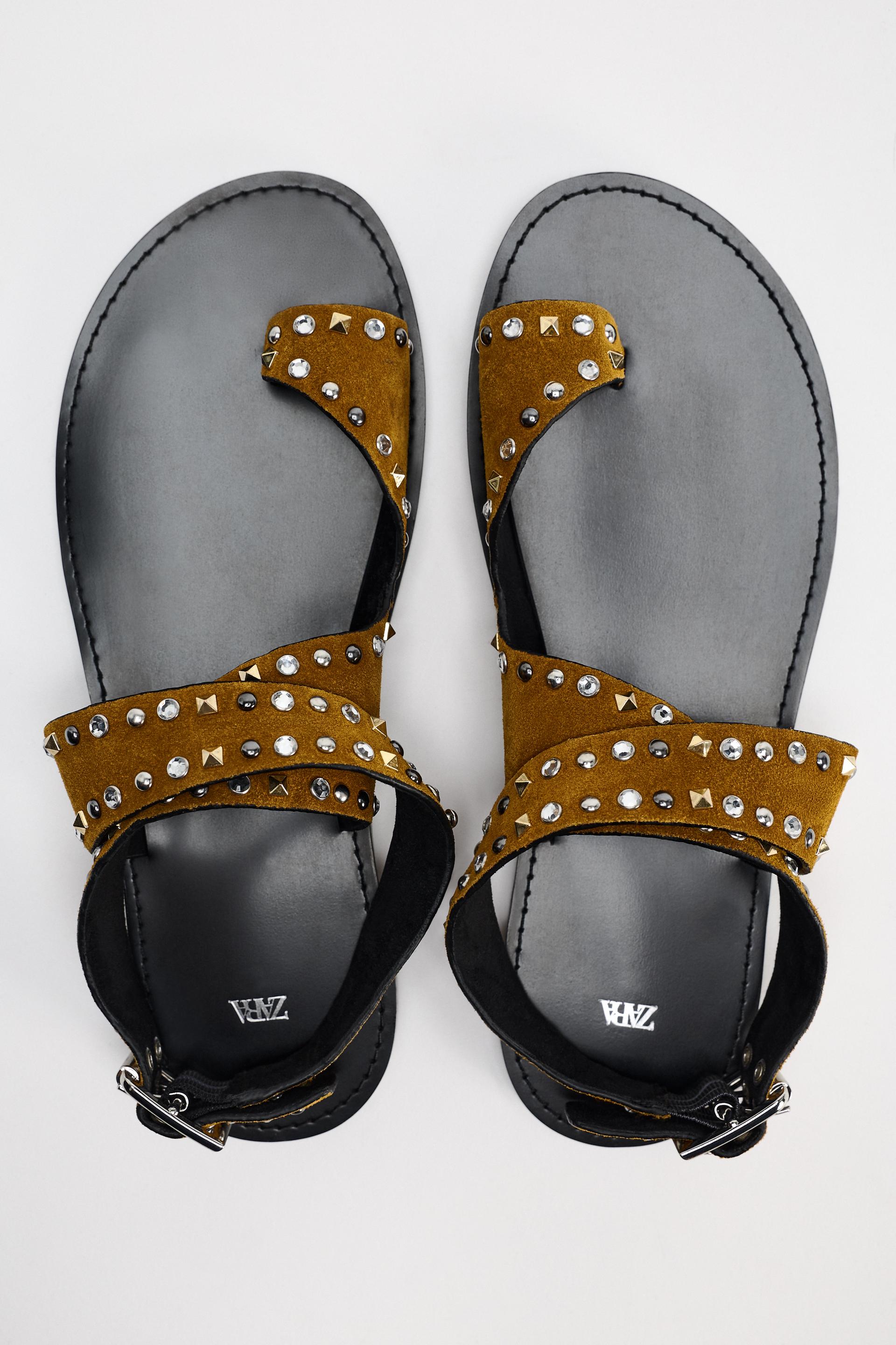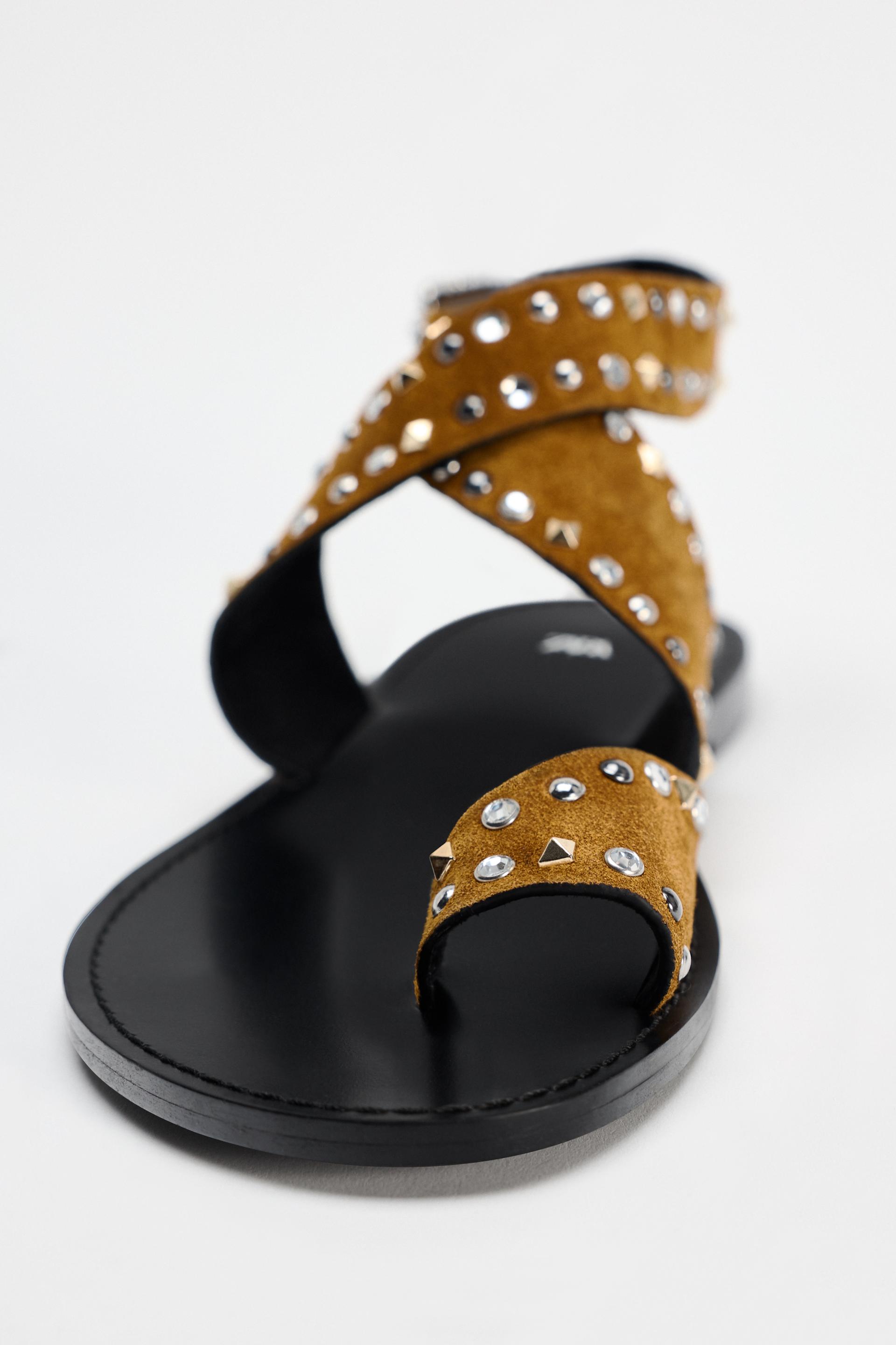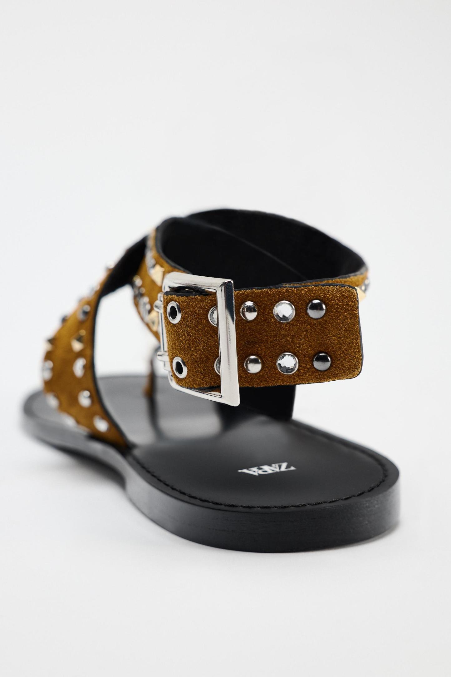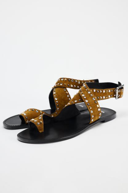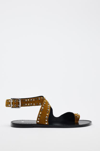 STUDDED FLAT SUEDE SANDALS