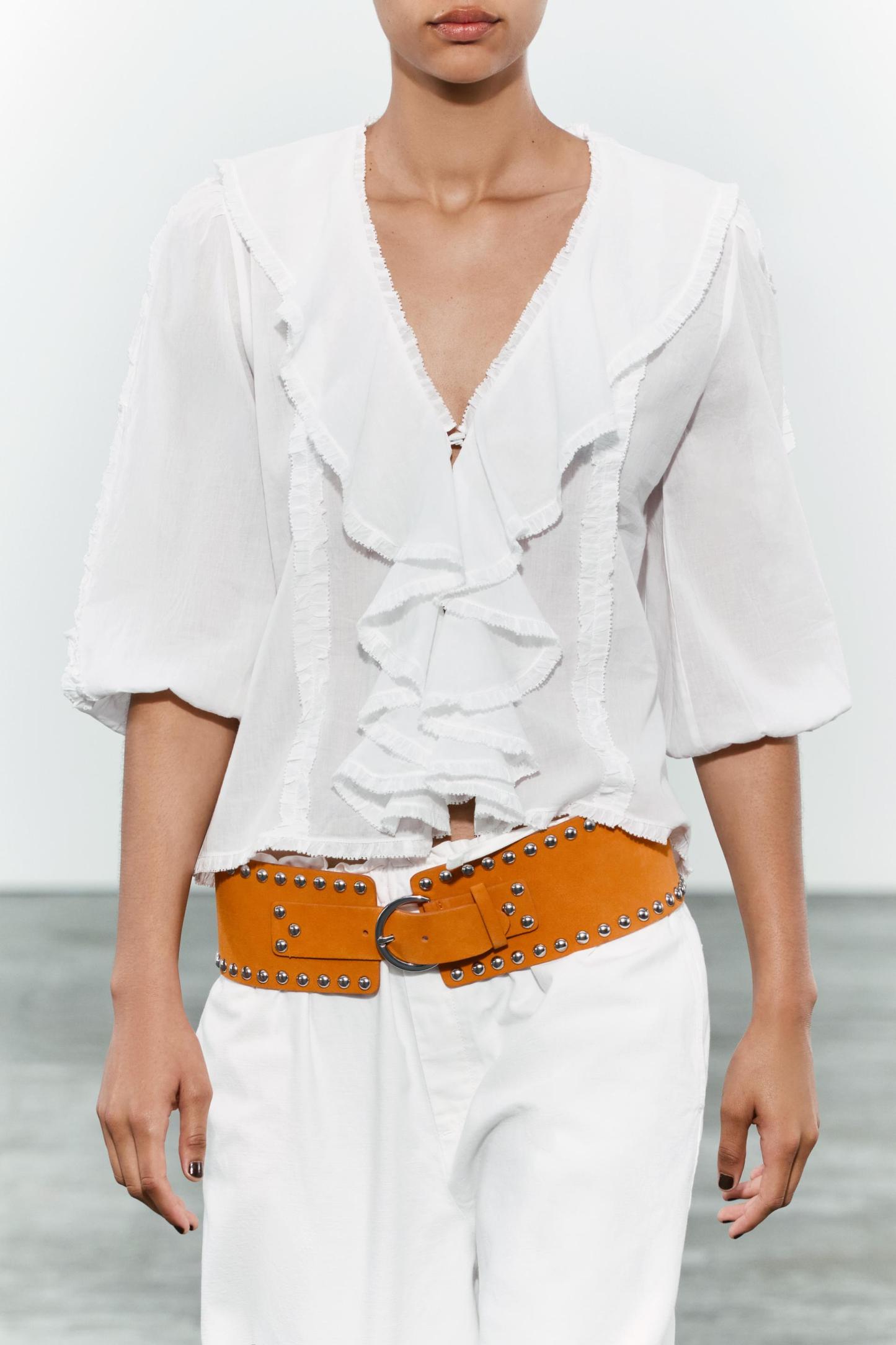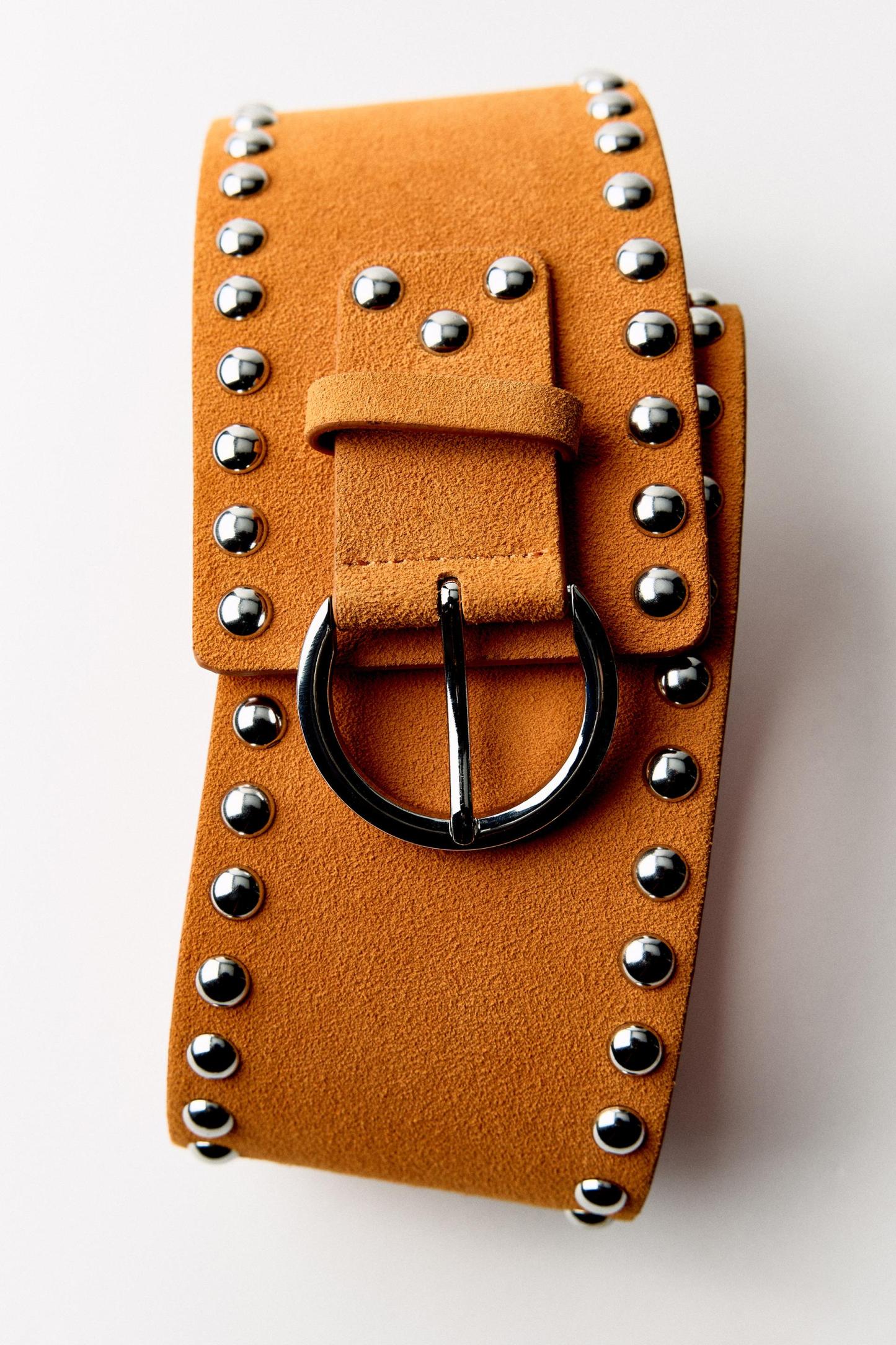 STUDDED LEATHER SASH BELT
