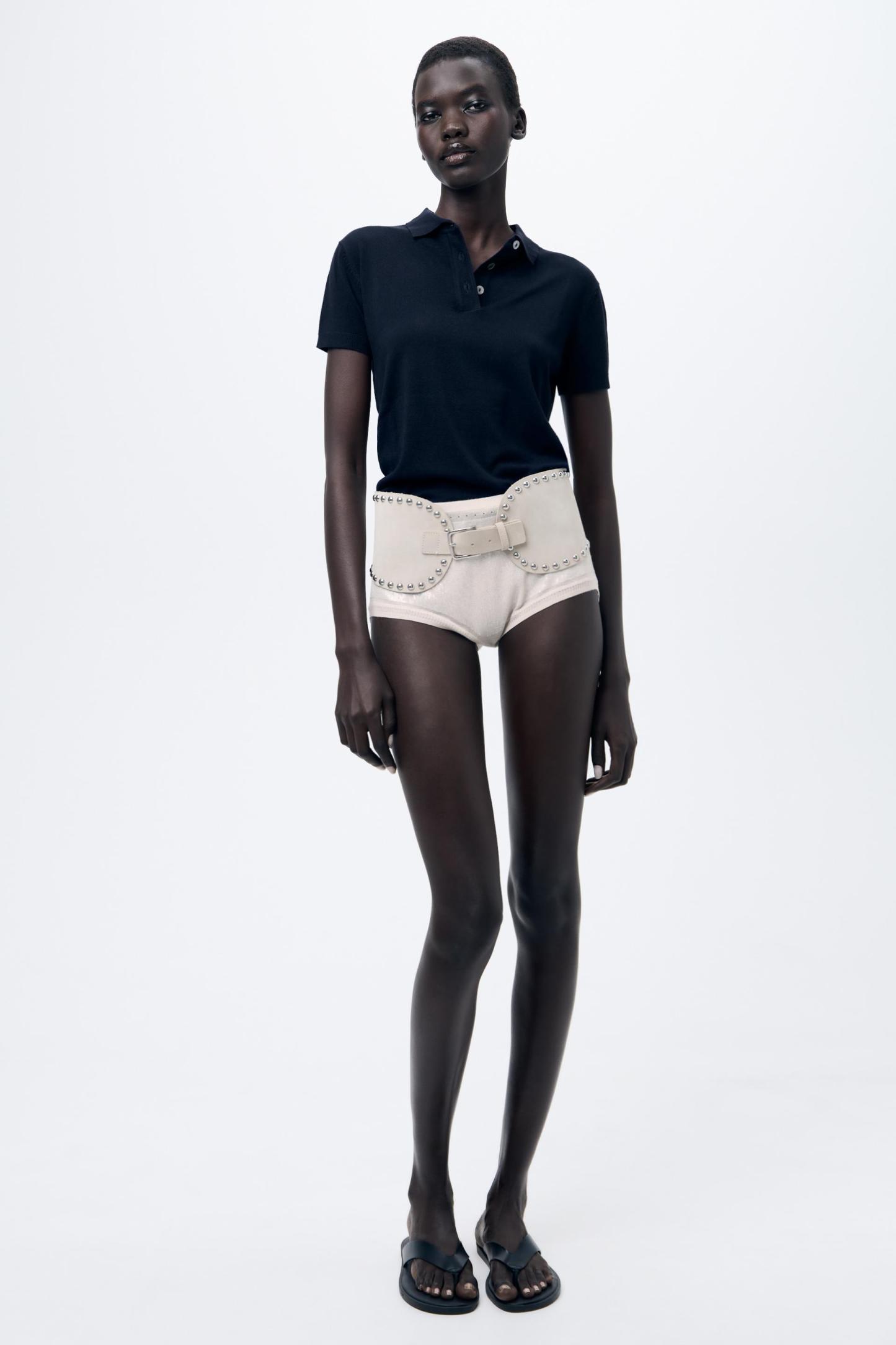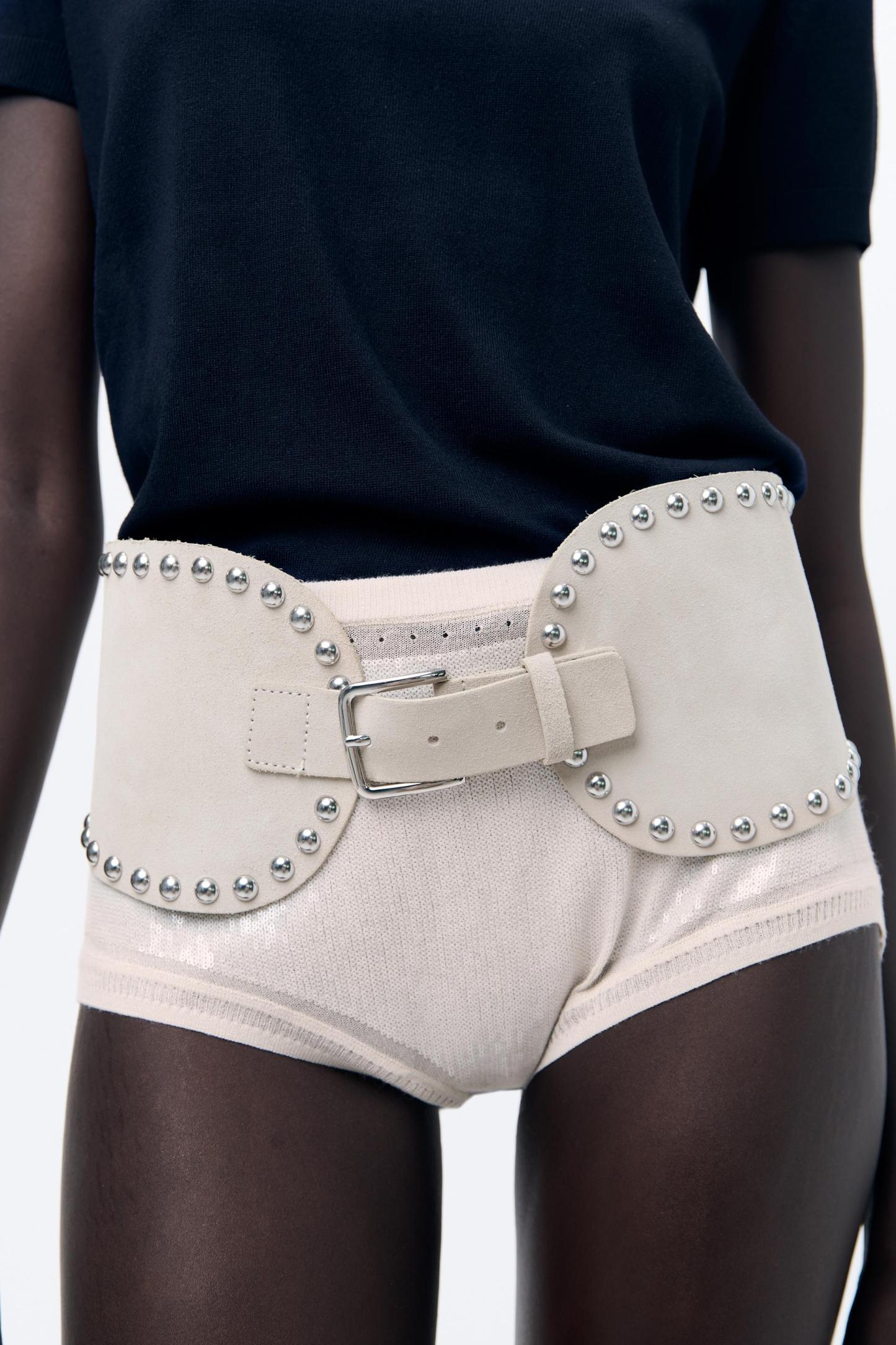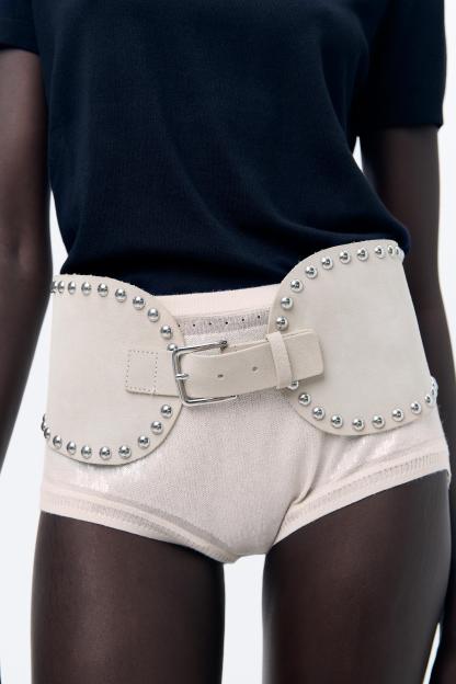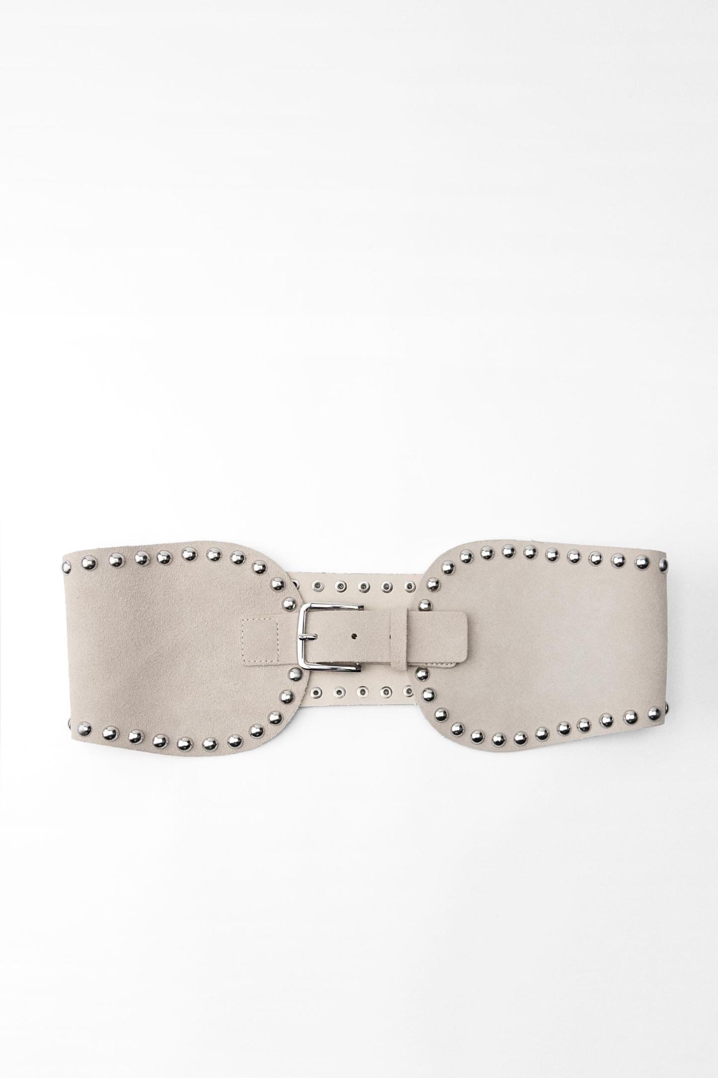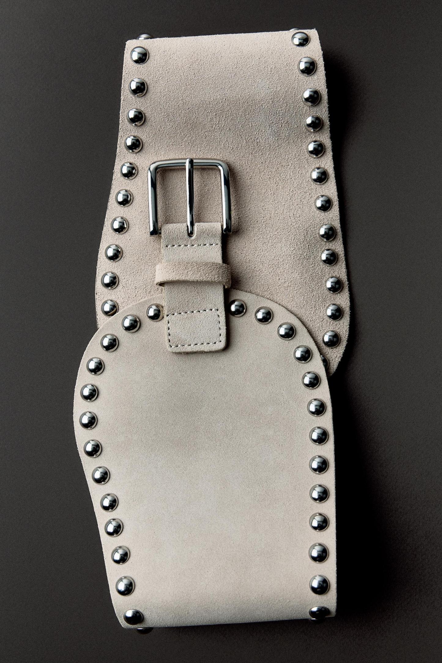 STUDDED LEATHER SASH BELT