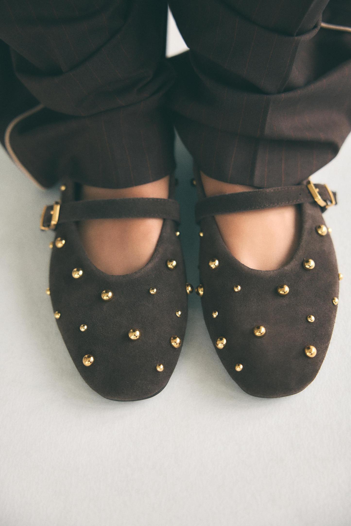 STUDDED SUEDE MARY JANES