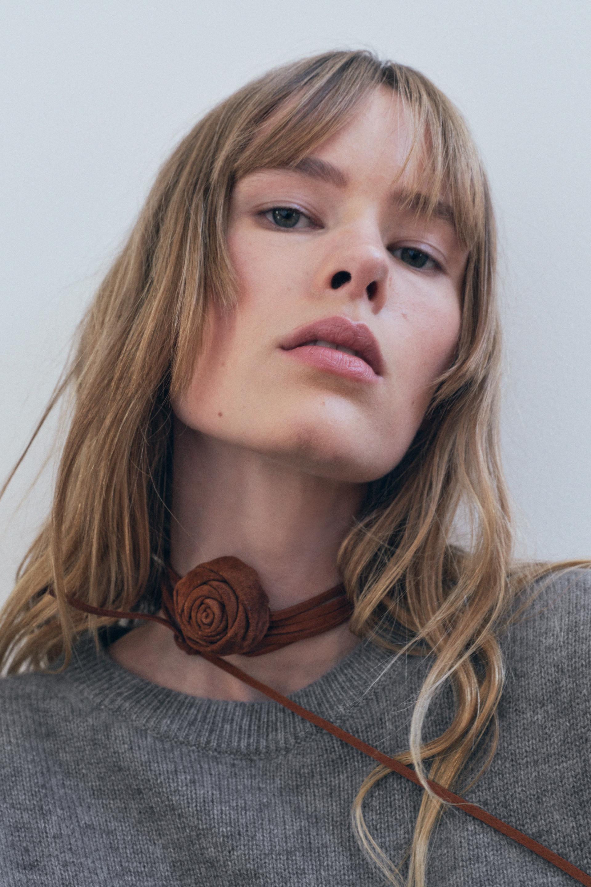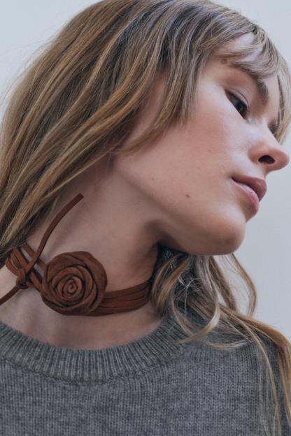 SUEDE LEATHER FLOWER CORD NECKLACE