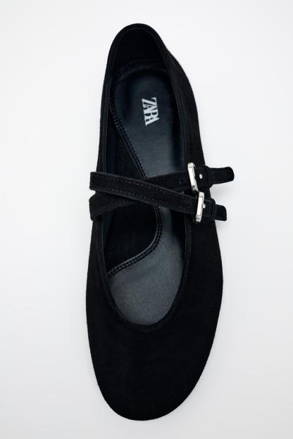 SUEDE STRAP BALLET FLATS