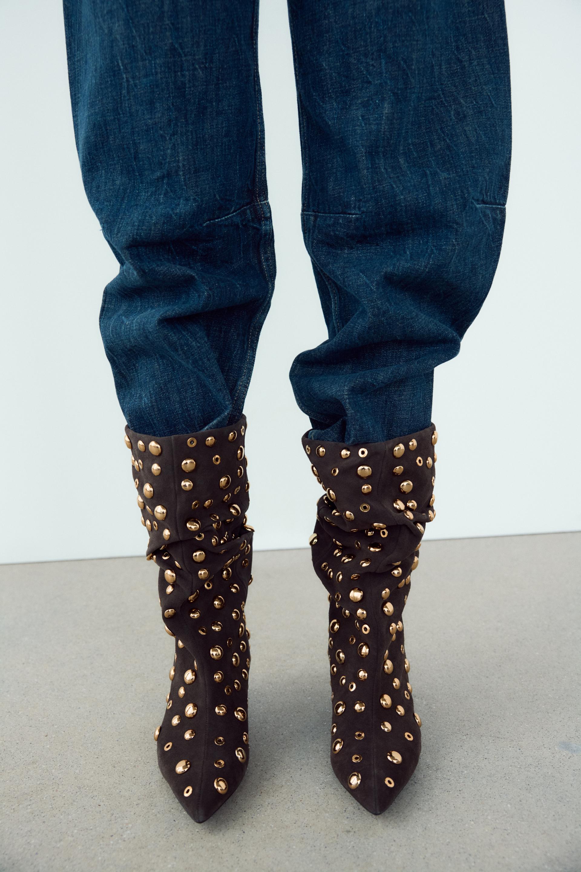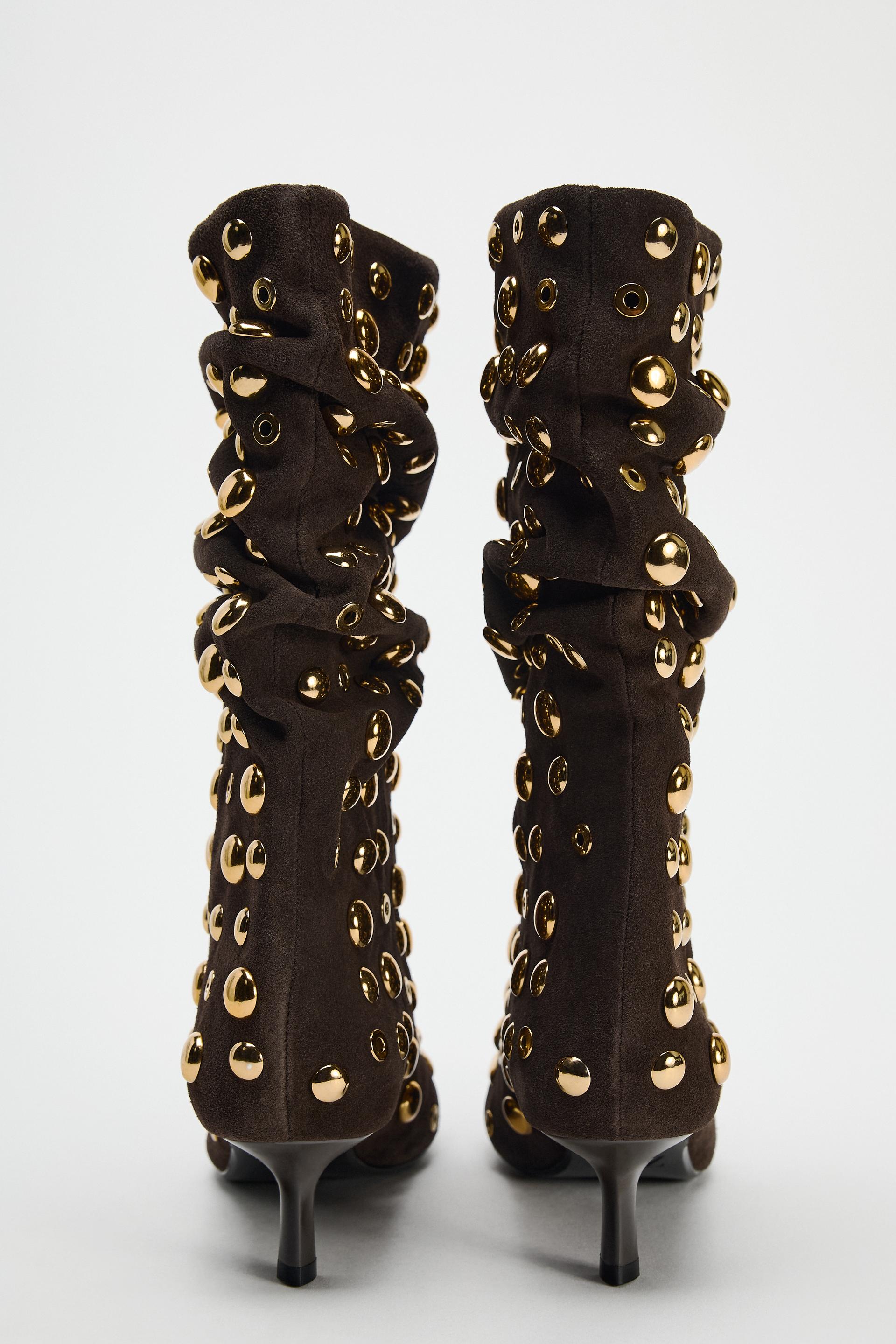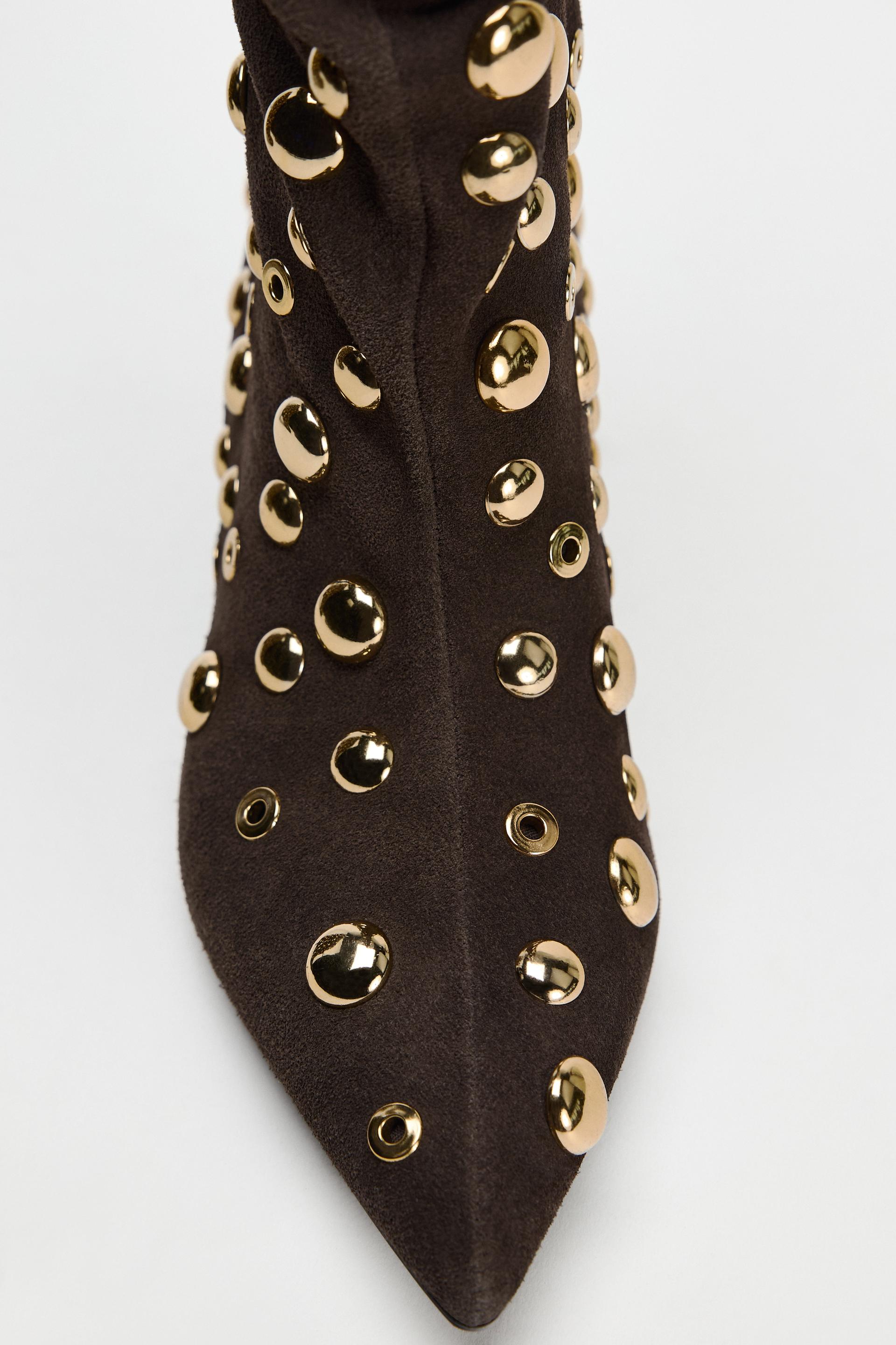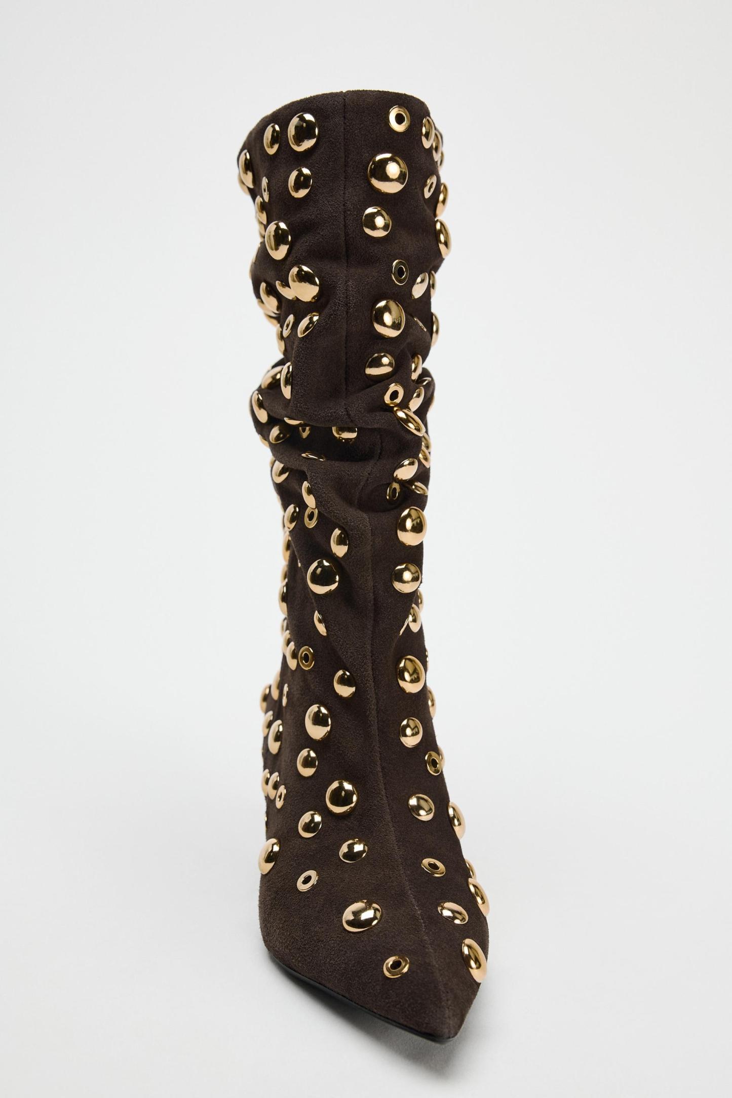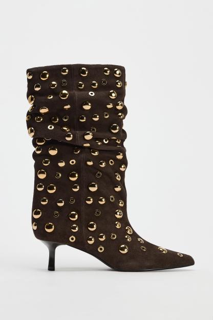 SUEDE STUDDED ANKLE BOOTS
