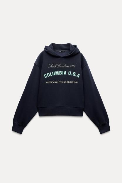 TEXT PRINT HOODED SWEATSHIRT
