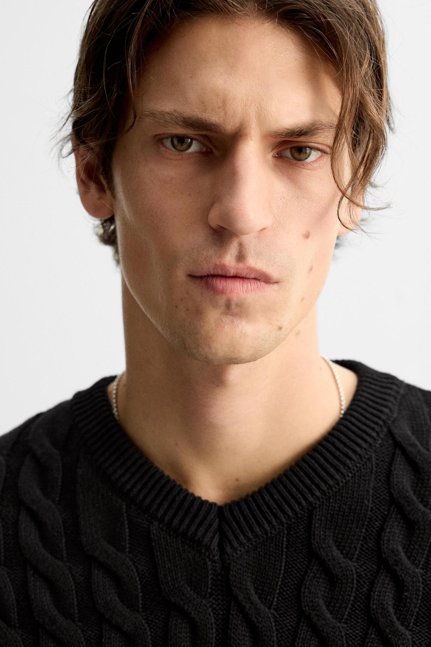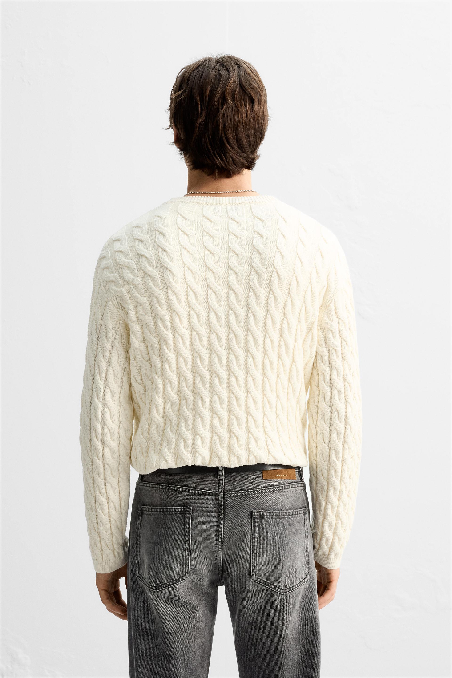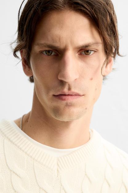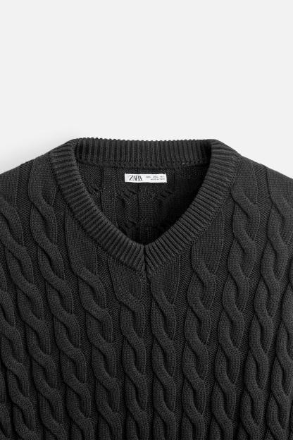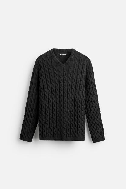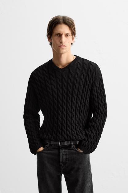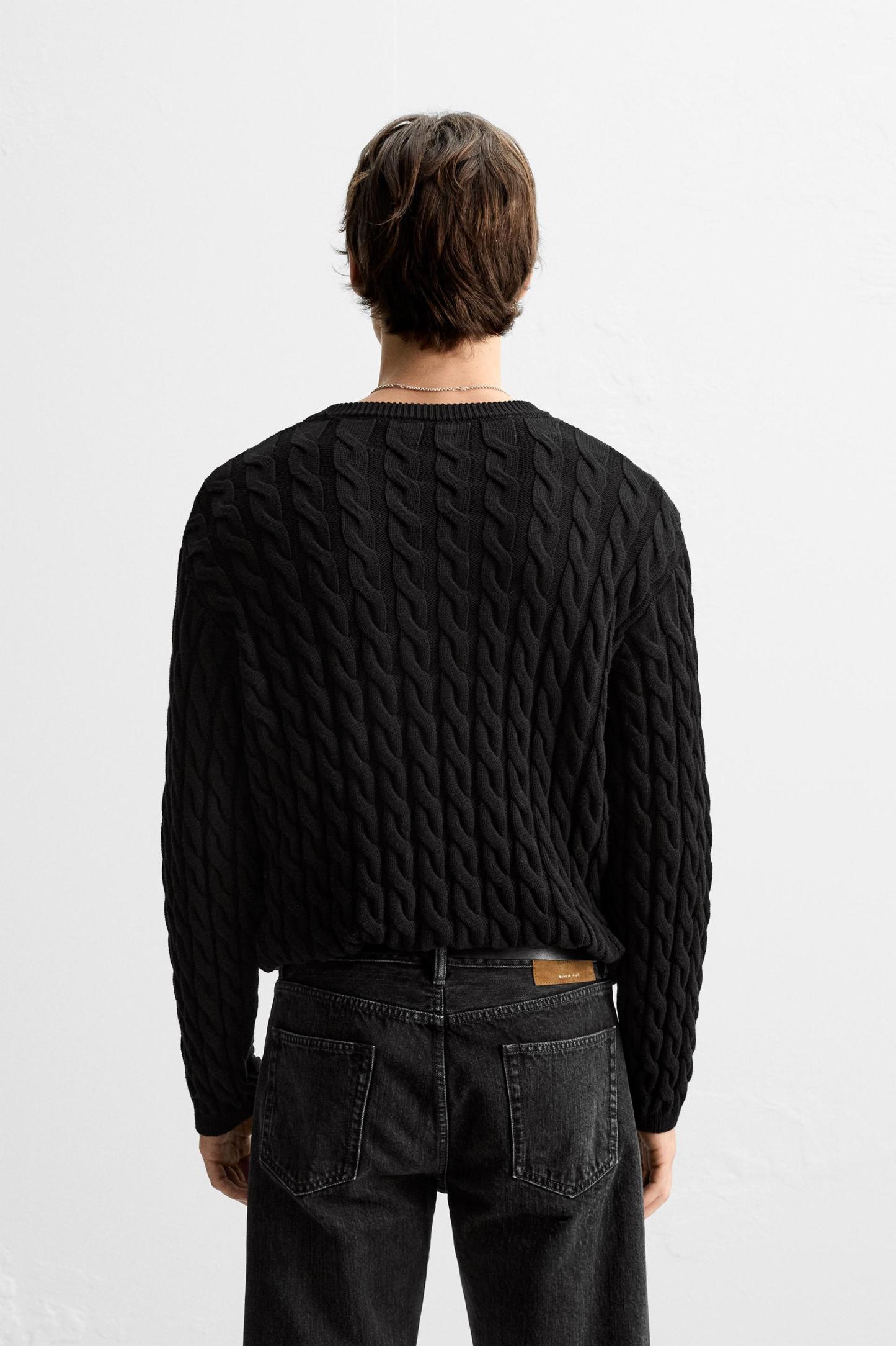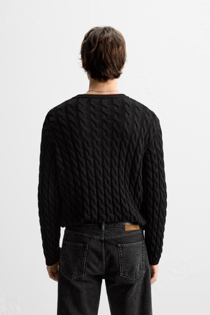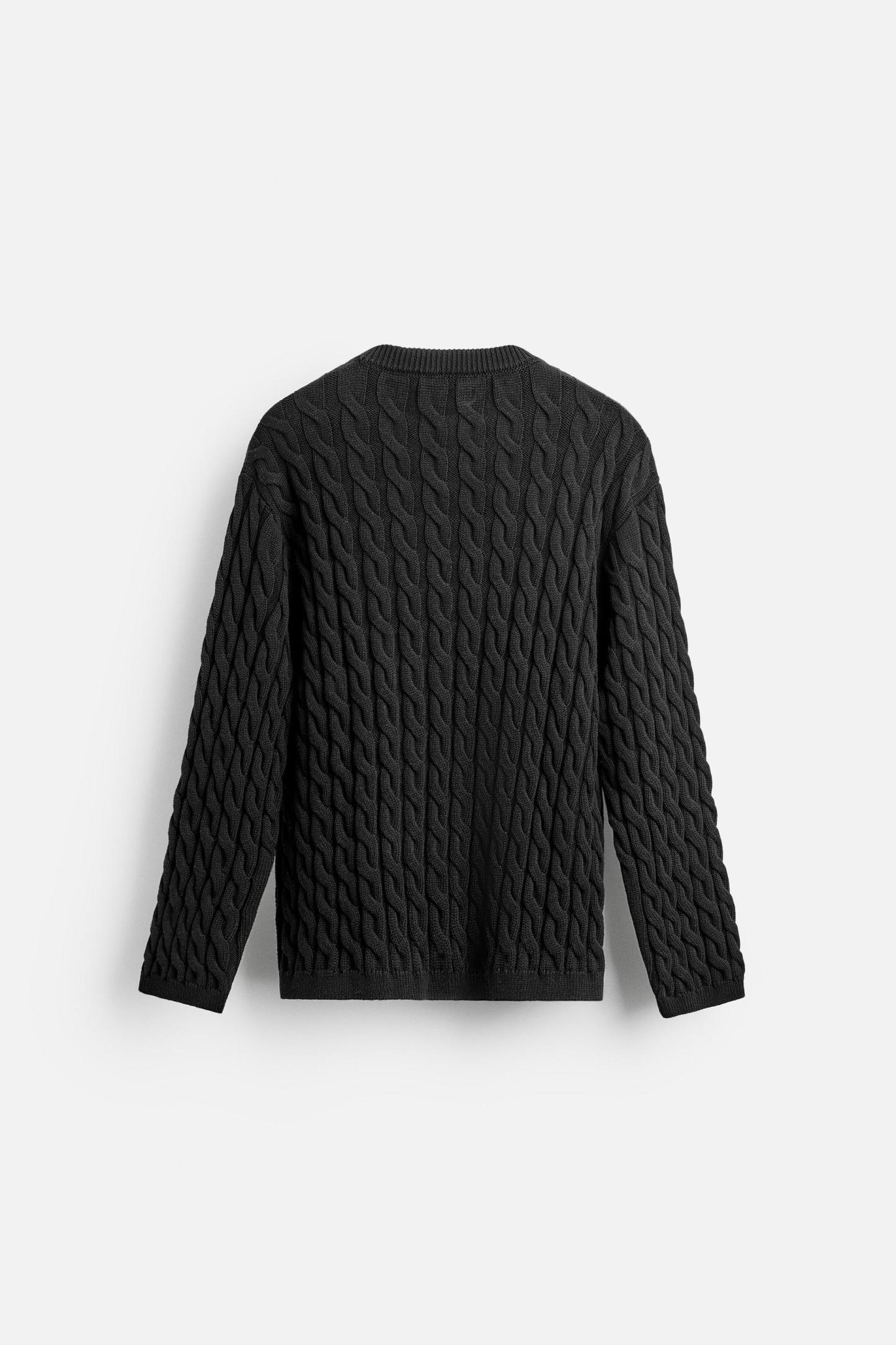 TEXTURED CABLE KNIT SWEATER