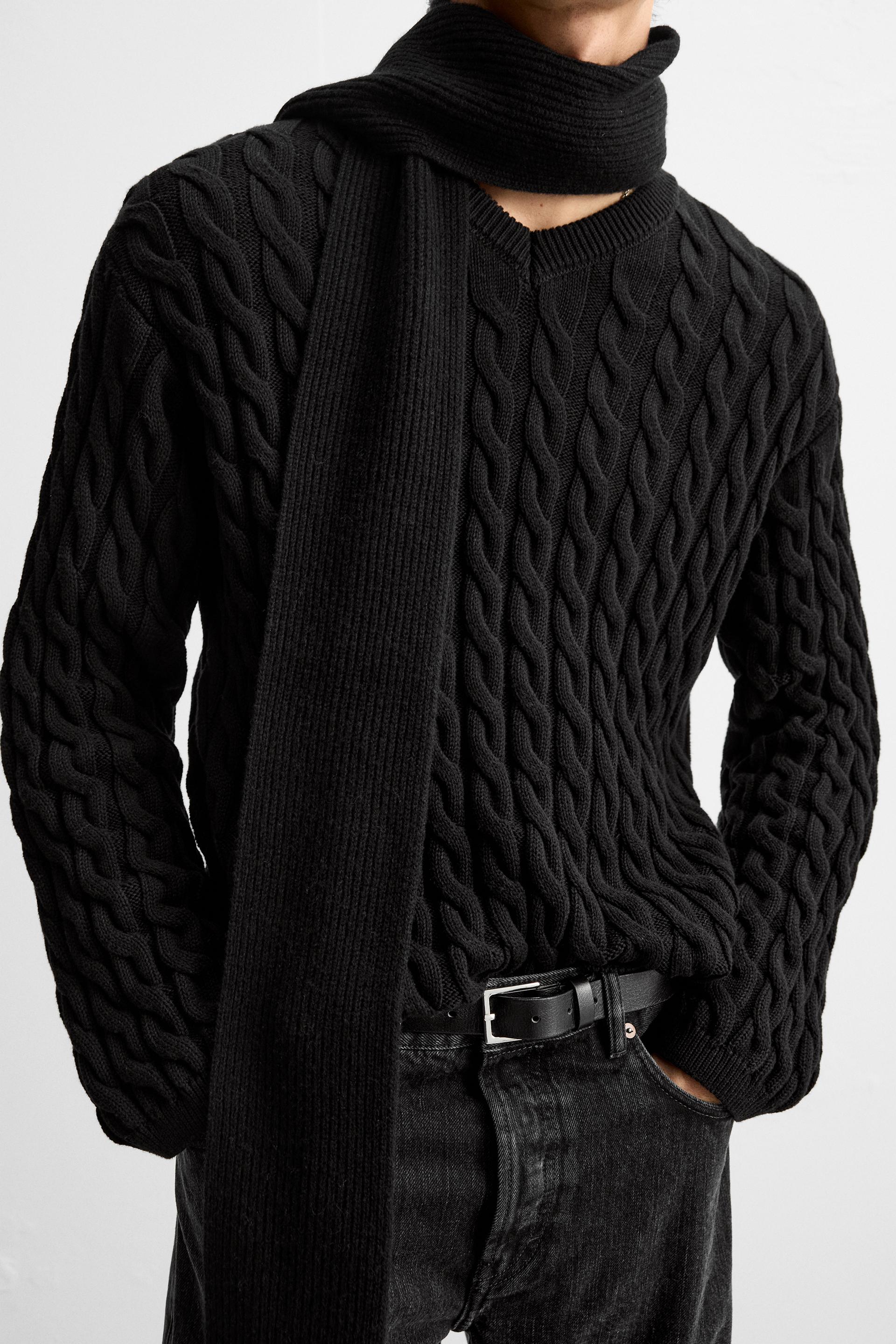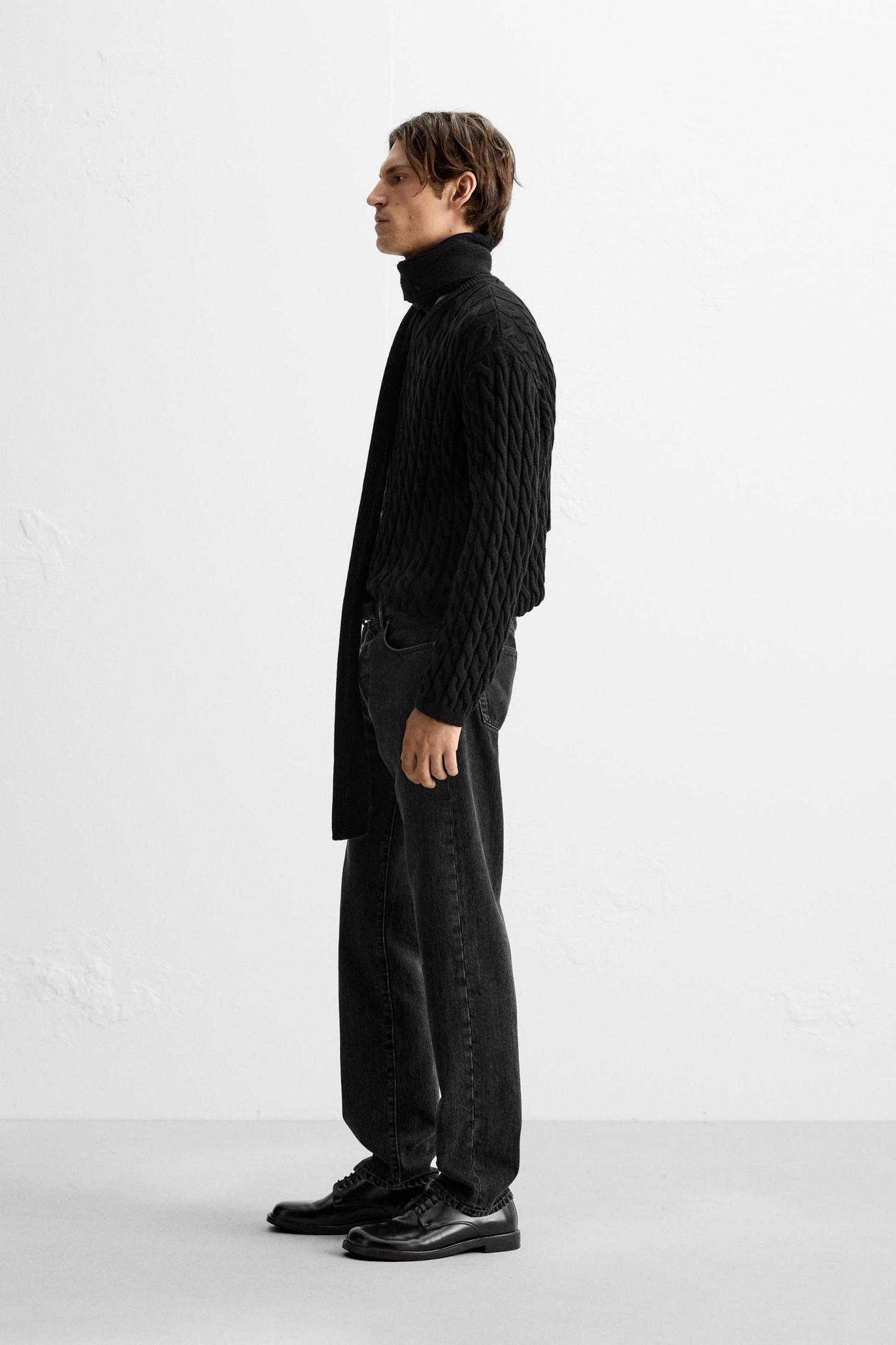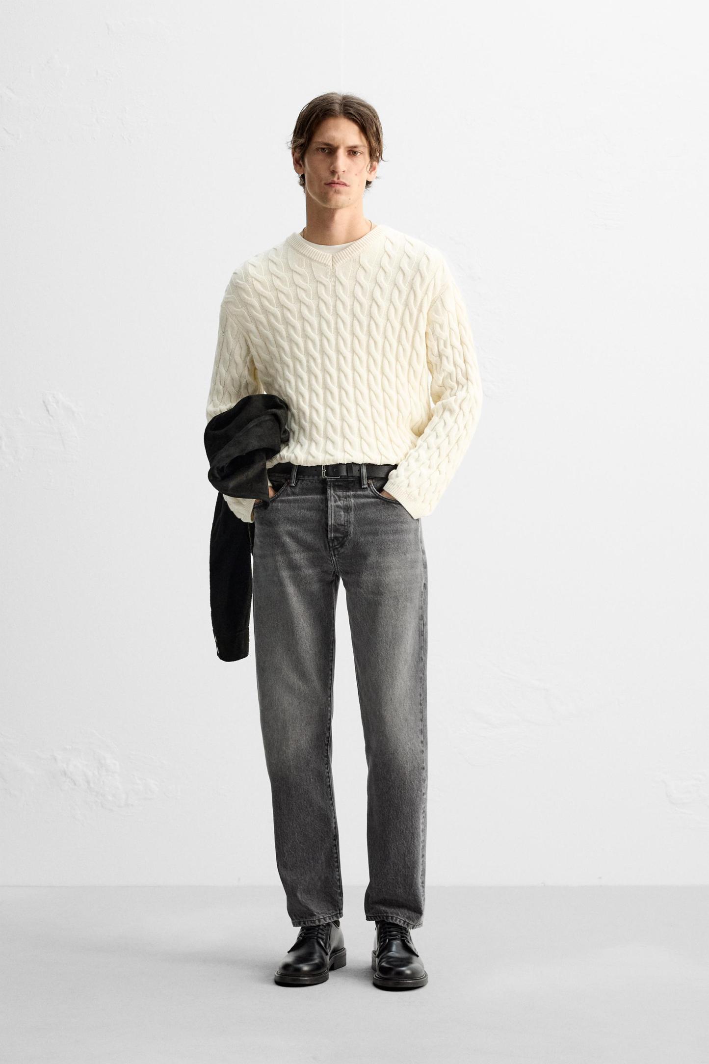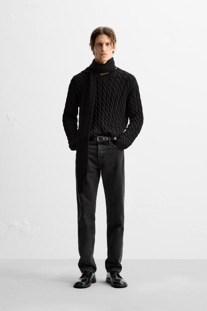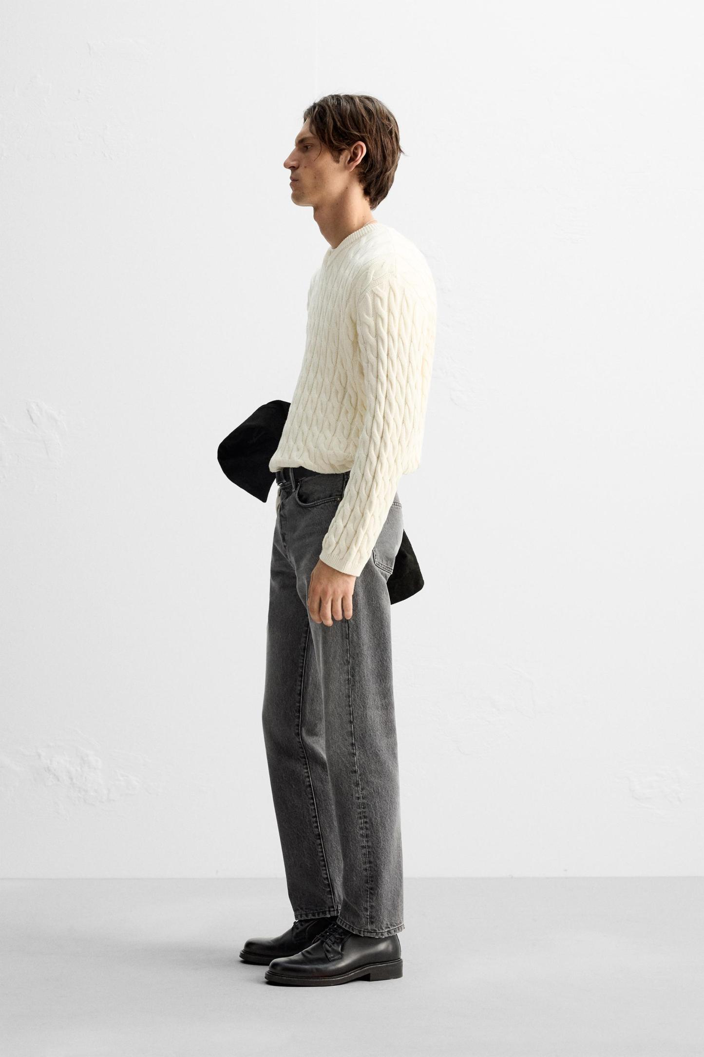 TEXTURED CABLE KNIT SWEATER