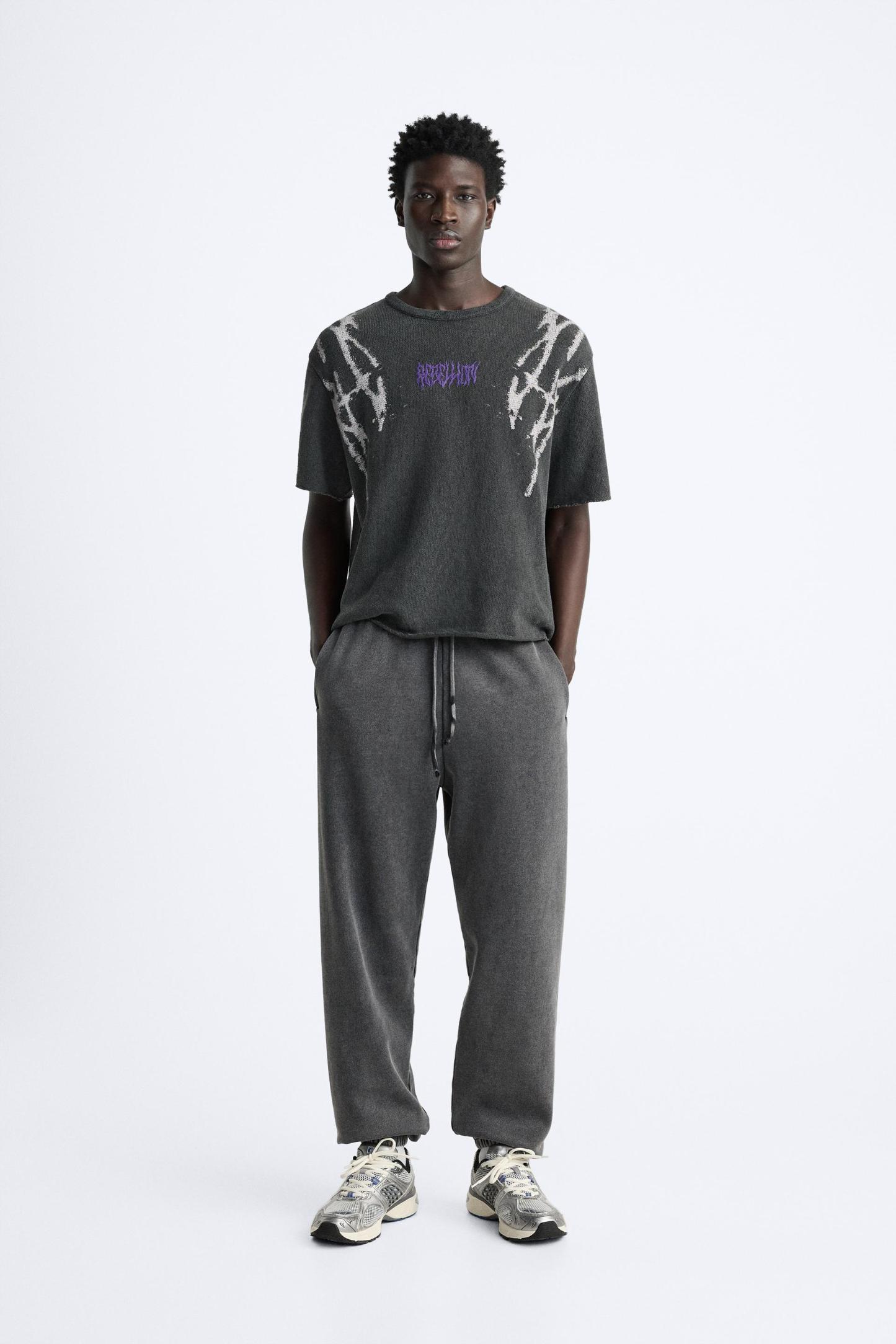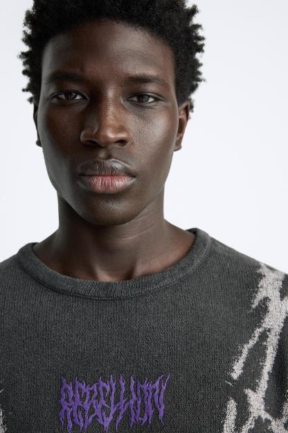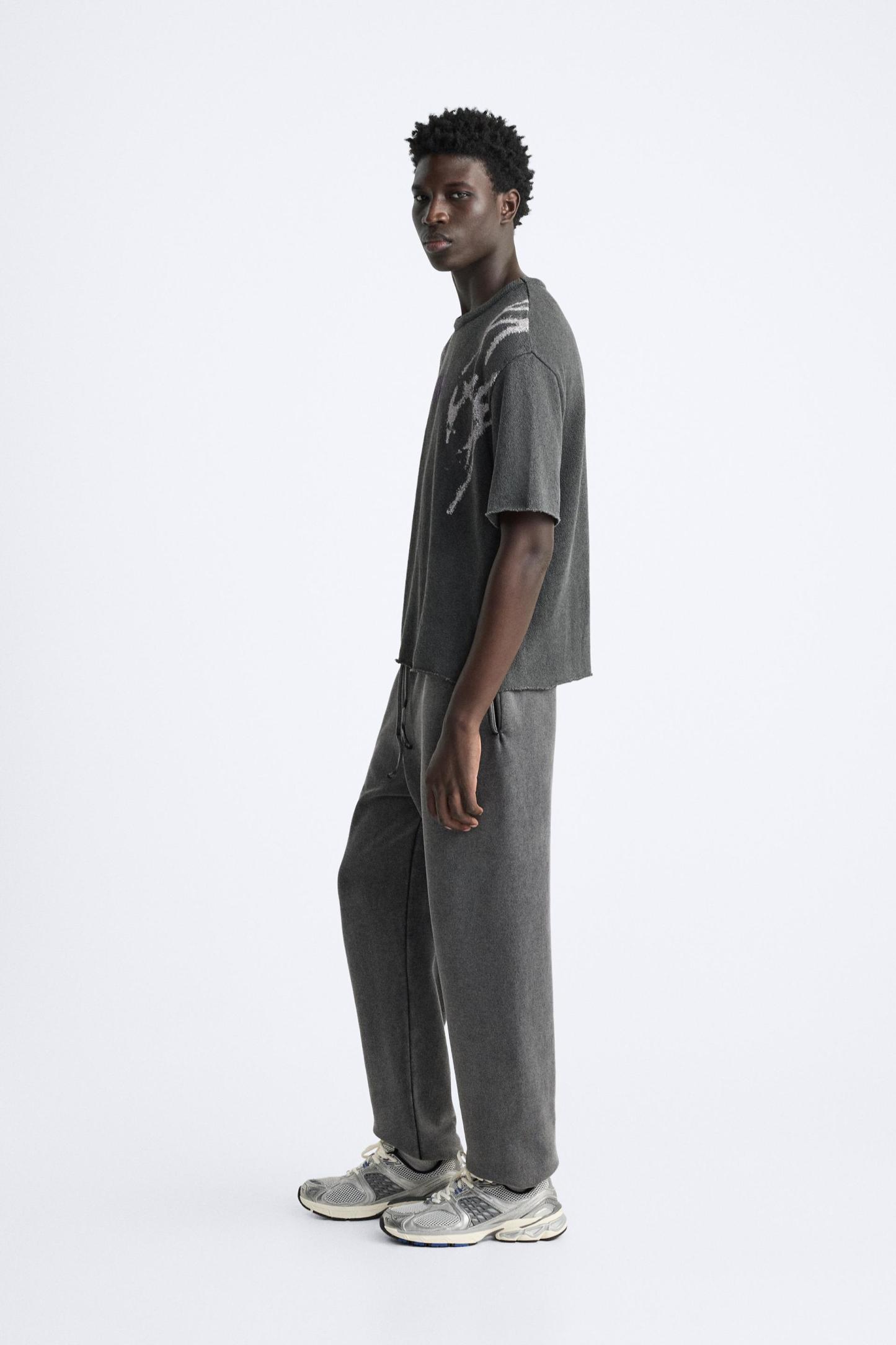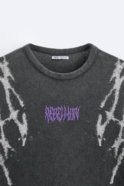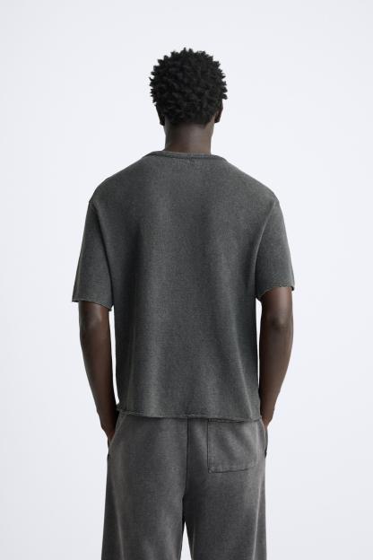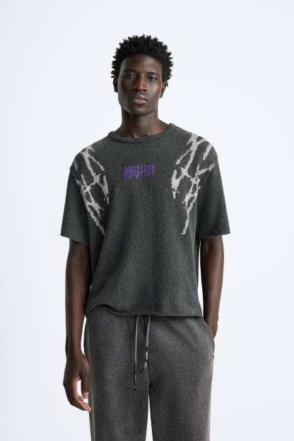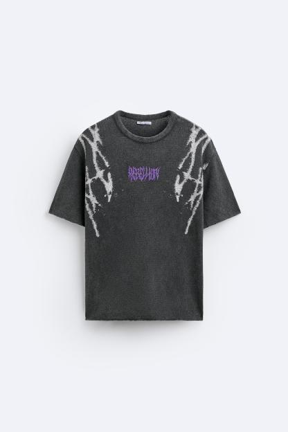 TEXTURED PRINT KNIT T-SHIRT