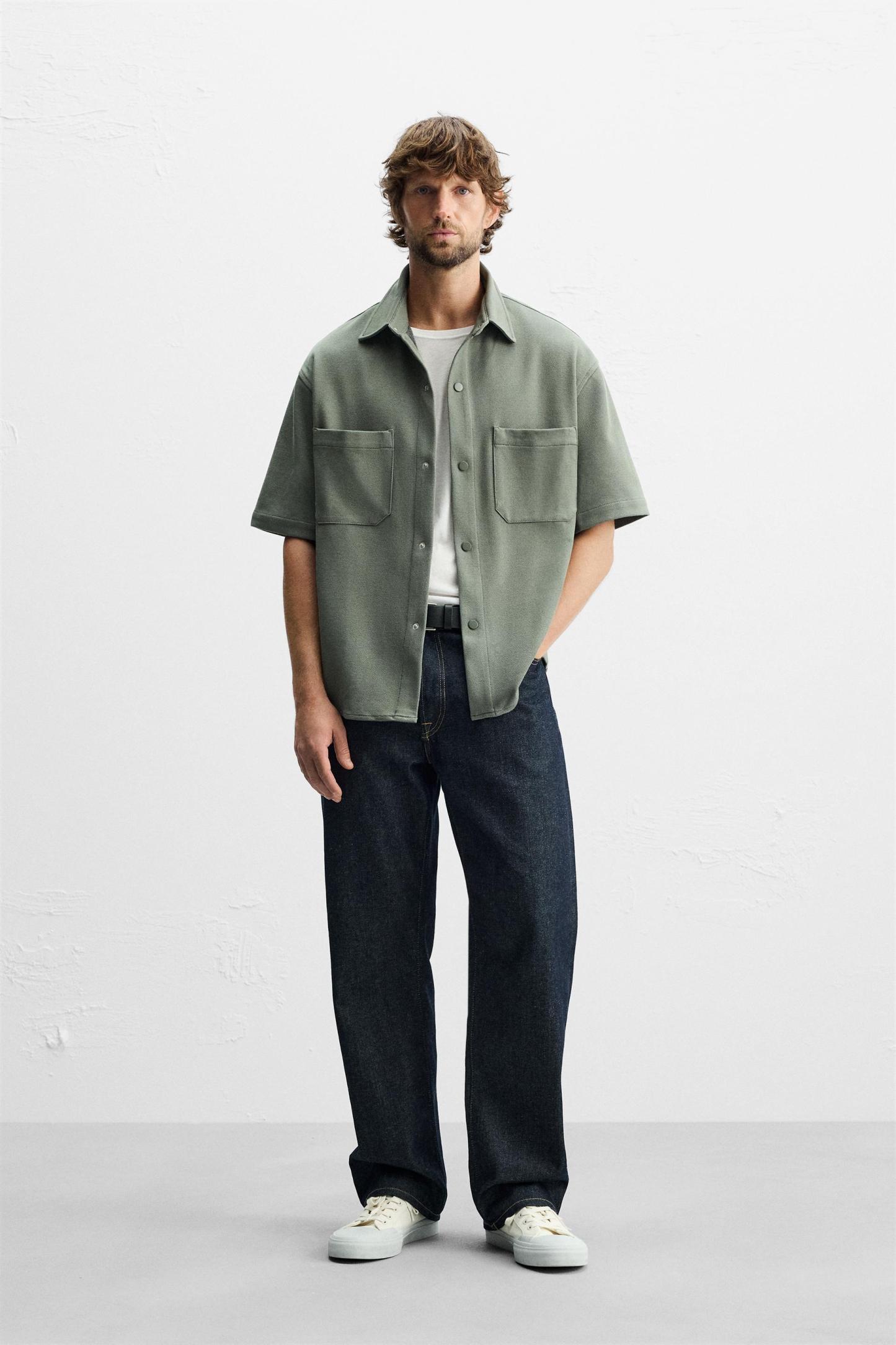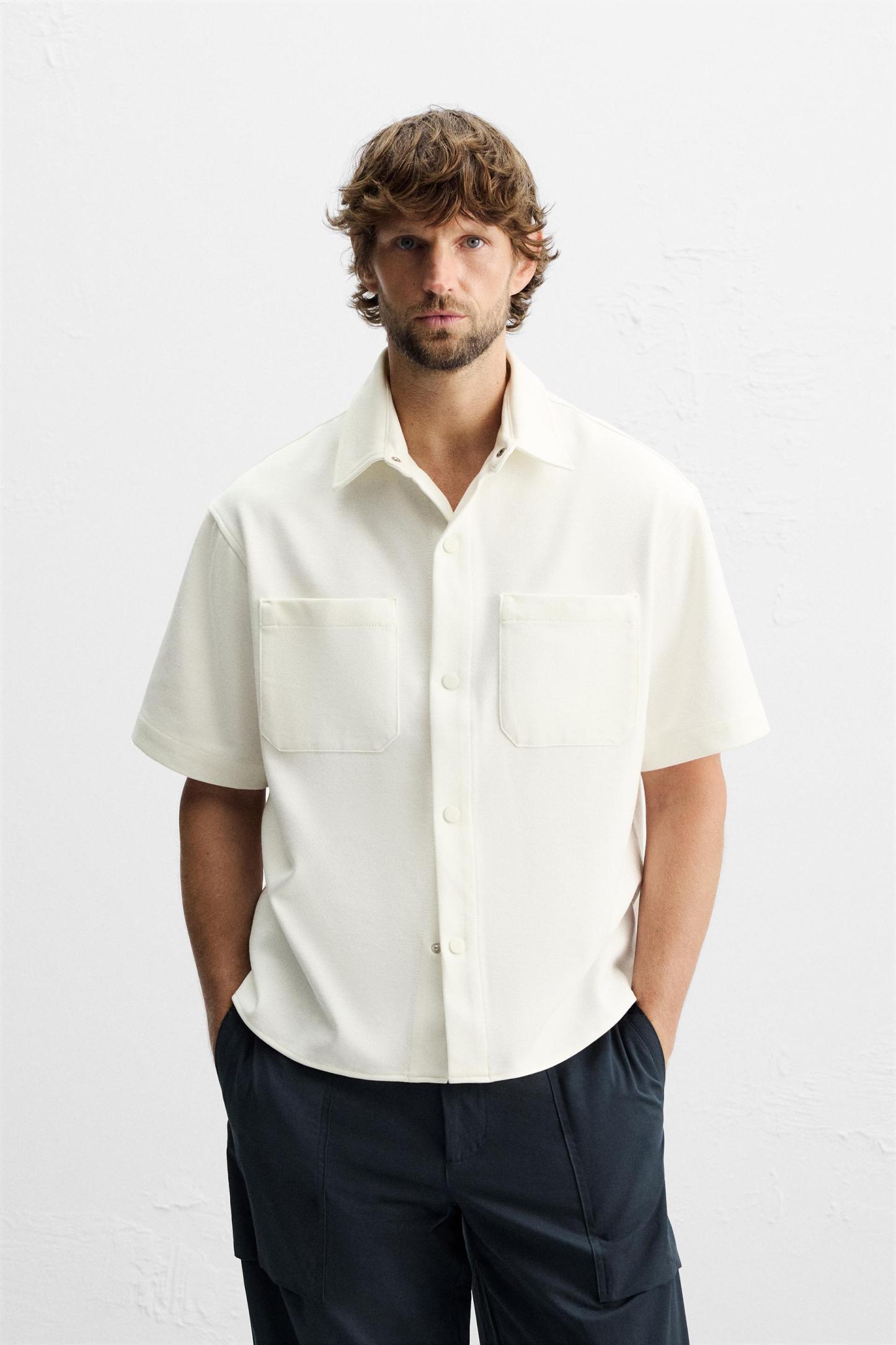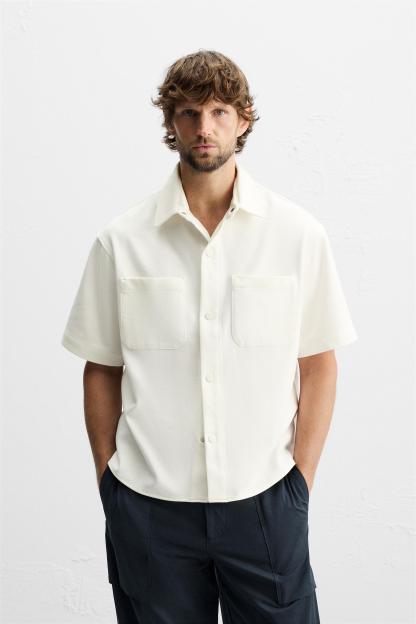 TEXTURED STRETCH OVERSHIRT