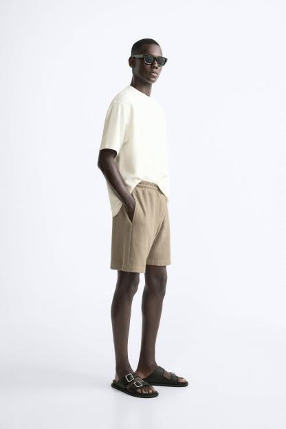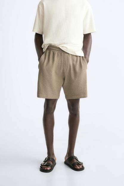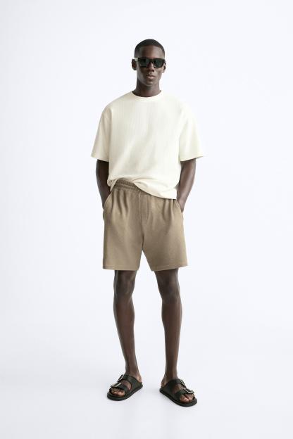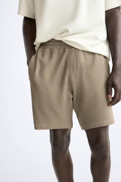 TEXTURED WEAVE SHORTS WITH MESH