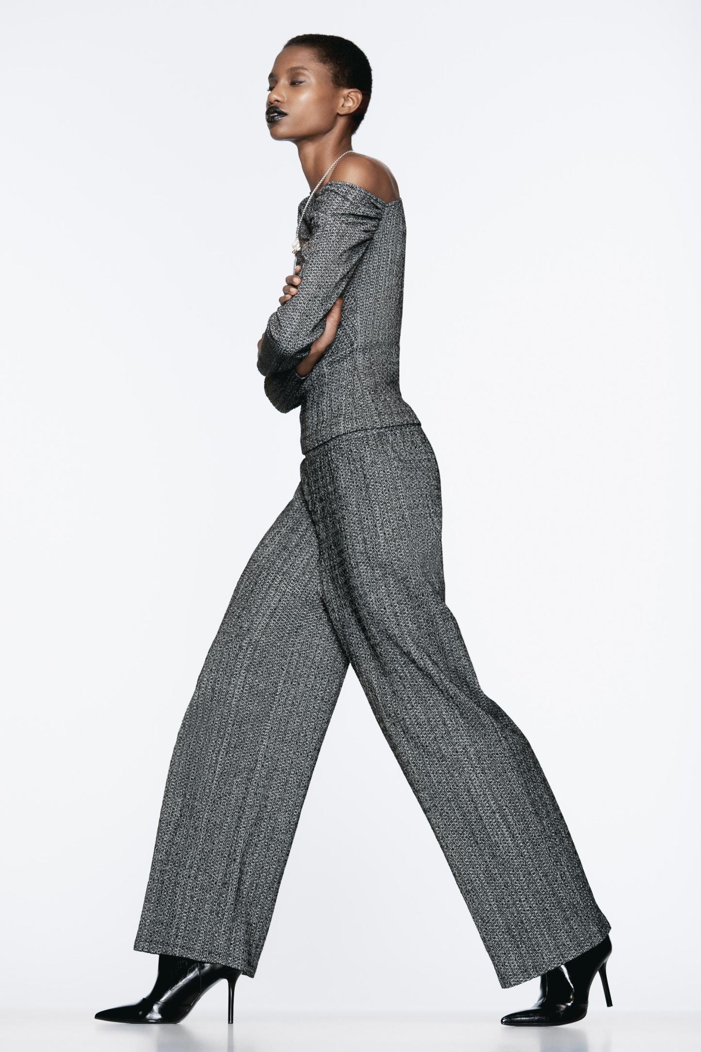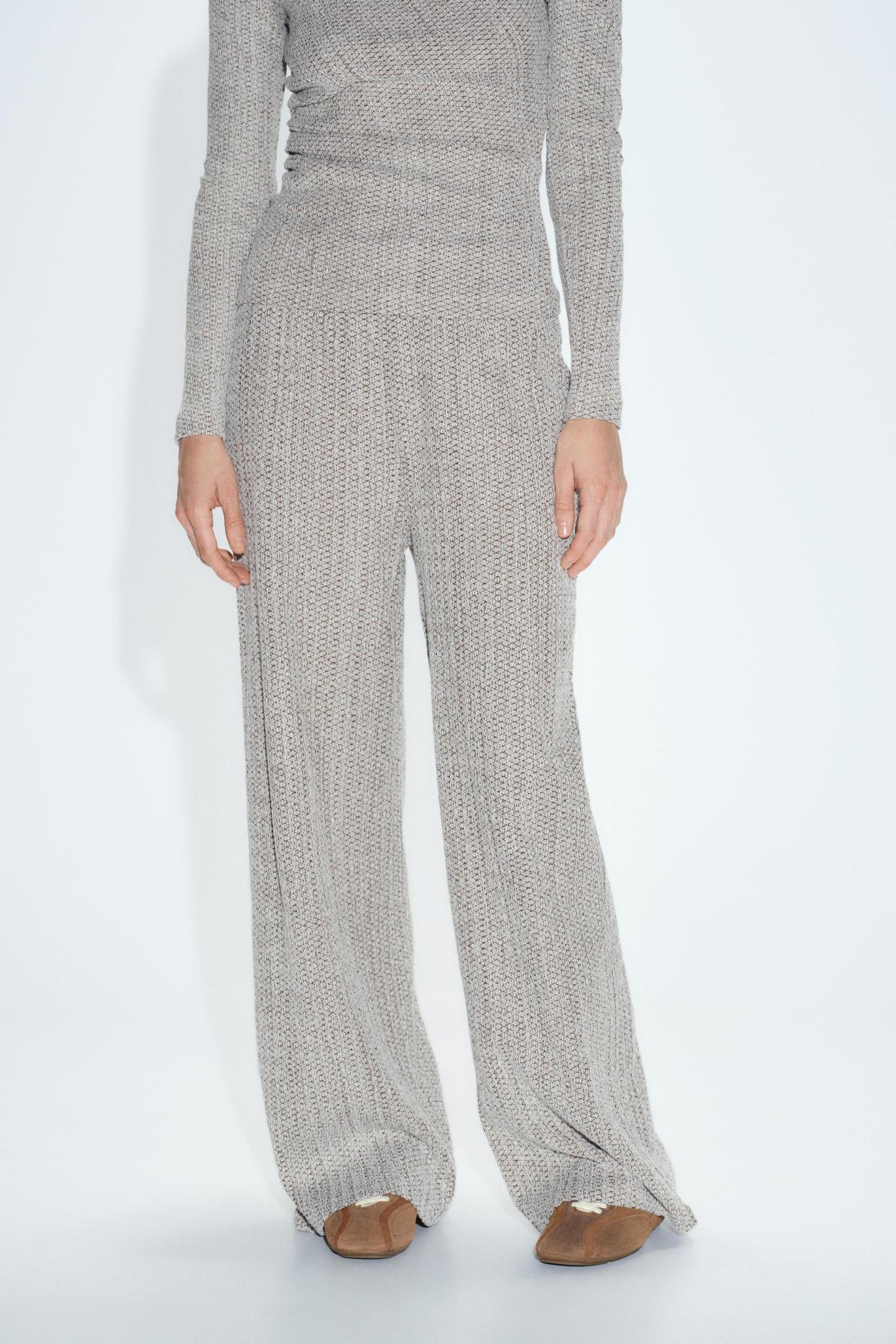 TEXTURED WIDE LEG PANTS