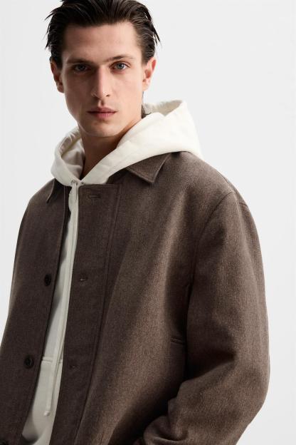 45% viscoseWhich has at least:LINING55% RCS-certified recycled polyesterOUTER SHELL39% RCS-certified recycled cotton16% RCS-certified recycled polyamide42% RCS-certified recycled woolCERTIFIED MATERIALSRCS CERTIFIED RECYCLED POLYAMIDEThis fiber is manufactured from polyamide waste and other discarded products, like fishing nets. Transforming the waste into new materials helps to limit the extraction of raw materials. It is certified in accordance with the Recycled Claim Standard (RCS) that verifies the recycled content and performs monitoring from the source through the final product.Certified by Intertek 193341More informationRCS CERTIFIED RECYCLED WOOLThis material is made from recycled textile waste and used garments. Transforming waste into new materials helps limit the extraction of raw materials. It is certified to the Recycled Claim Standard (RCS), which verifies the recycled content and tracks it from source to final product.Certified by Intertek 193341More informationRCS CERTIFIED RECYCLED COTTONThis fiber is made from recycled cotton textile waste. Using recycled materials helps limit the consumption of raw materials. It is certified to the Recycled Claim Standard (RCS), which verifies the recycled content and tracks it from source to final product.Certified by Intertek 193341More informationRCS CERTIFIED RECYCLED POLYESTERNowadays, recycled polyester is mainly made from PET plastic waste. This is a type of plastic that is widely used in a variety of items, such as plastic bottles. Using recycled materials helps limit the production of virgin polyester fiber. It is certified to the Recycled Claim Standard (RCS), which verifies the recycled content and tracks it from source to final product.Certified by Intertek 193341More informationCARECaring for your clothes is caring for the environment.To keep your jackets and coats clean, just freshen them out and wipe them with a cloth or clothing brush. If dry cleaning is necessary, try to look for dry cleaners that use environmentally respectful technologies.