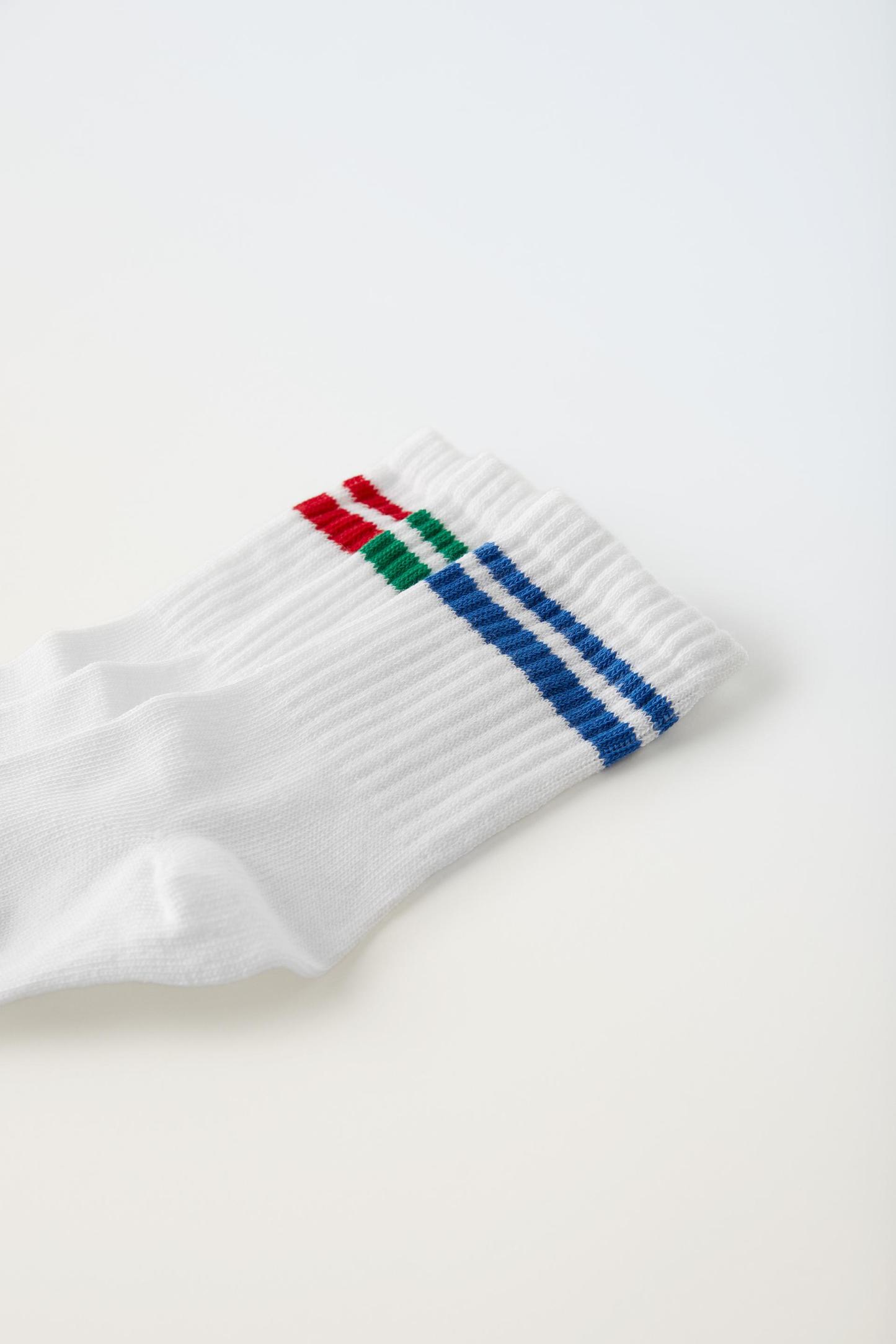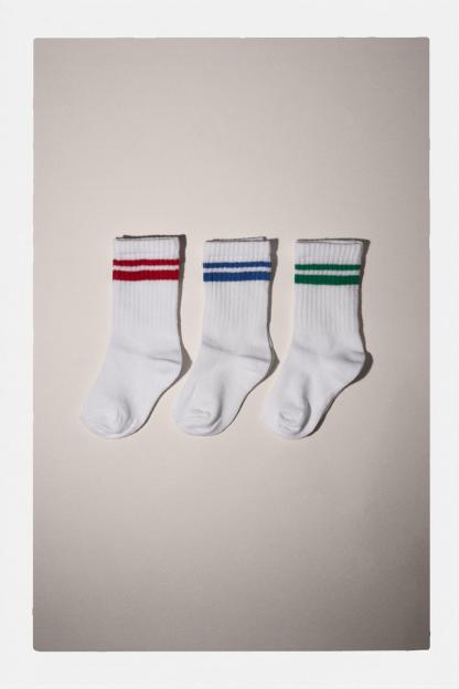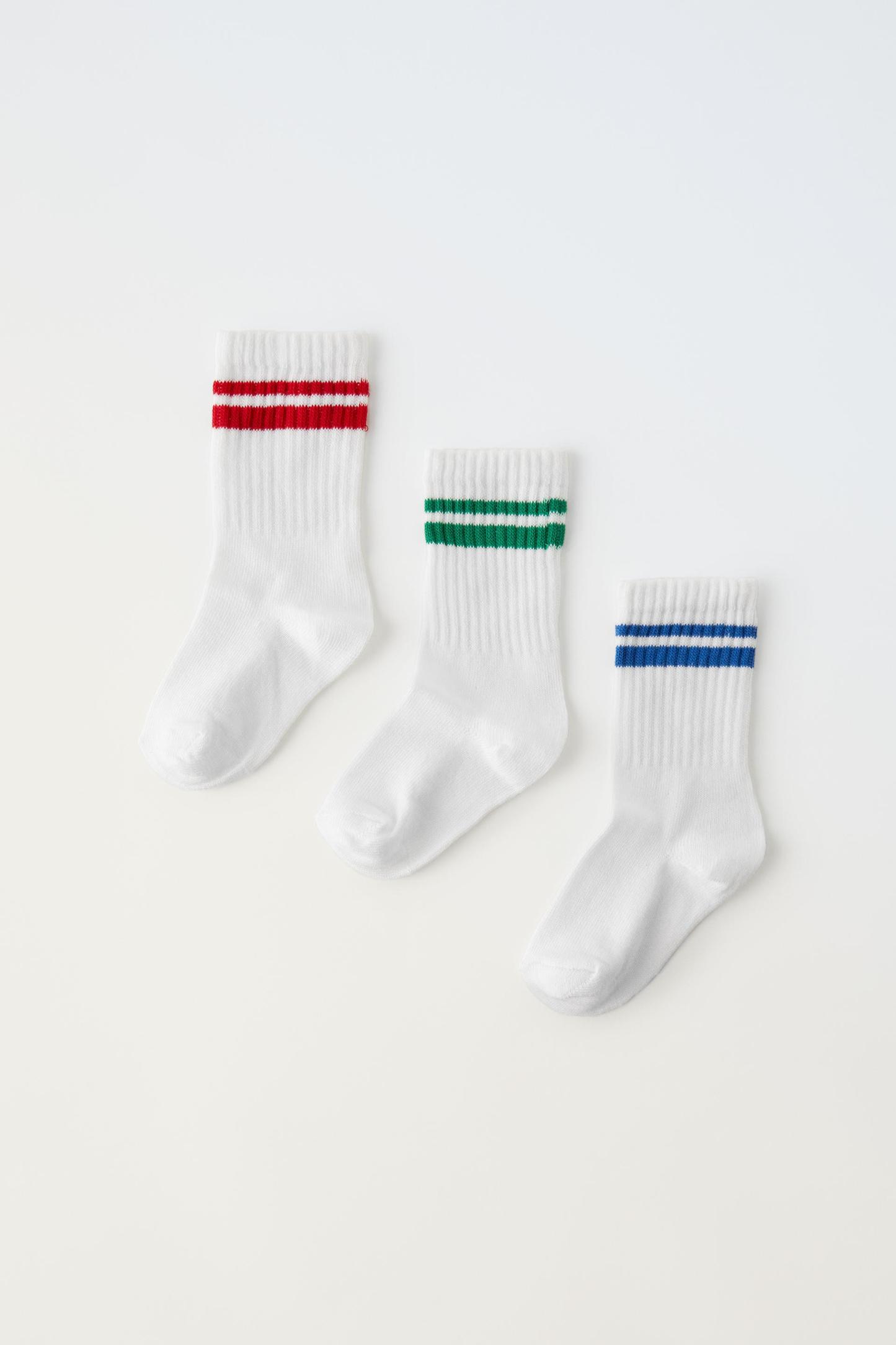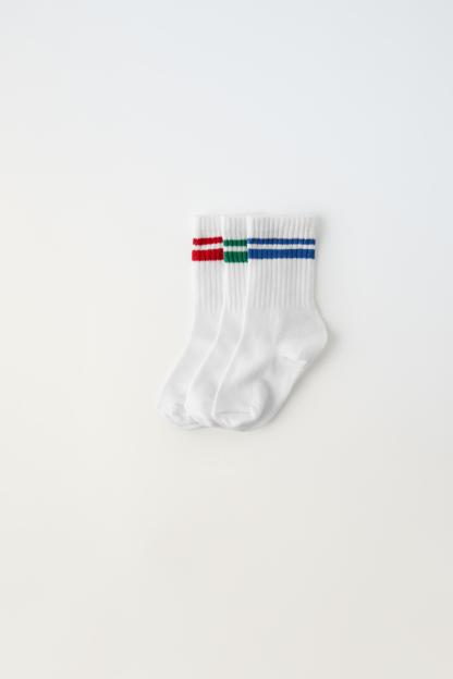 THREE-PACK OF STRIPED SPORT CREW SOCKS