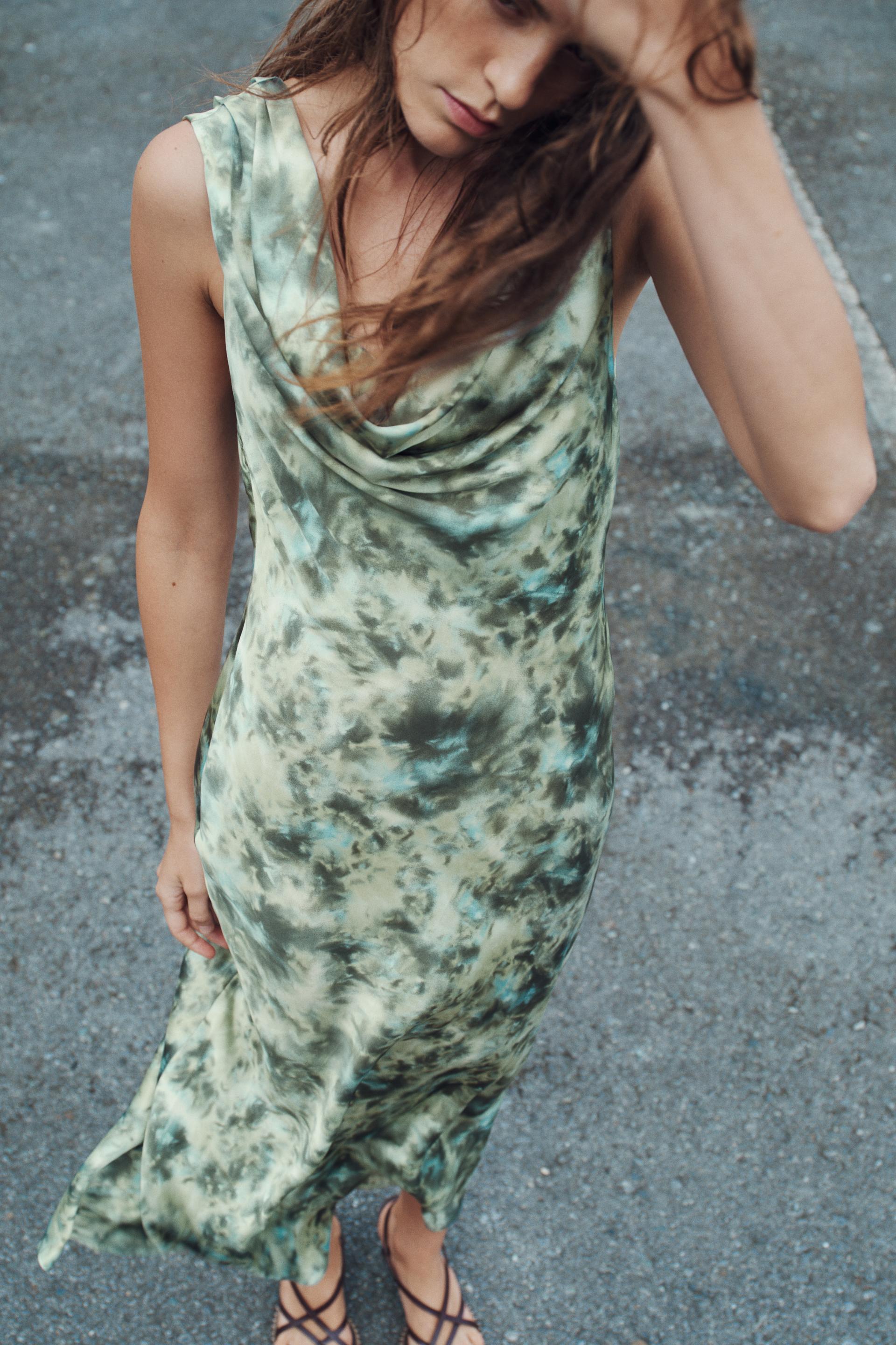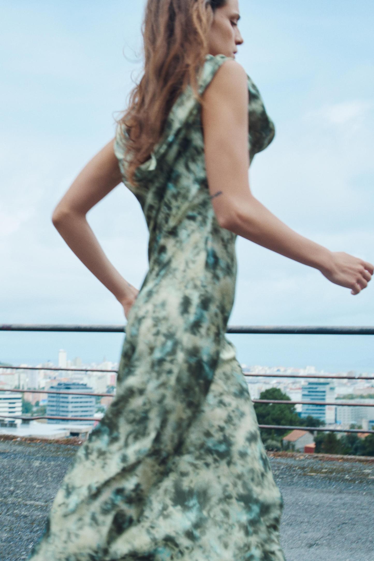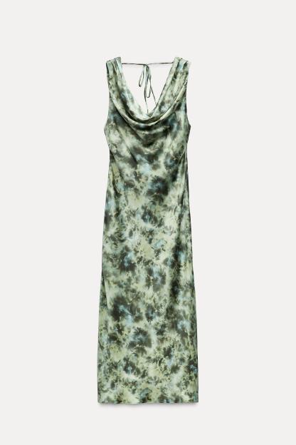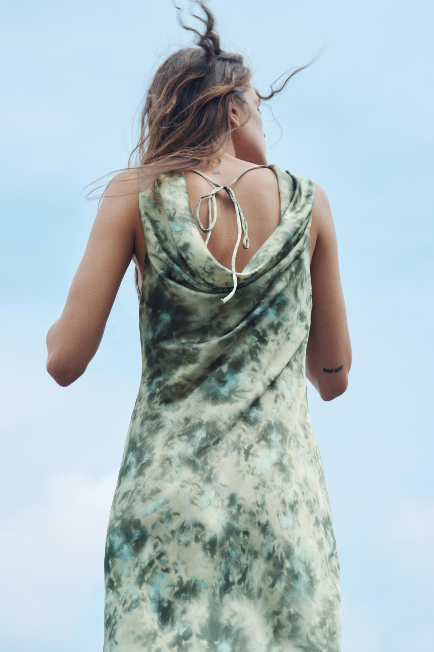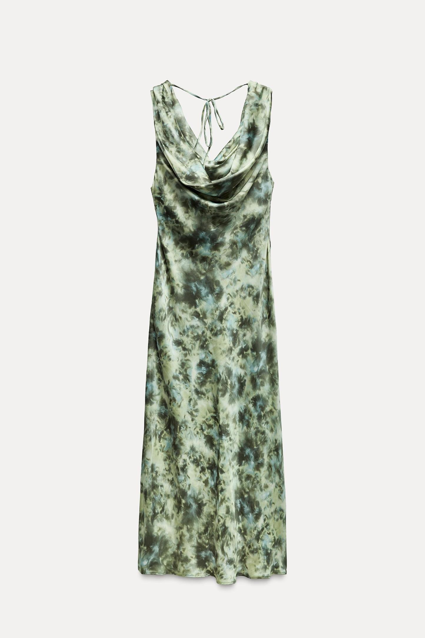 TIE DYE PRINT SATIN EFFECT DRESS
