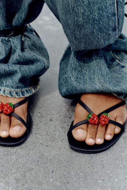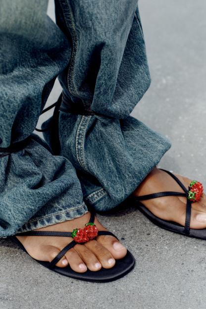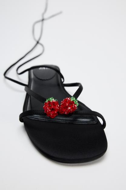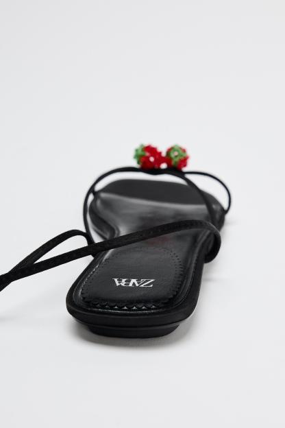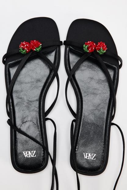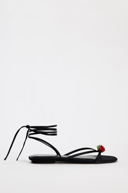 TIED LACE UP FLAT SANDALS