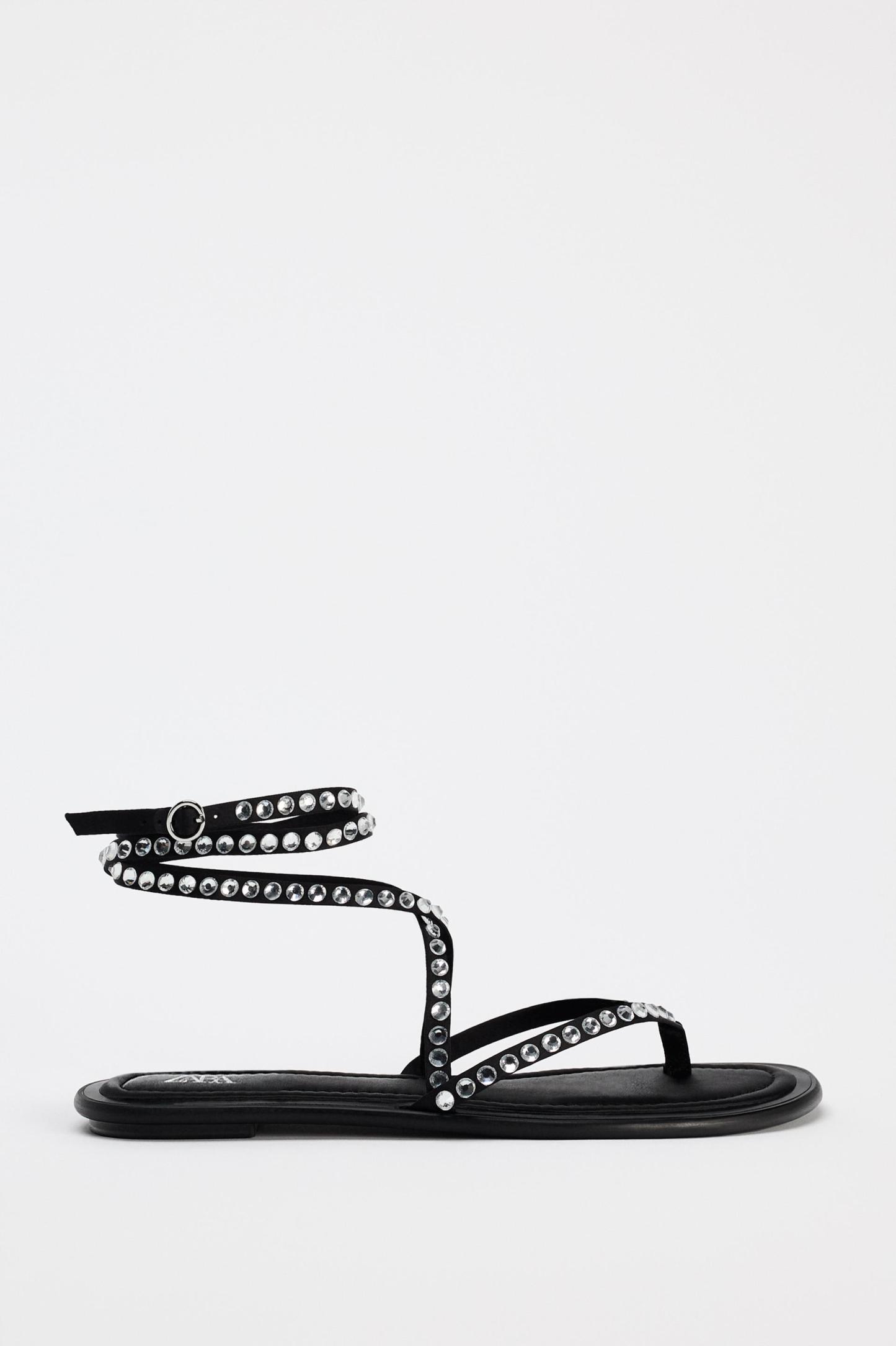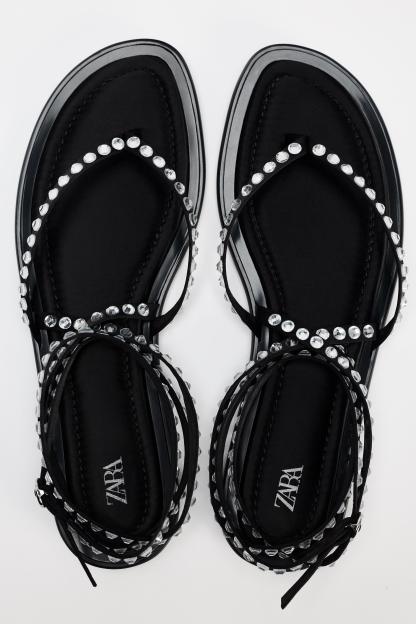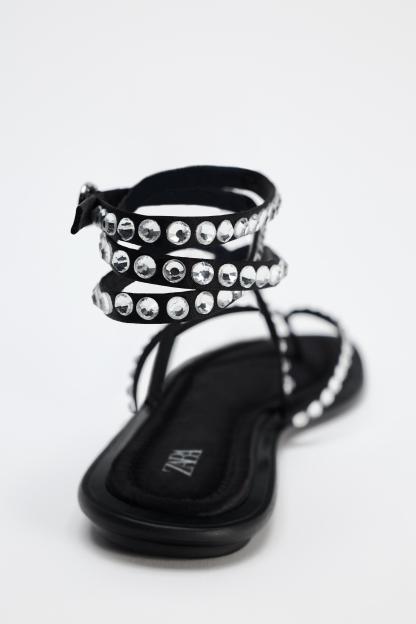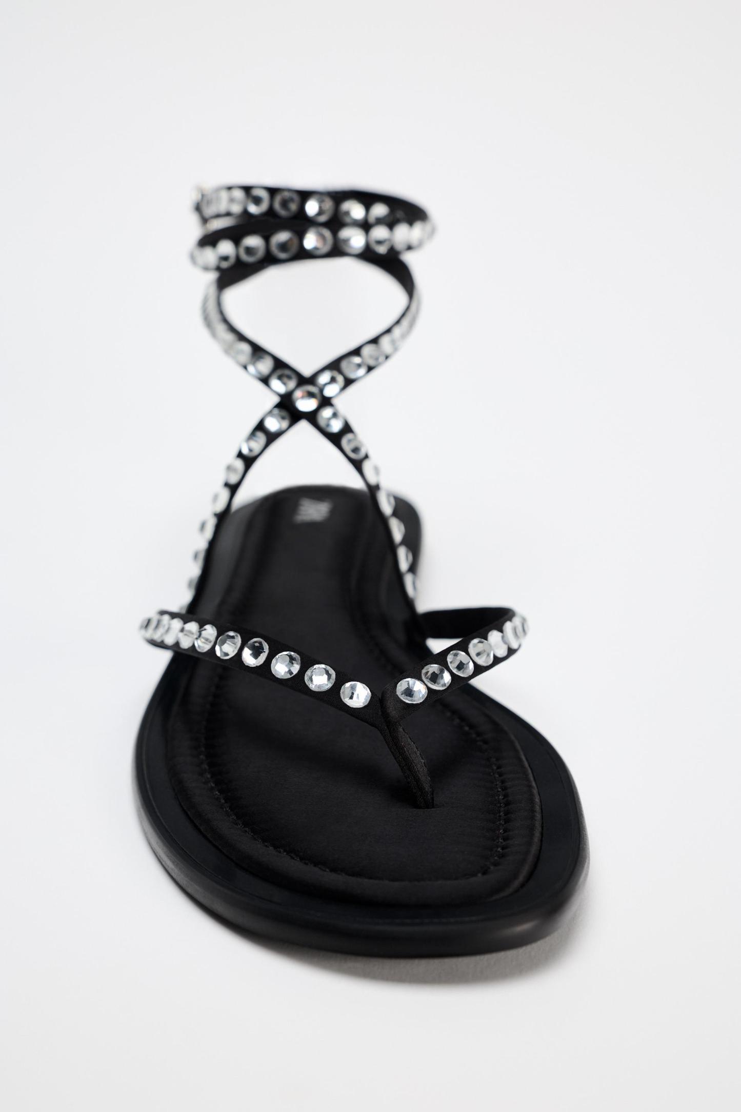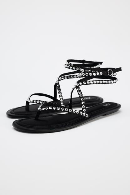 TIED RHINESTONE FLAT SANDALS