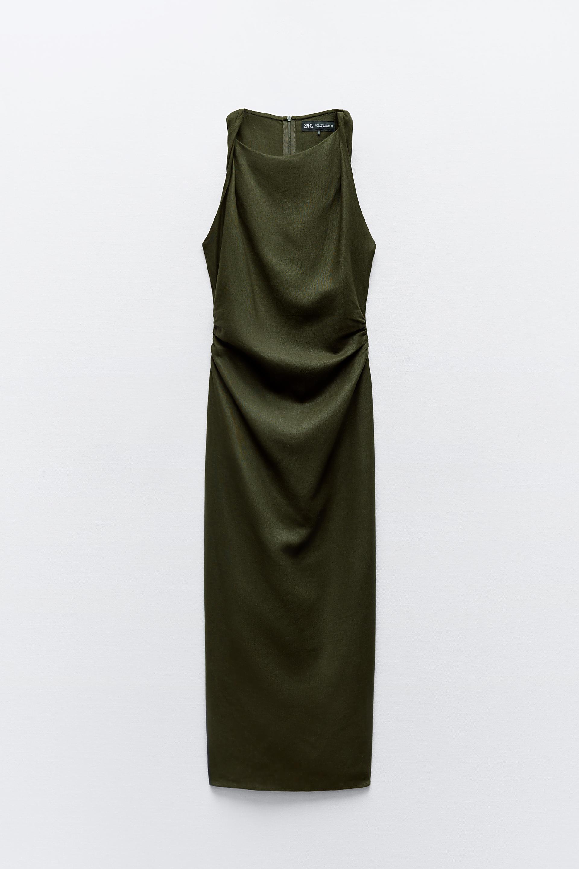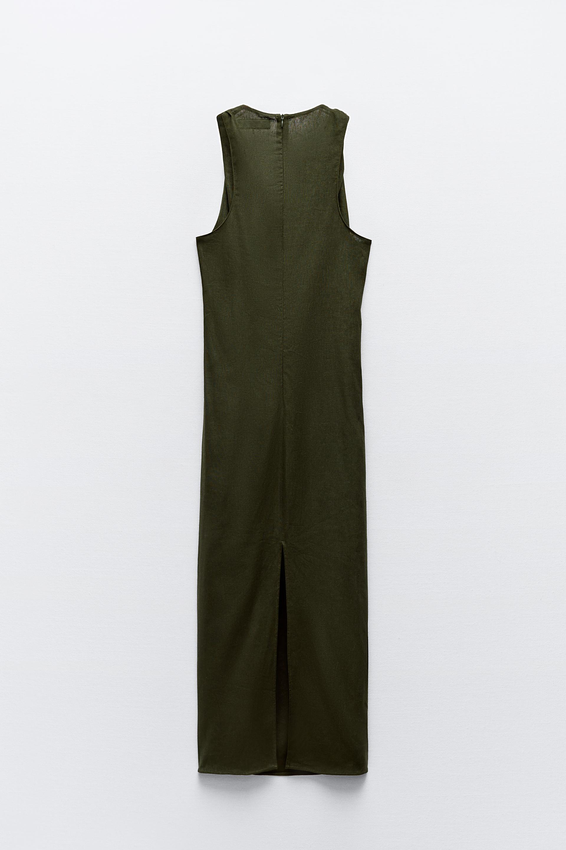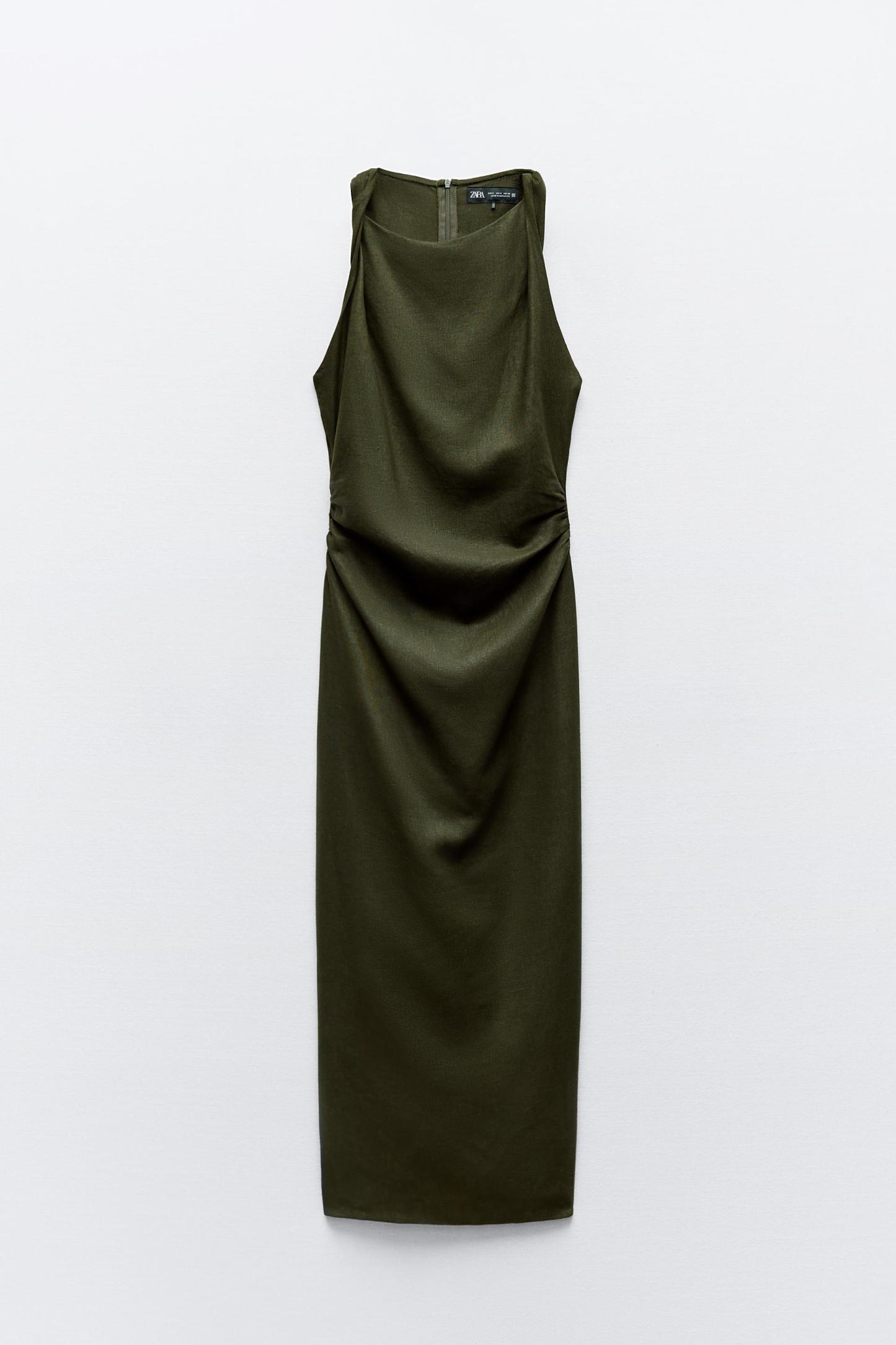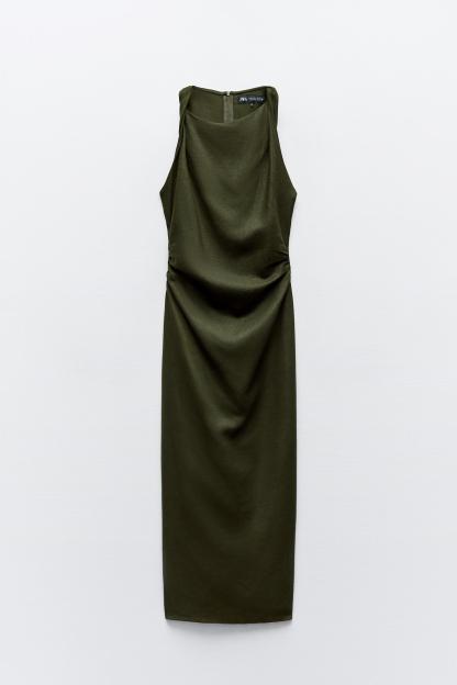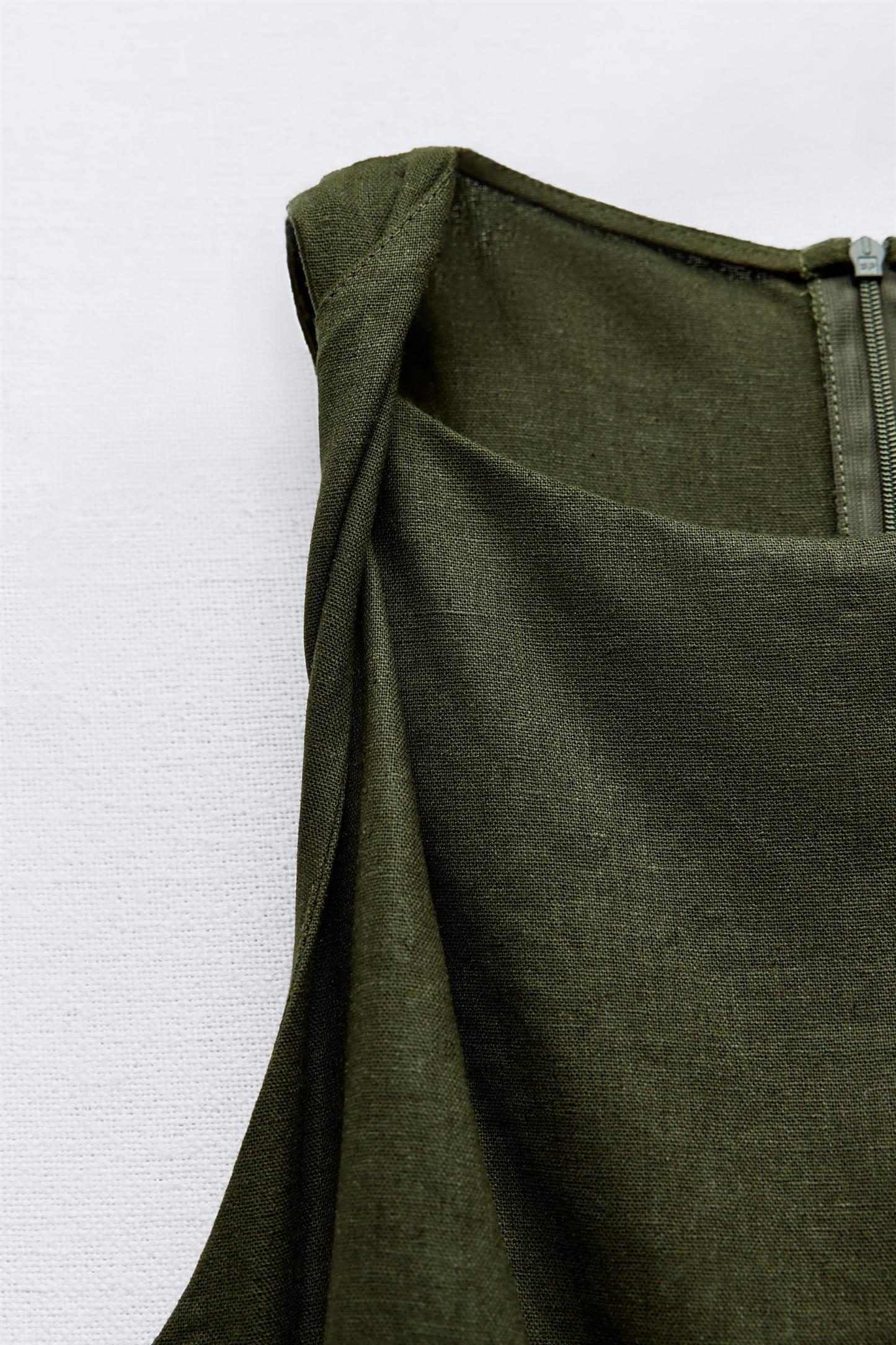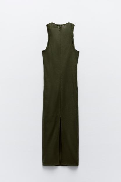 TWISTED LINEN BLEND MIDI DRESS