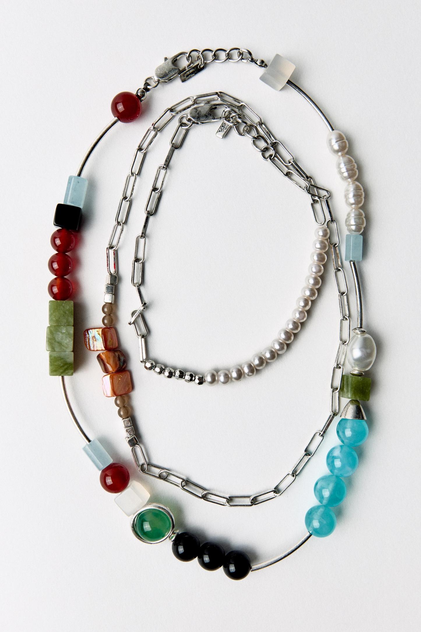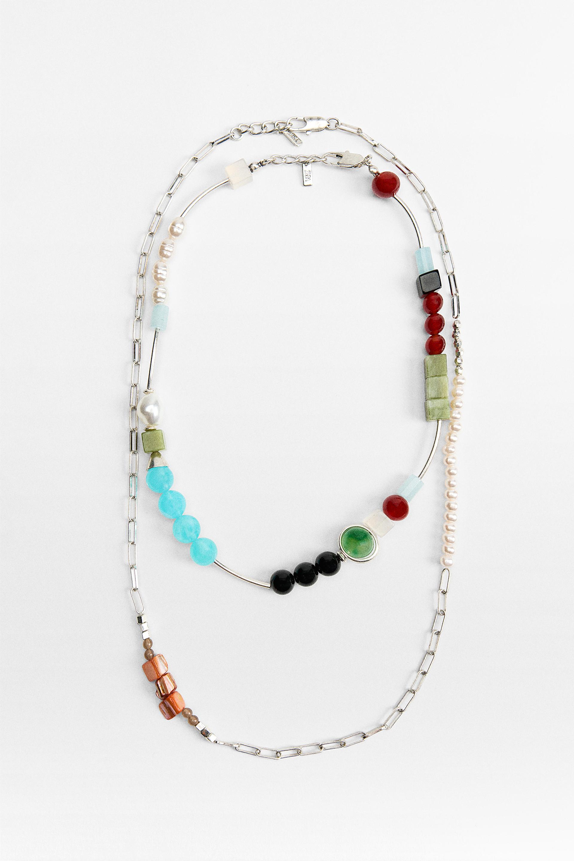 TWO PACK OF BEADED STONE NECKLACES