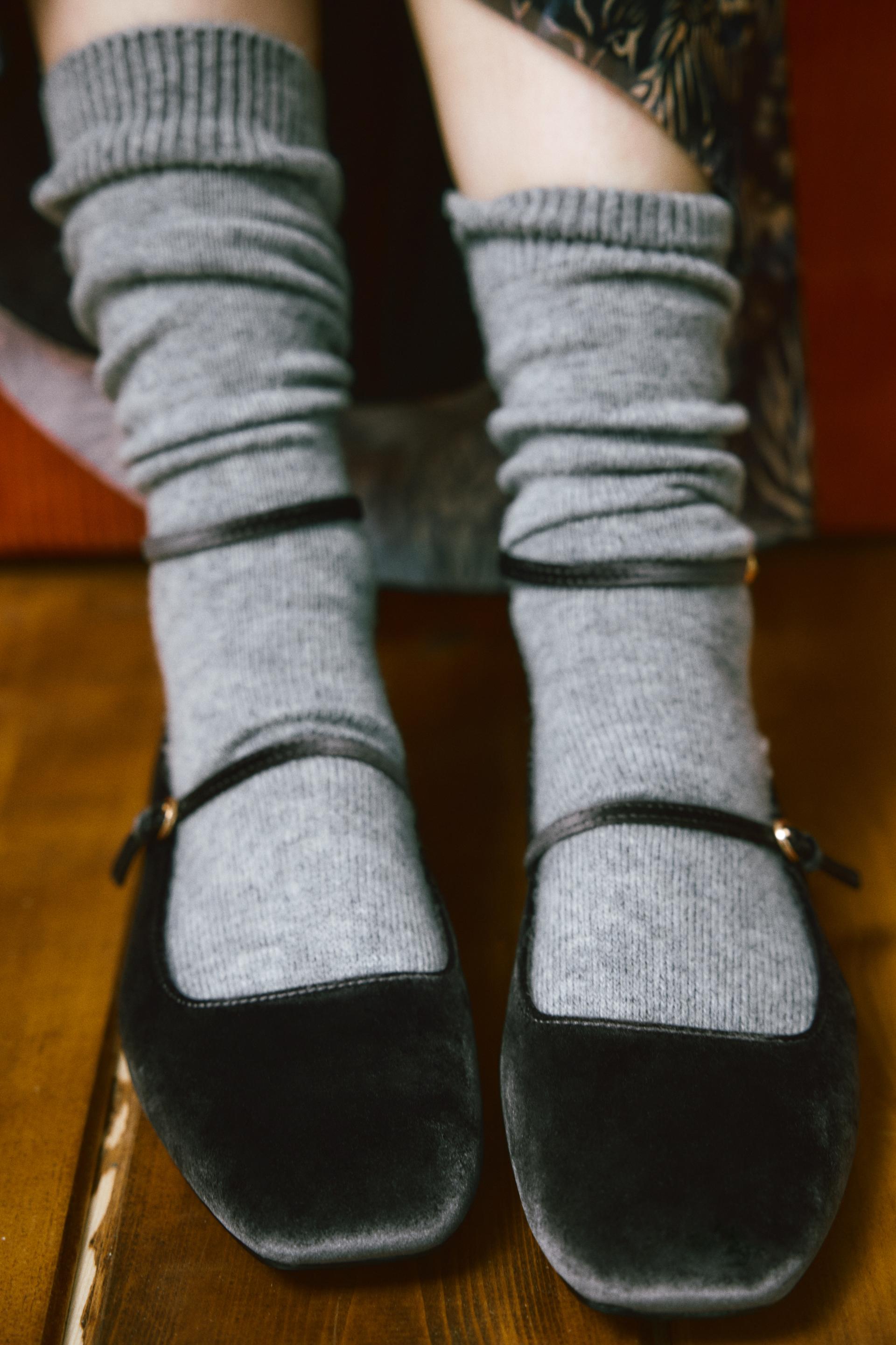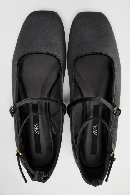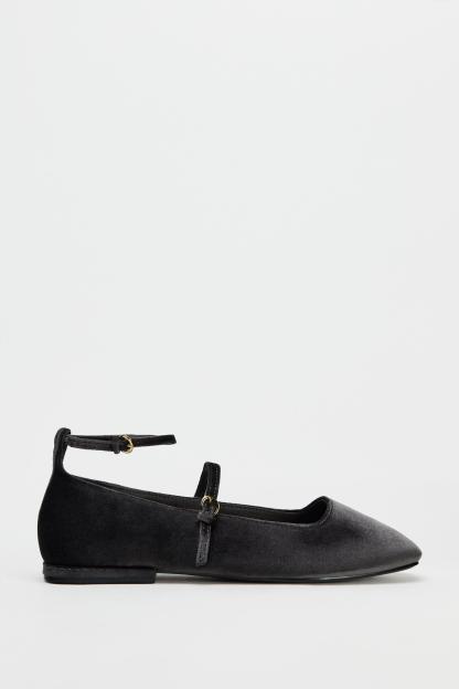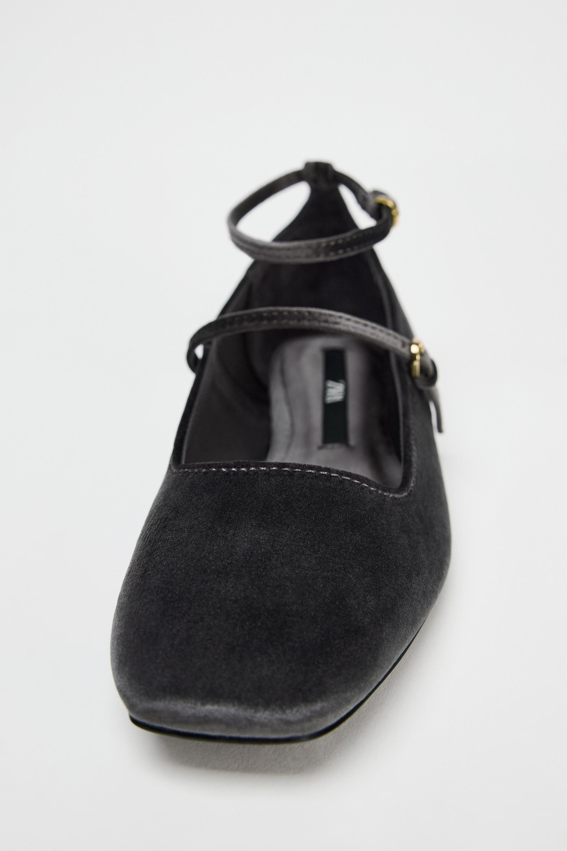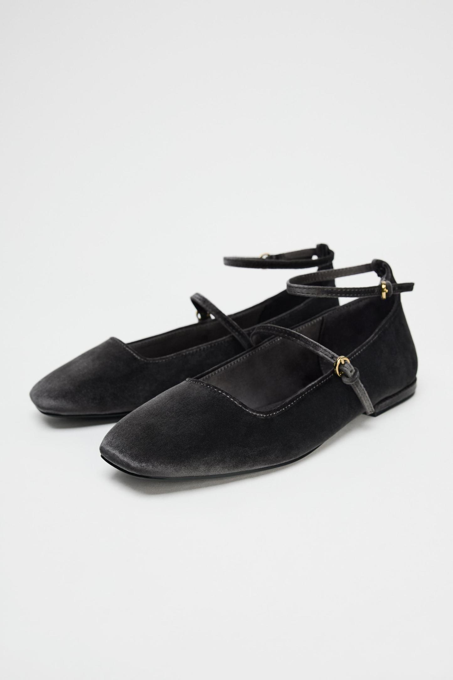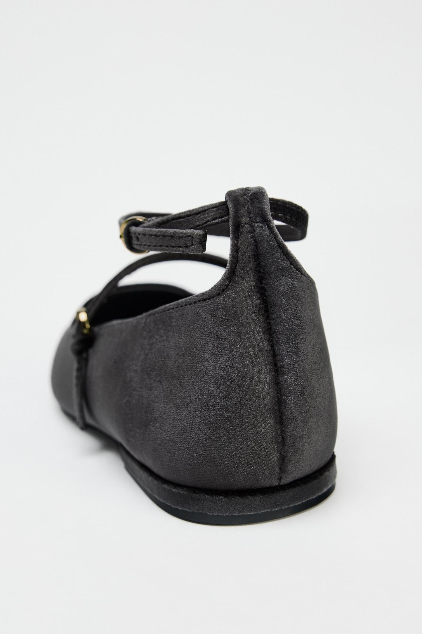 VELVET BALLET FLATS WITH STRAPS