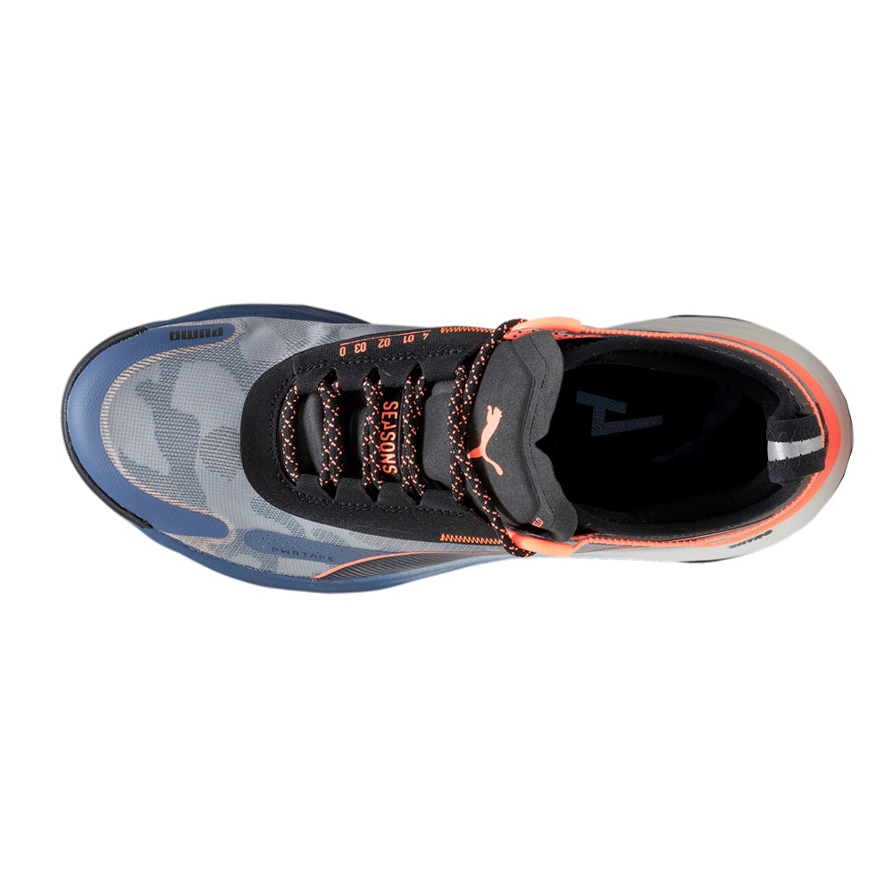 Tackle any terrain in the sturdy confines of the Voyage NITRO 3. In this updated version of the model, we��ve tooled the trail shoe with a full NITRO foam midsole for a lighter weight and more responsive ride when you��re conquering distances. The PuthtmaGRIP ATR rubber outsole has been revamped with our PWRADAPT tech, allowing the lugs to move independently with the ground for supreme traction on multi terrain. Our new, wider upper has been reinforced with PWRTAPE for support and protection, and the forefoot drain ports shed water like a champ. Dominate your run, no matter the season, with the Voyage NITRO 3.