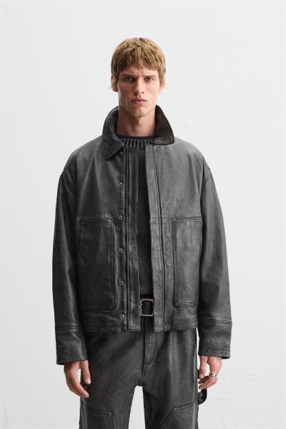 WASHED EFFECT LEATHER JACKET