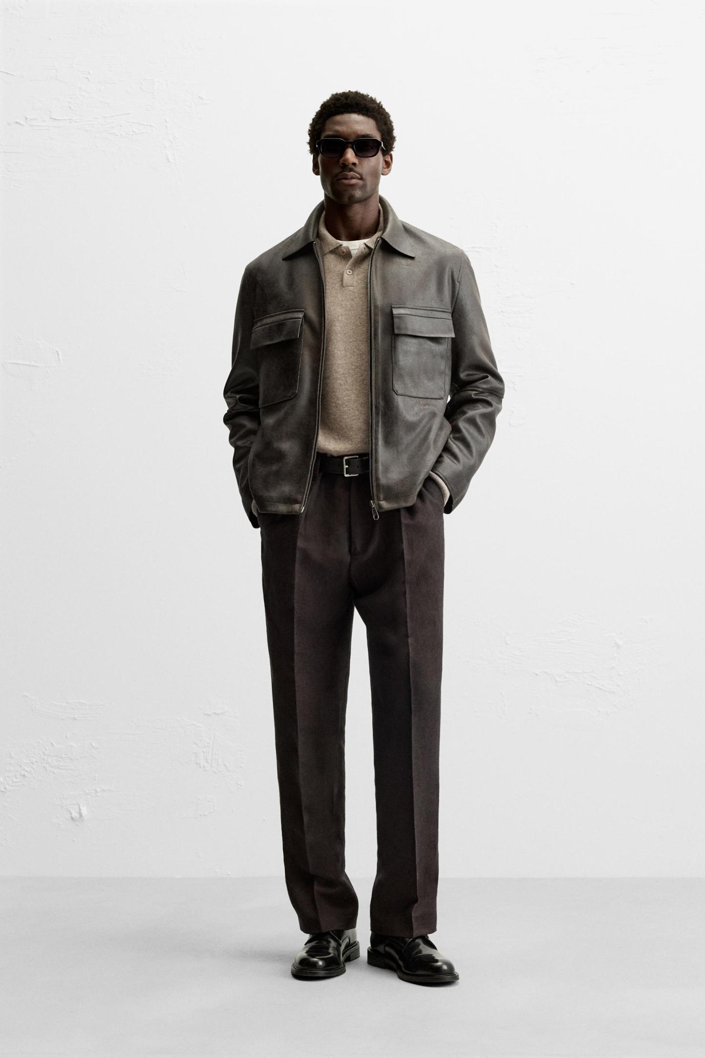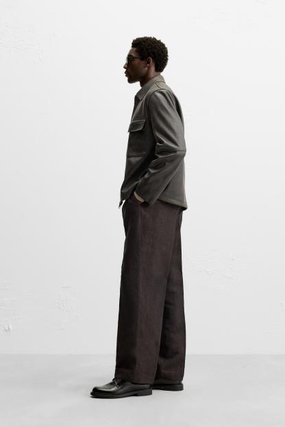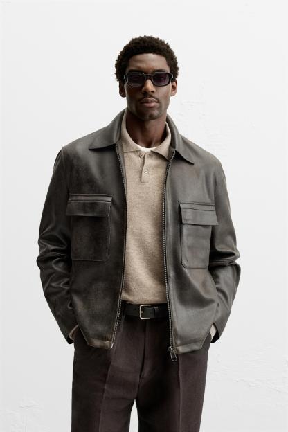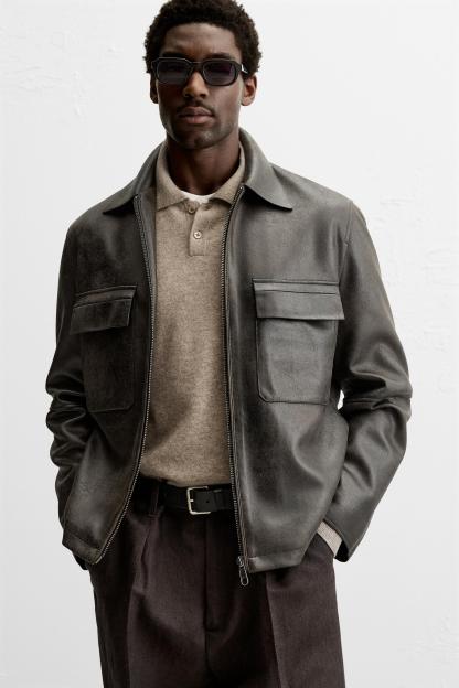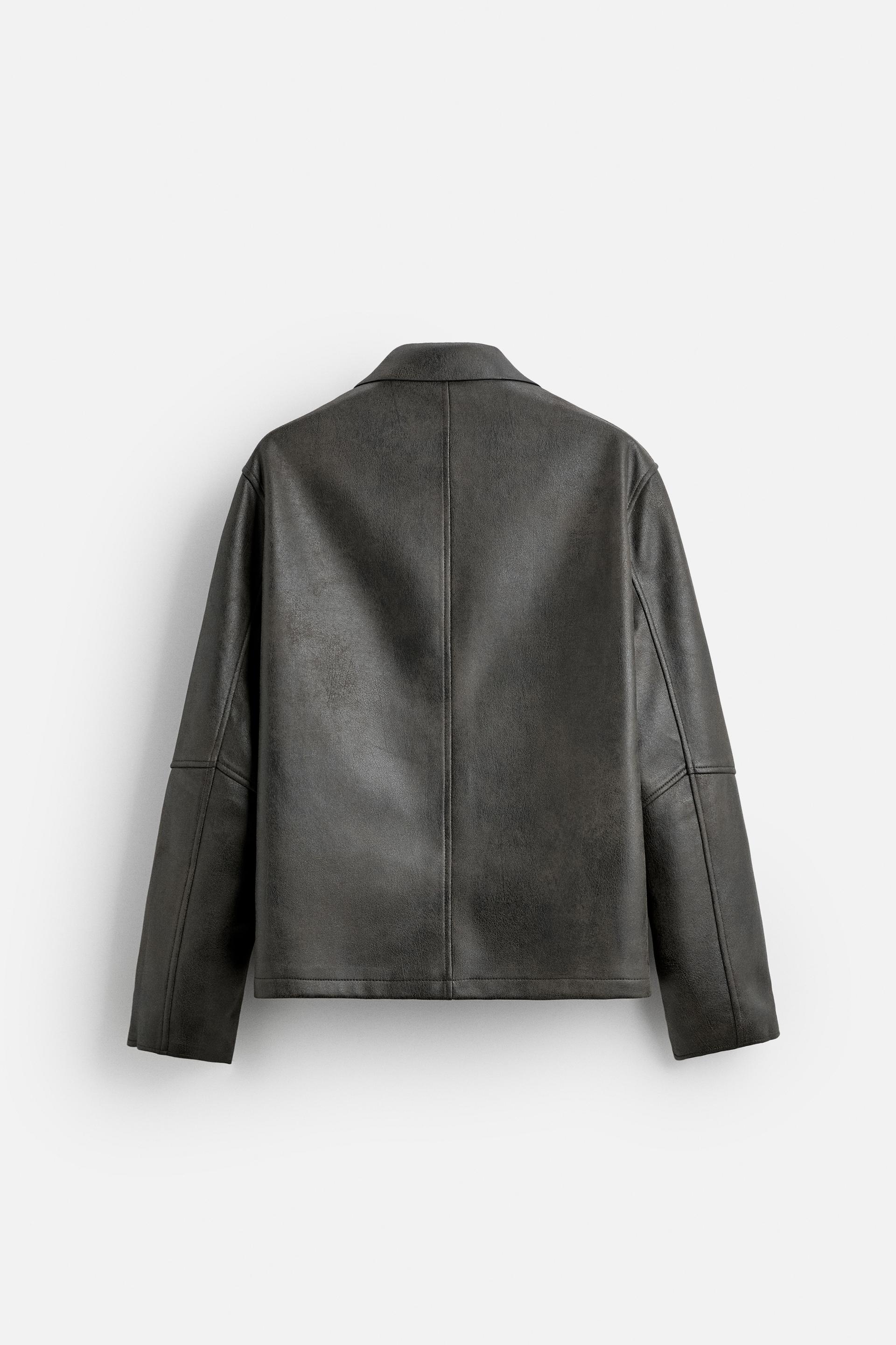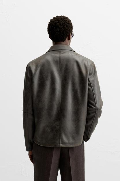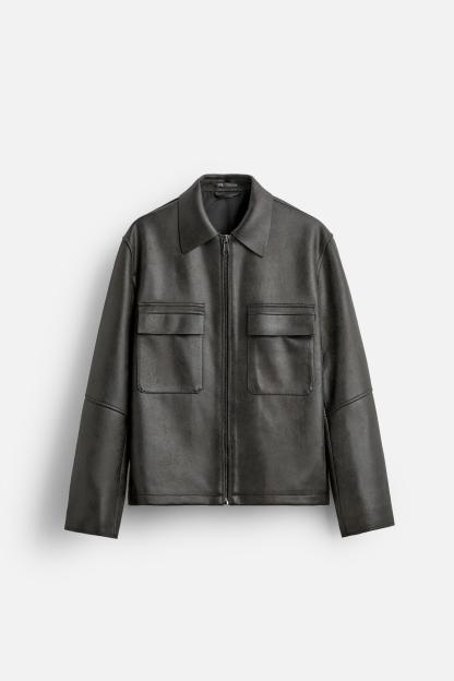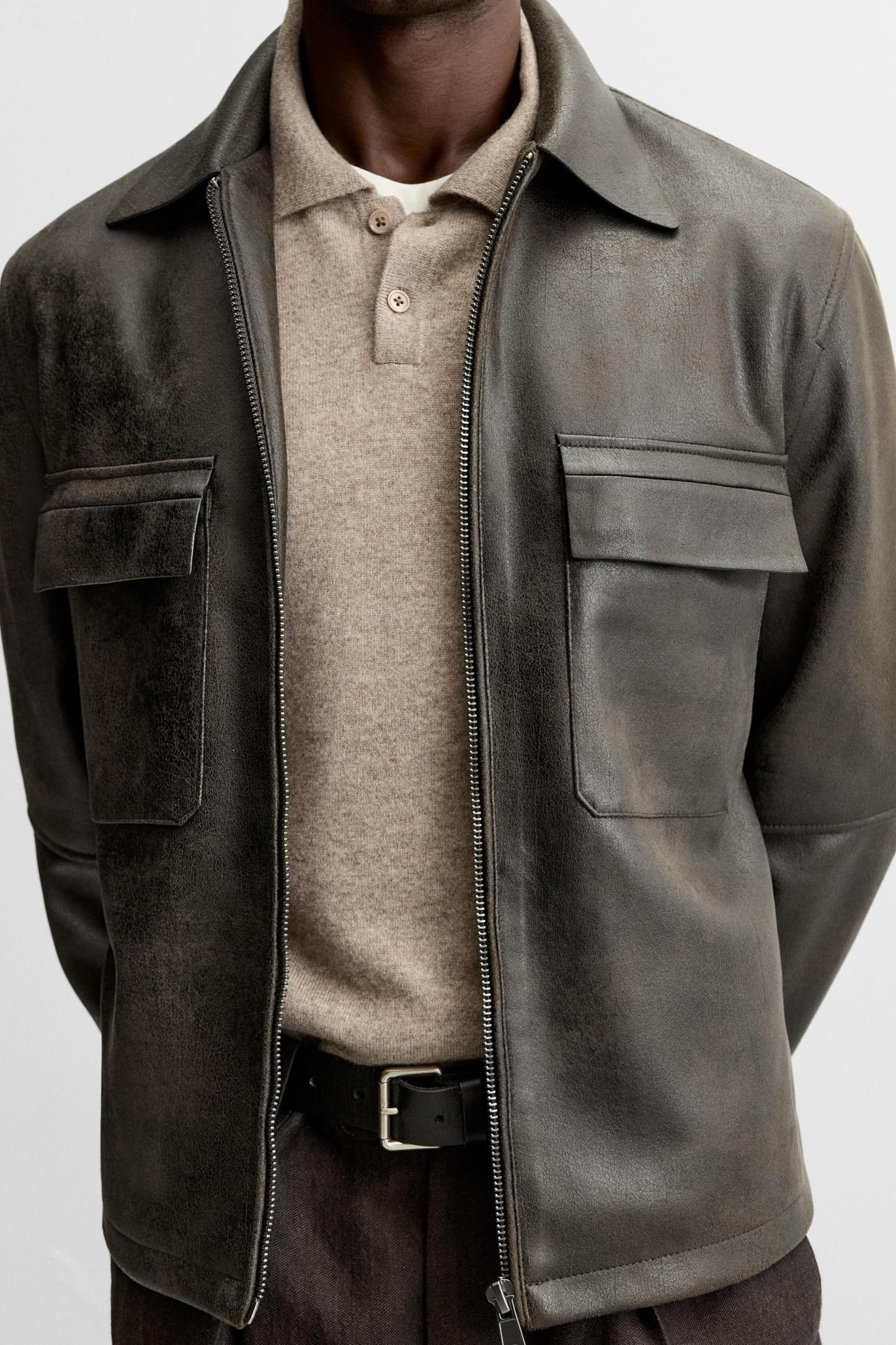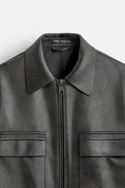WASHED FAUX LEATHER OVERSHIRT