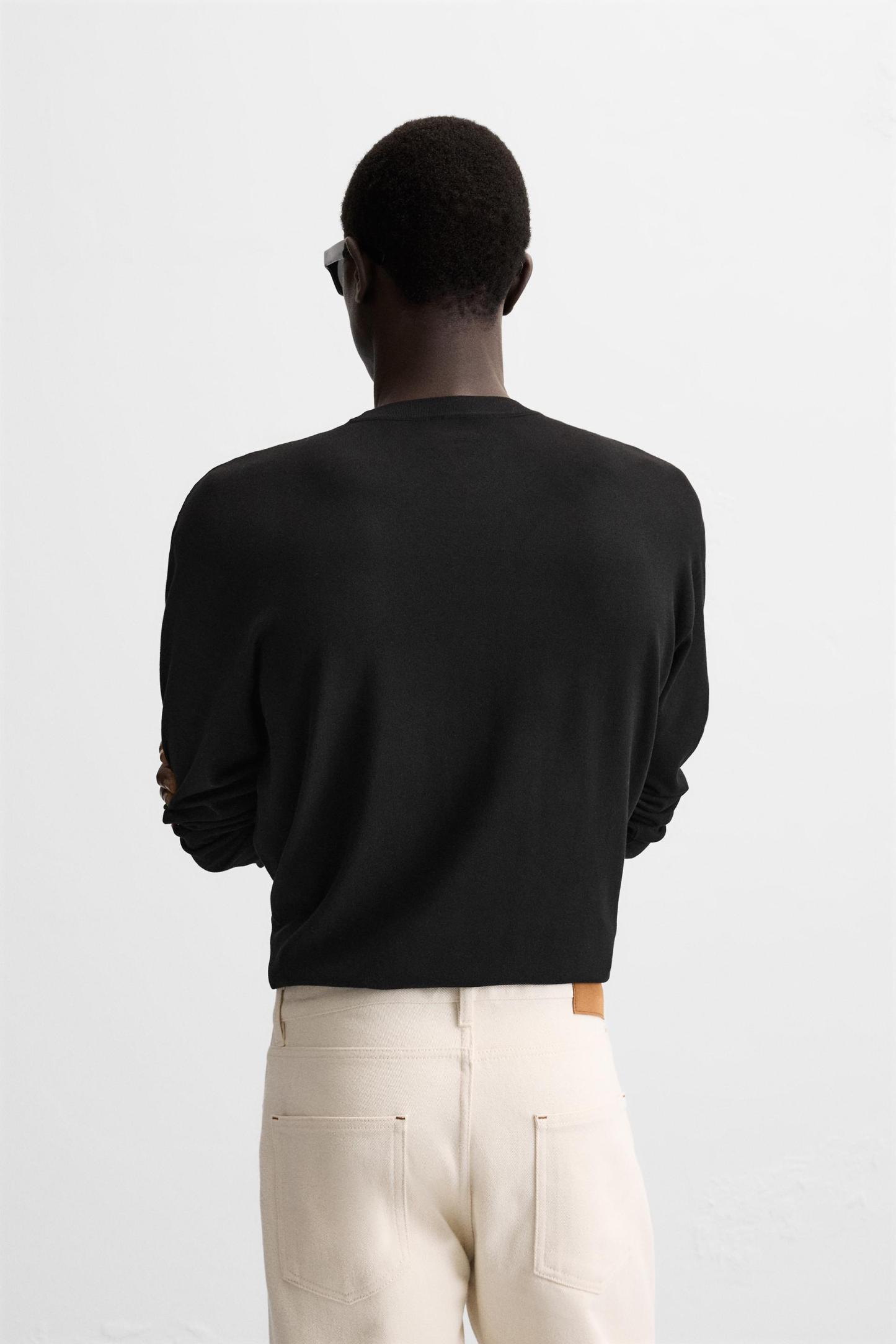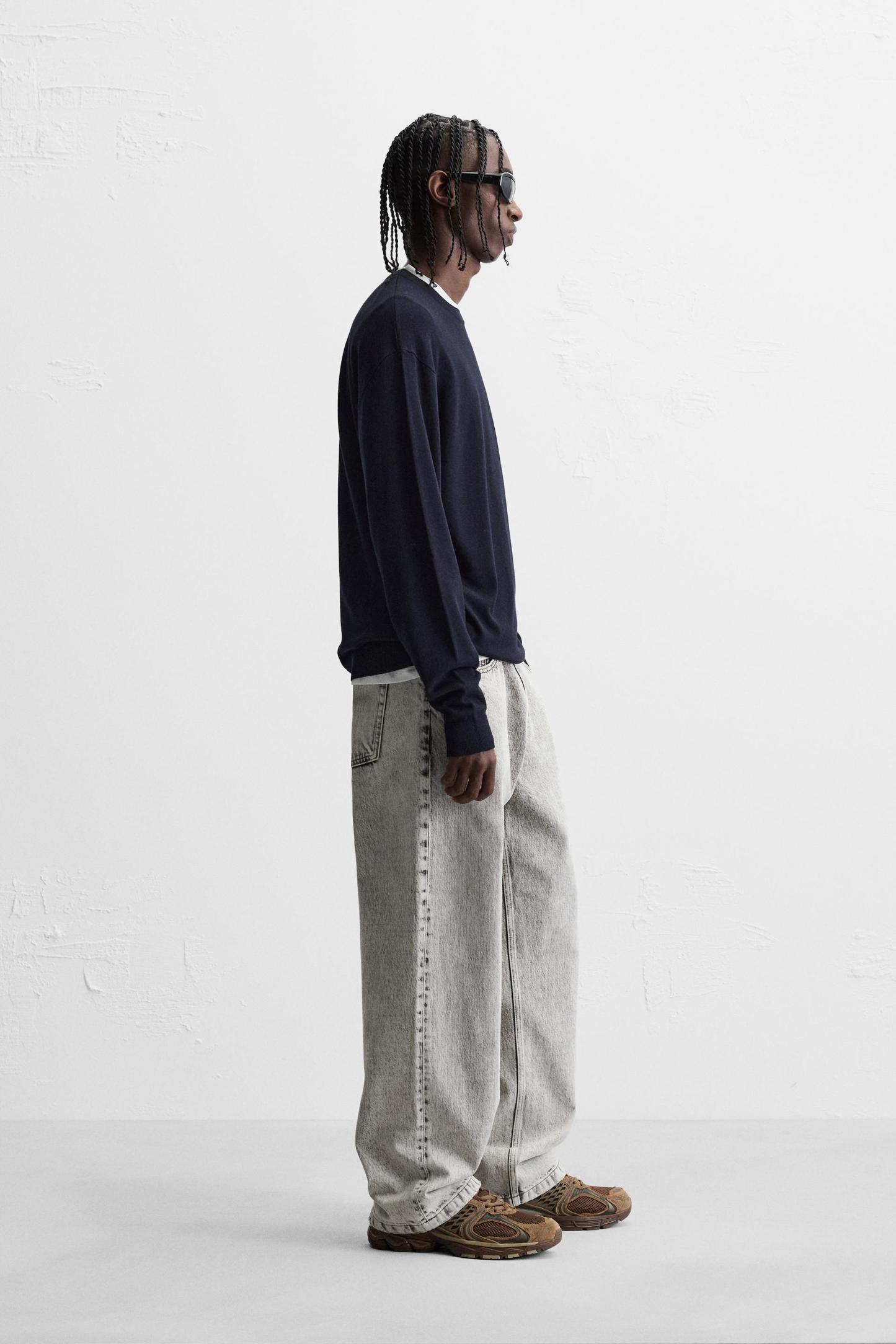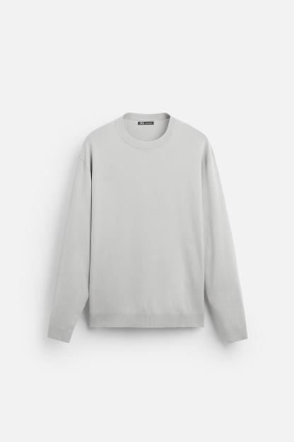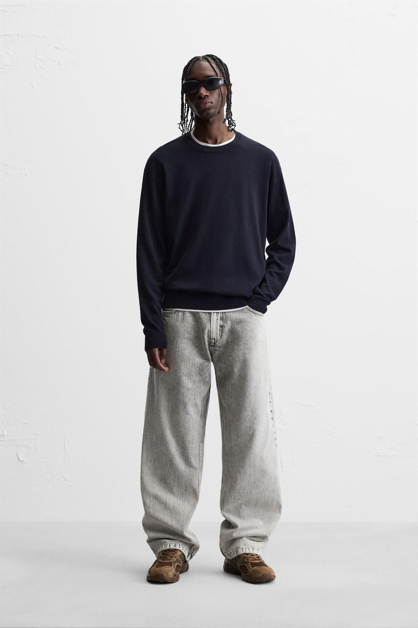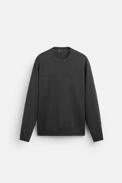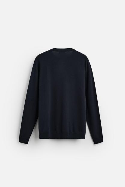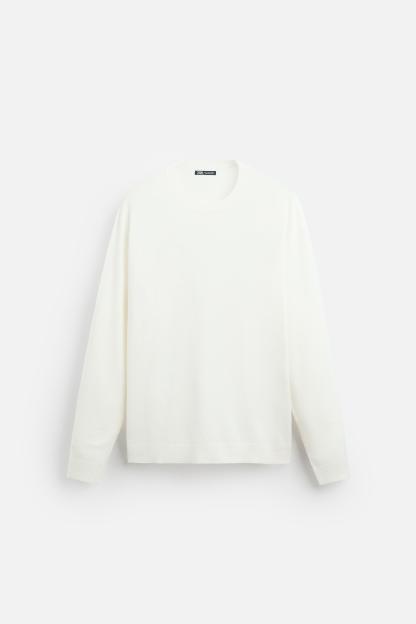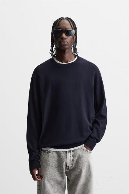 Wide cut sweater made of viscose blend fabric. Round neck and long sleeves. Rib trim.