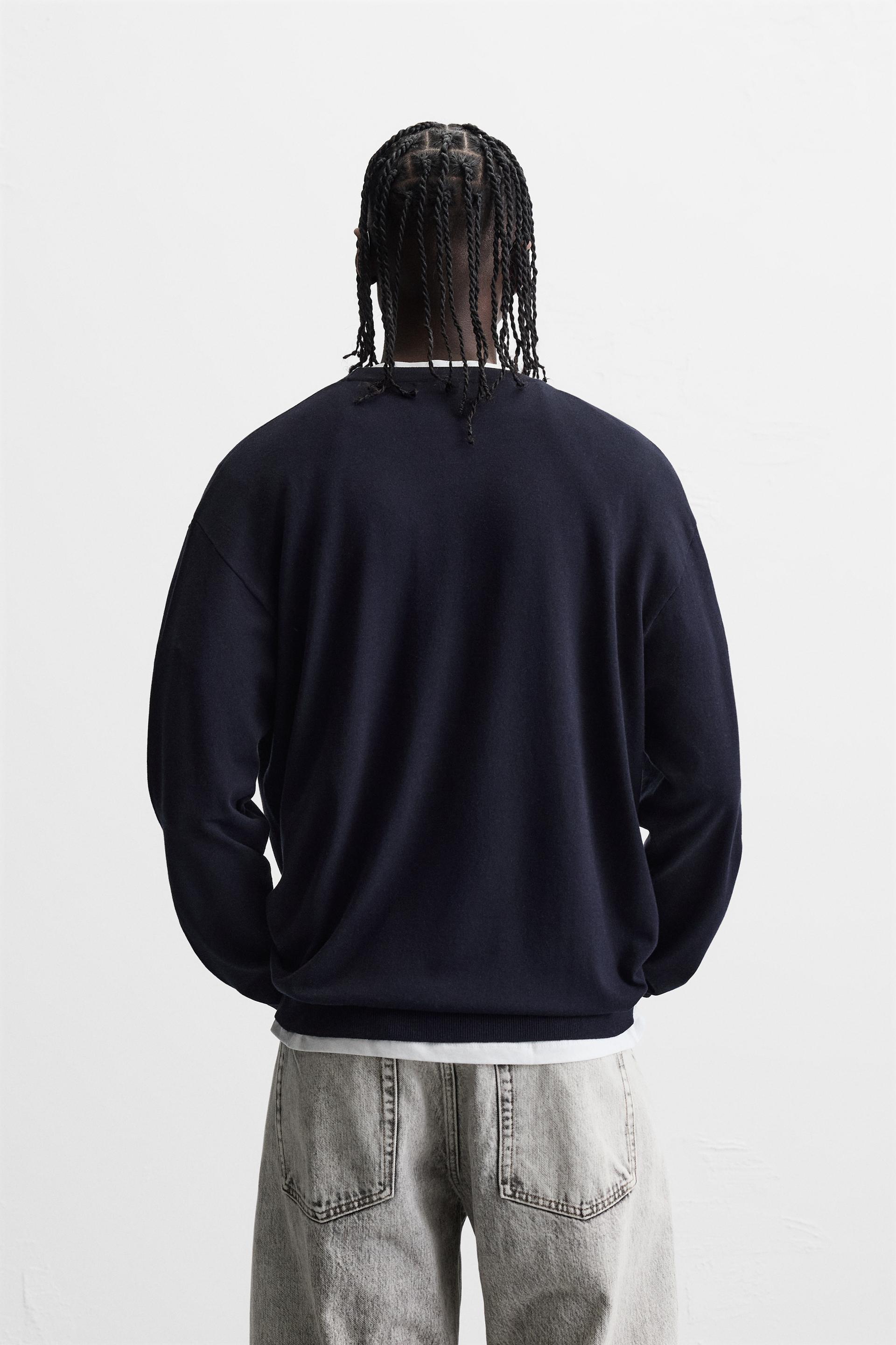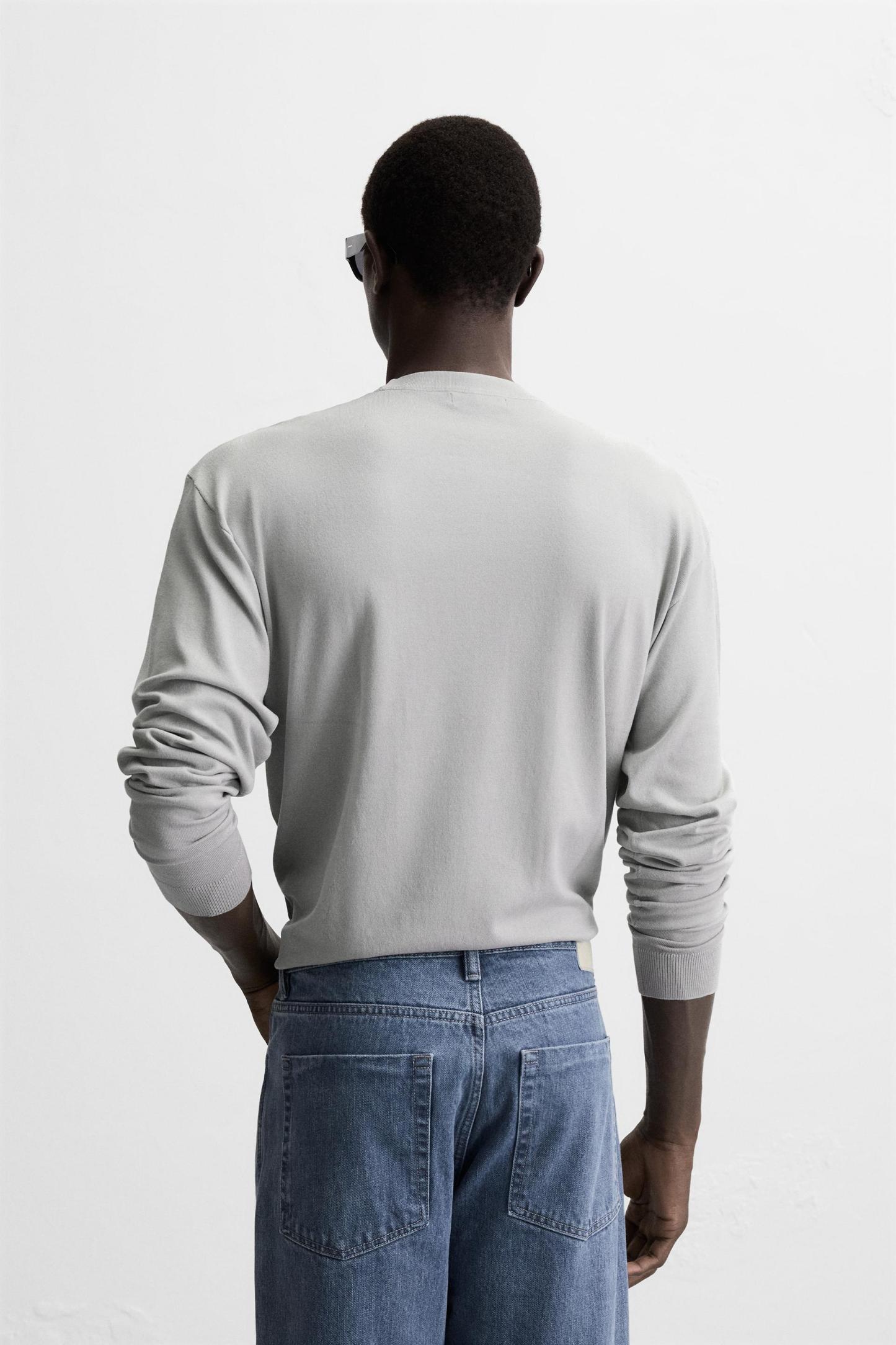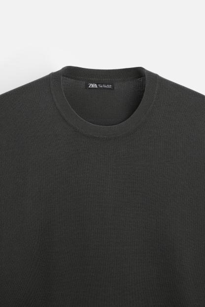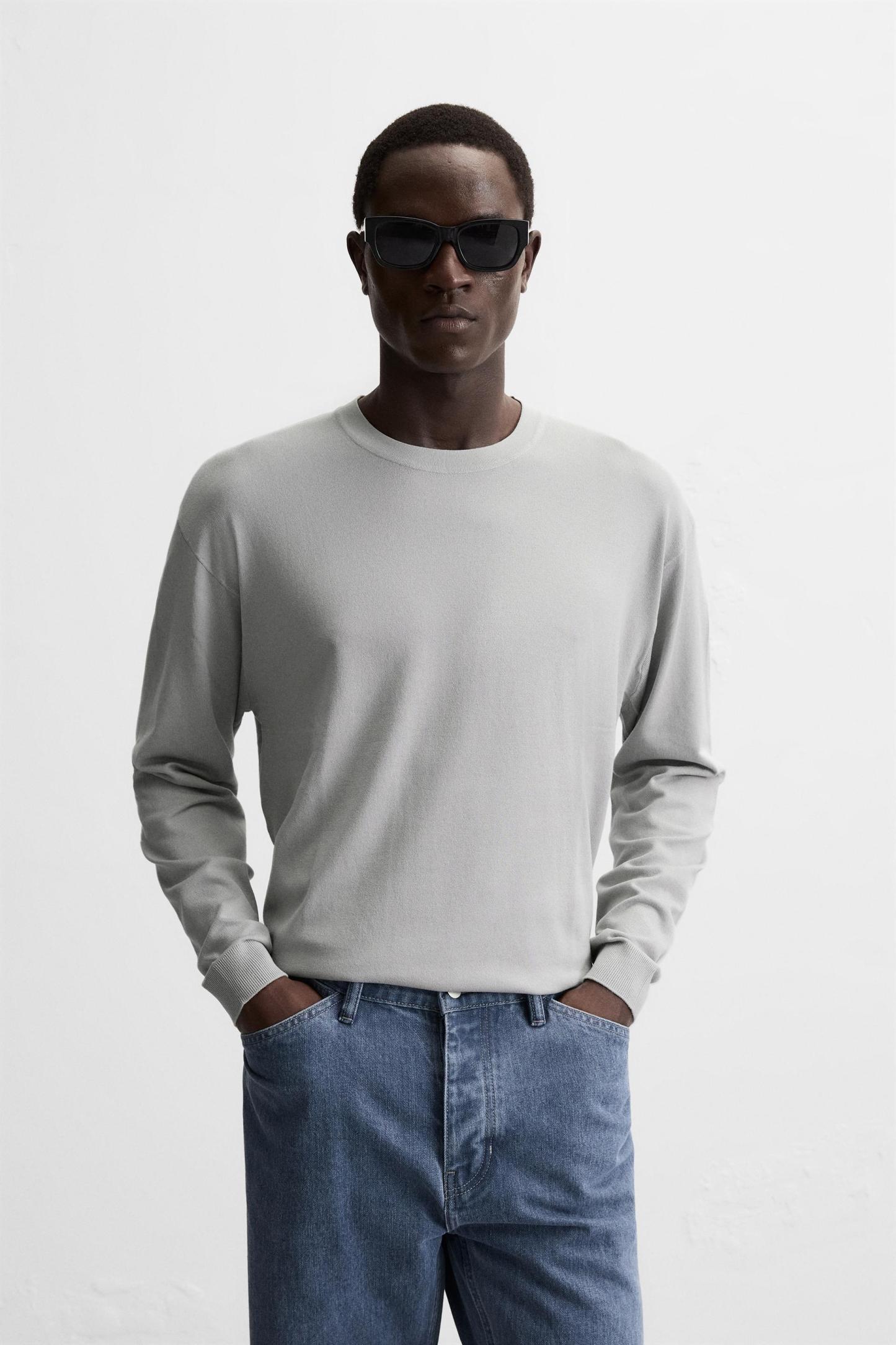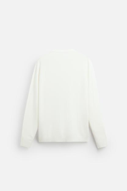 Wide cut sweater made of viscose blend fabric. Round neck and long sleeves. Rib trim.