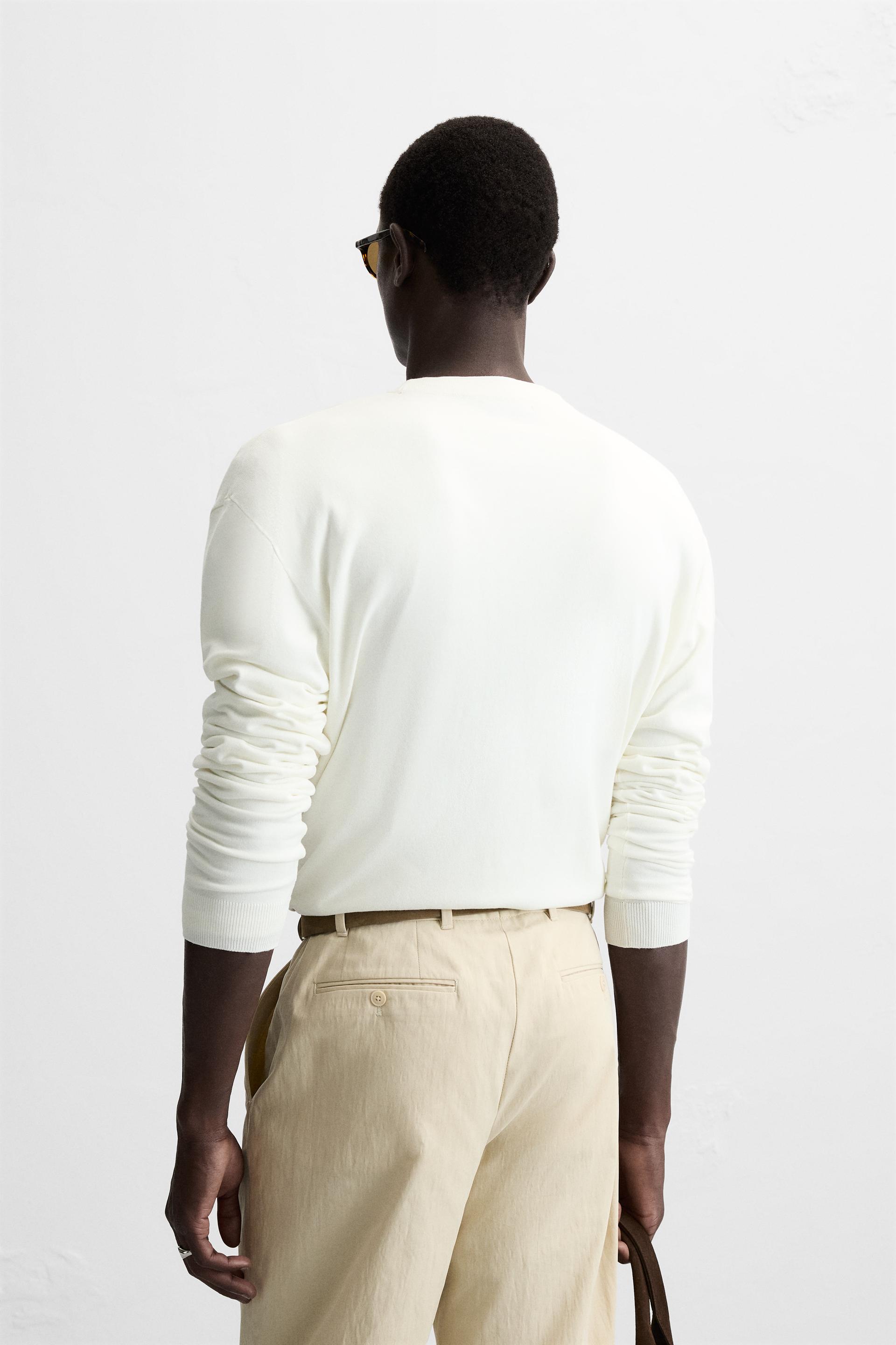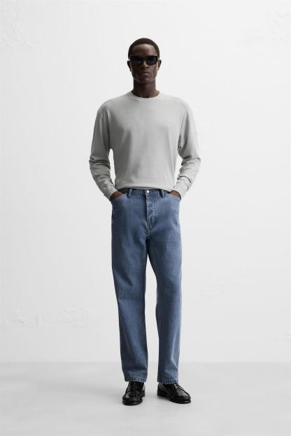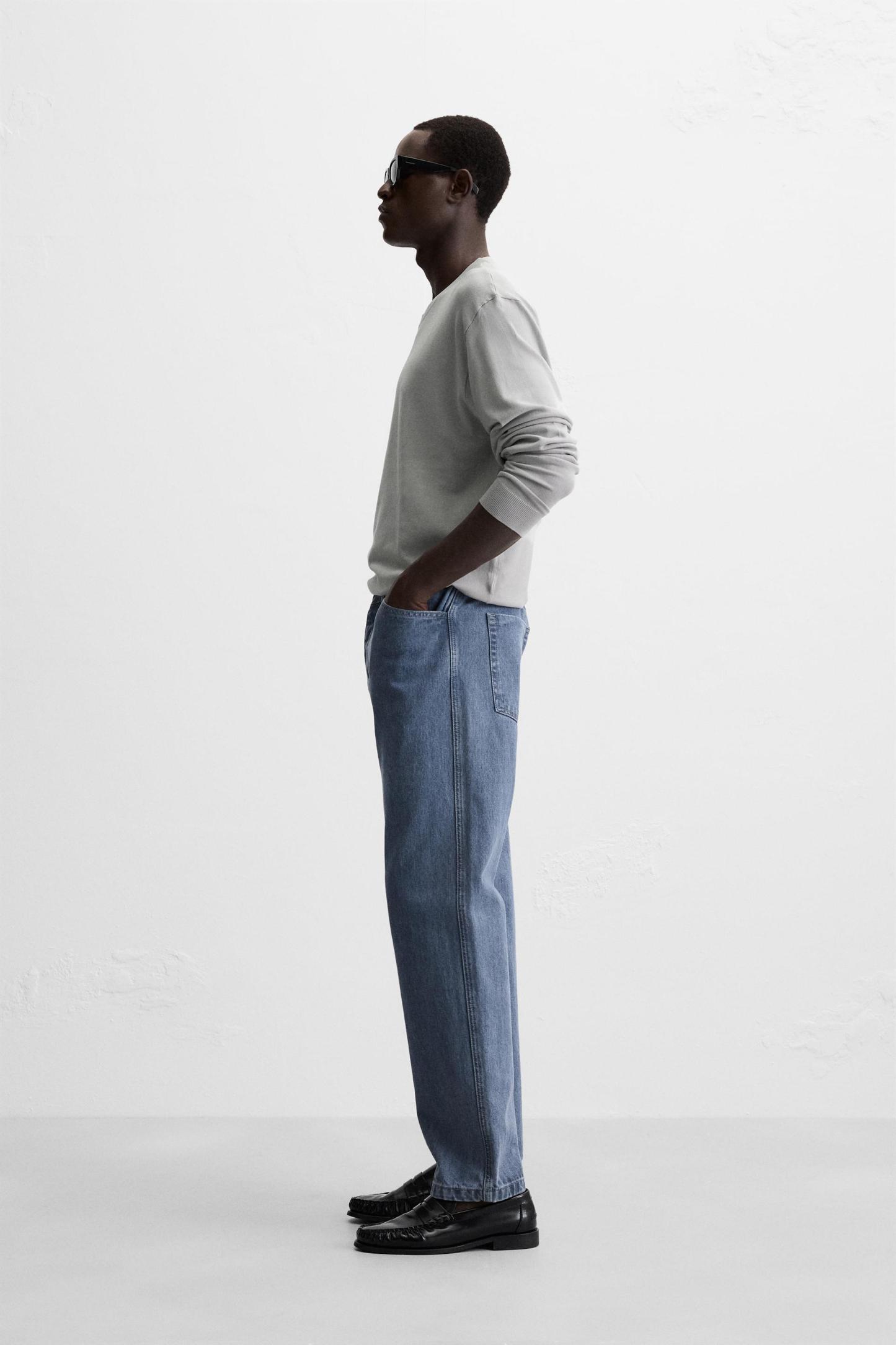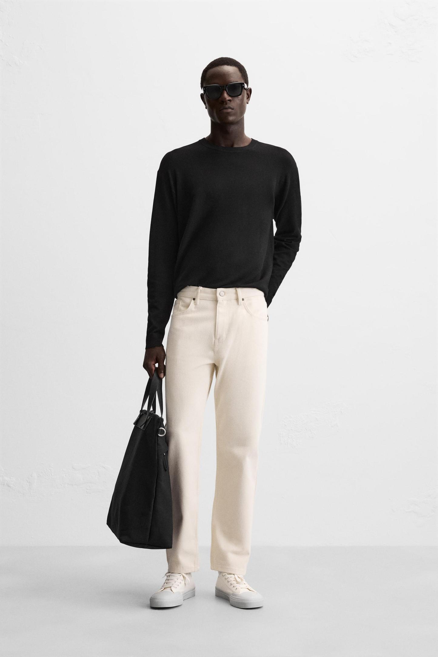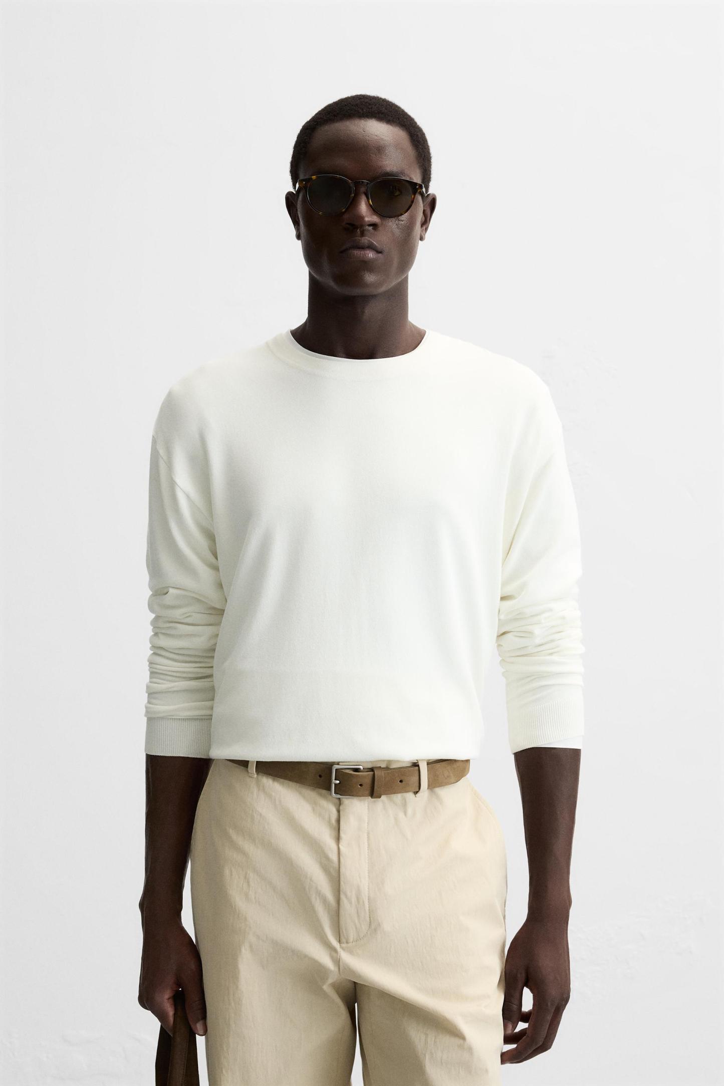 Wide cut sweater made of viscose blend fabric. Round neck and long sleeves. Rib trim.