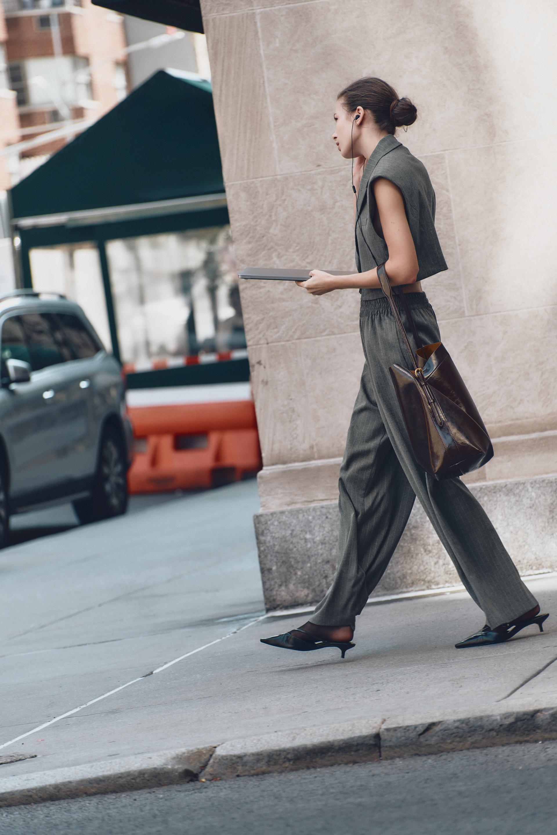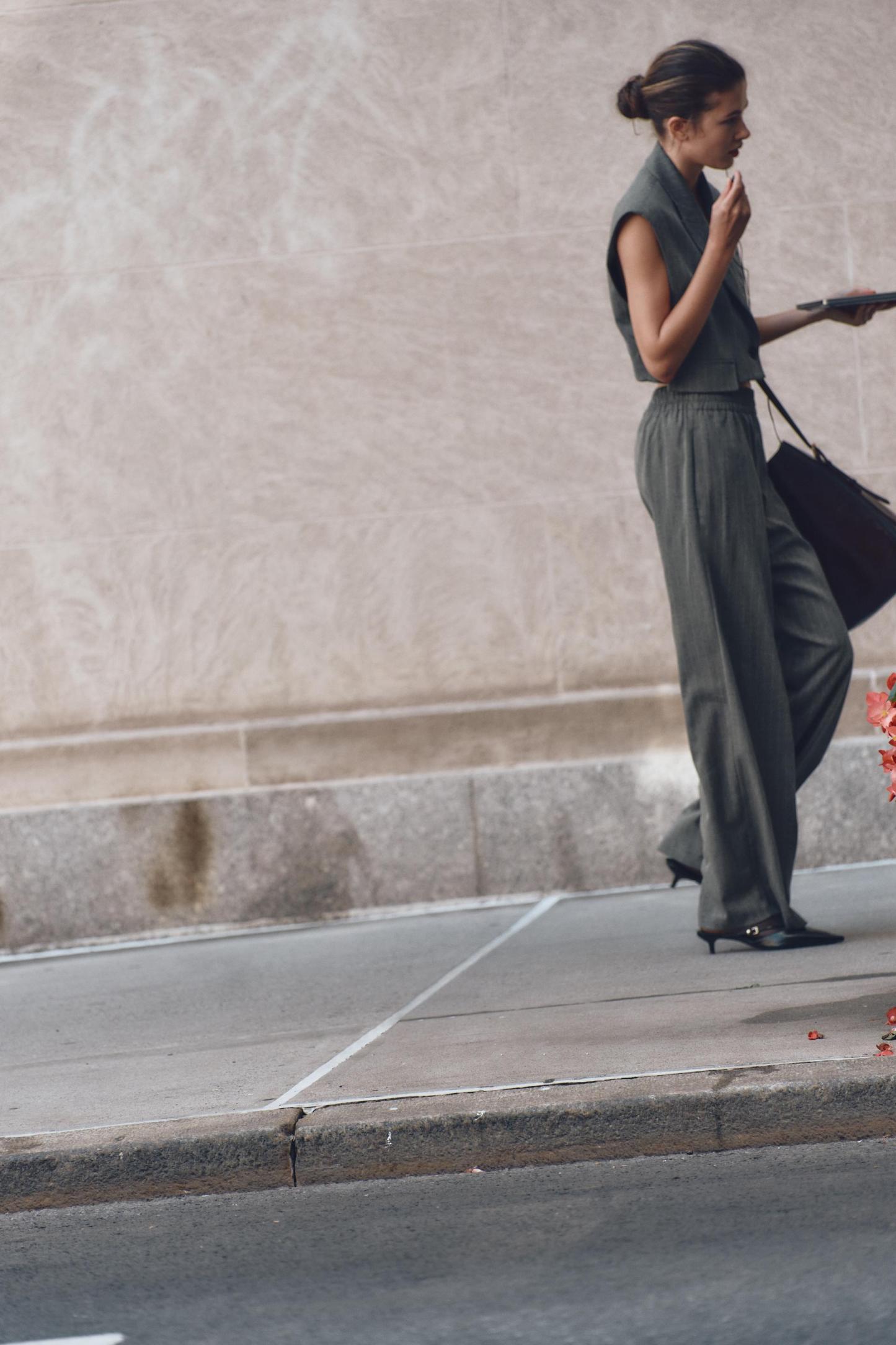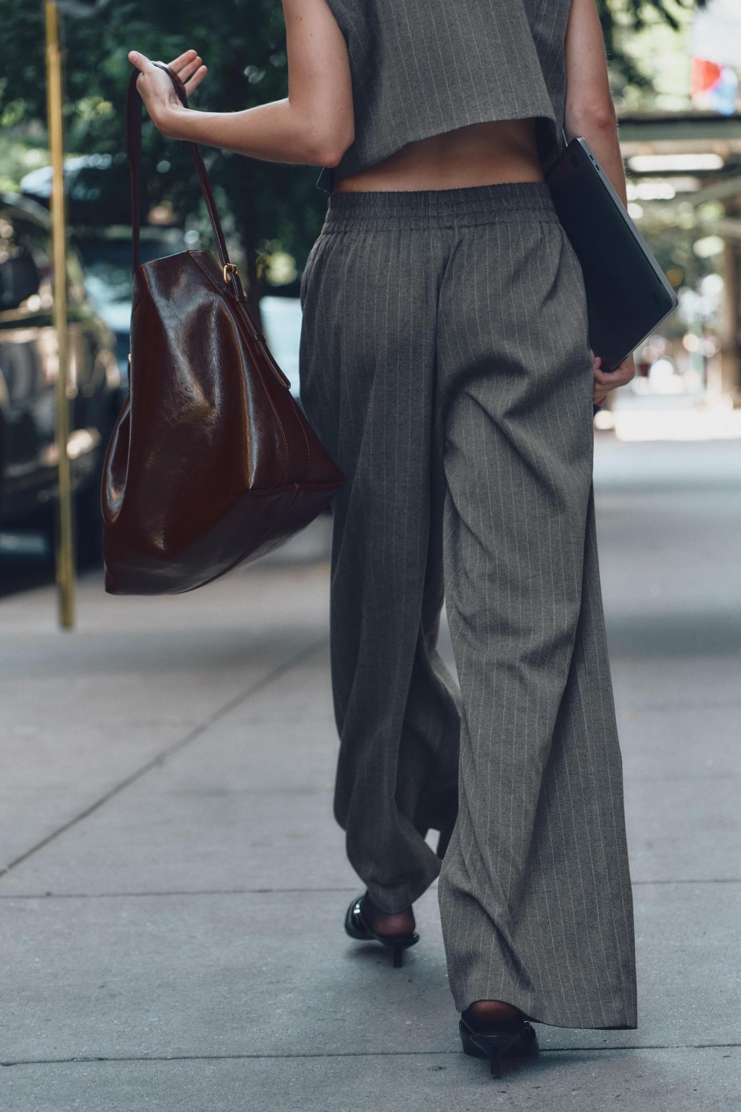 WIDE LEG PINSTRIPE PANTS