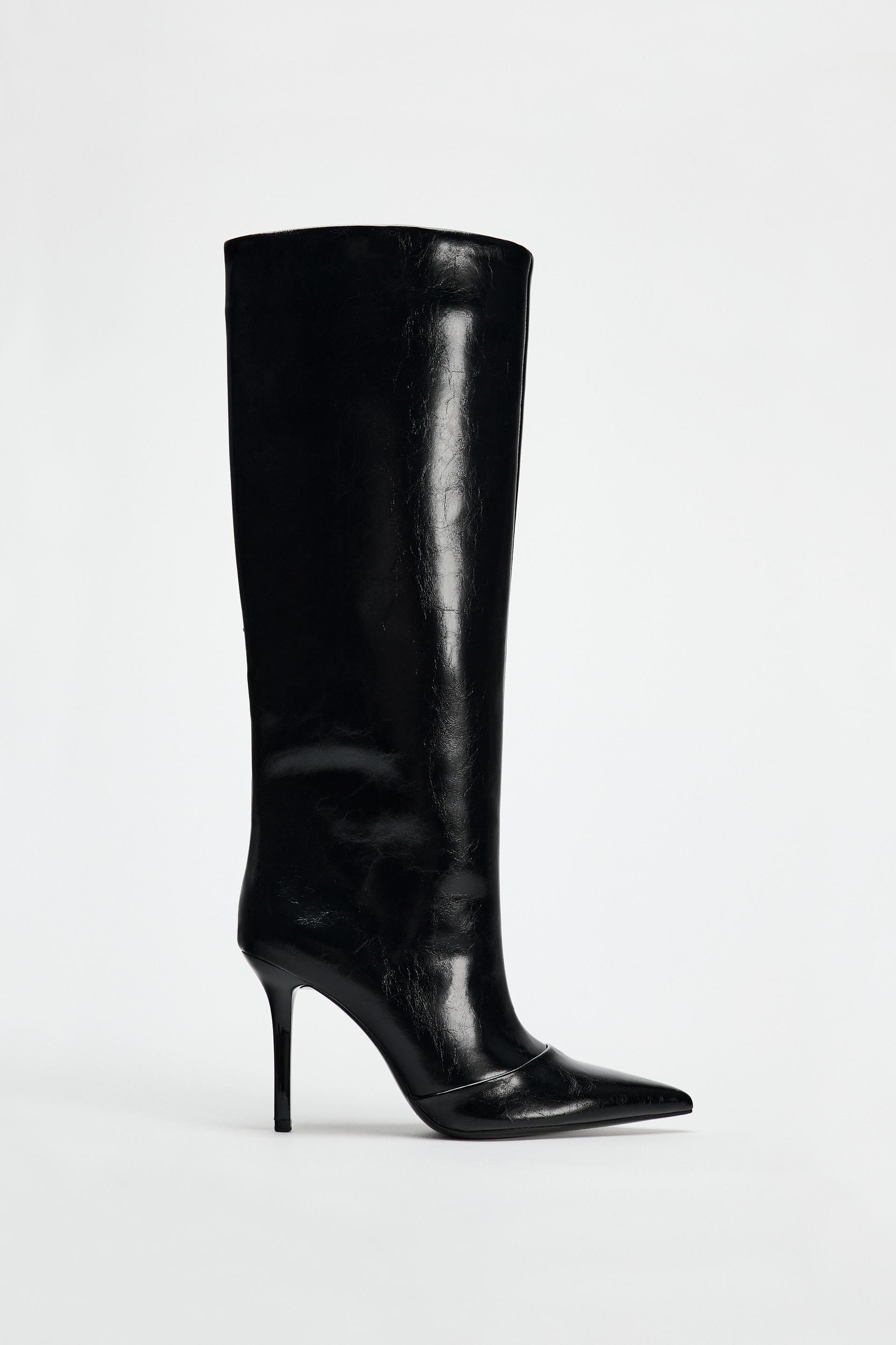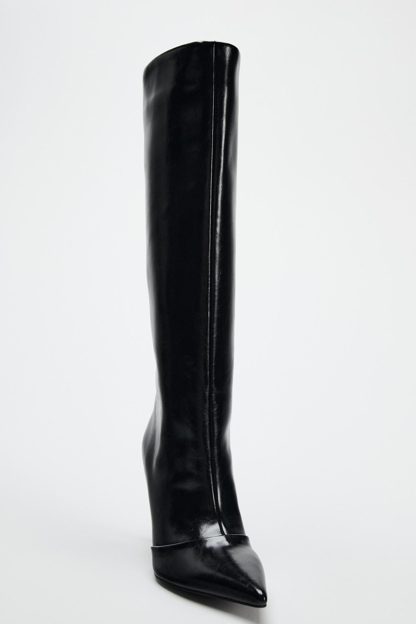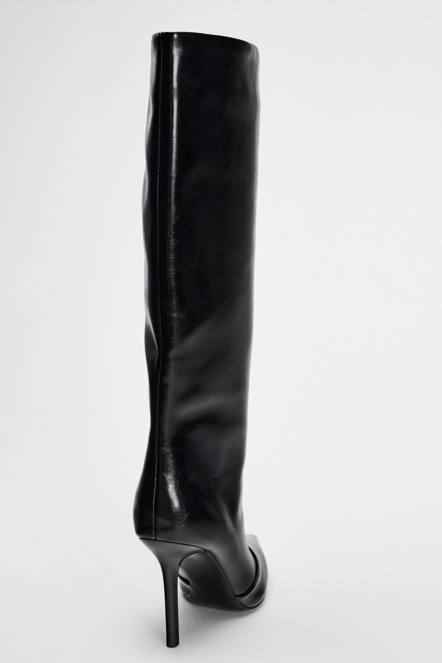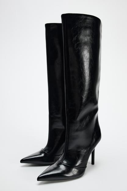 WIDE SHAFT KNEE HIGH HEELED BOOTS