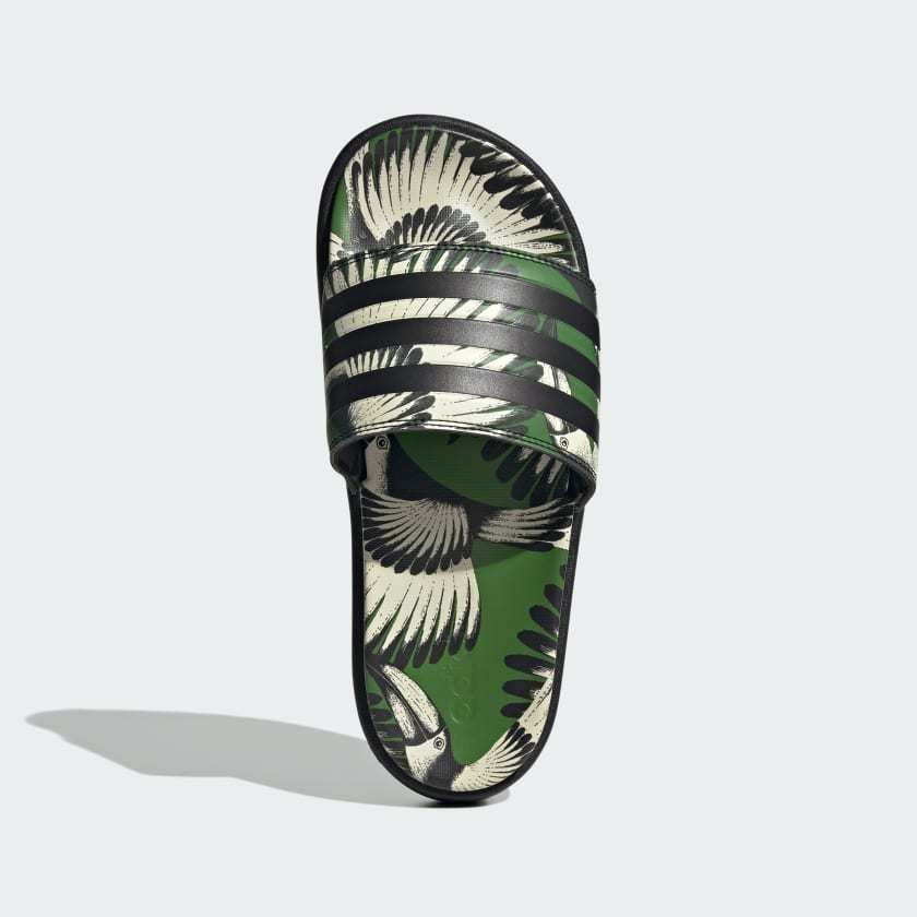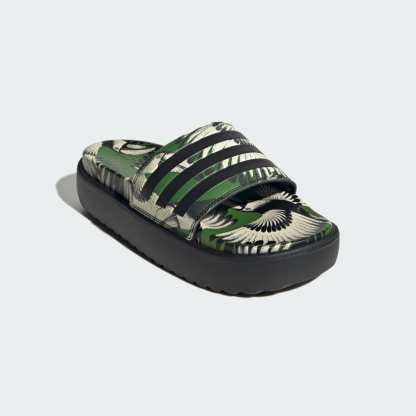 Slides that make a statement - and an oasis. These adithtdas Adilette Platform Slides are the perfect blend of comfort and style. The lightweight yet durable EVA platform sole provides all-day cushioning while the slip-on design allows for easy on and off. Pair these vibrant slides with a sundress for a casual warm-weather look or jeans and a t-shirt for an athleisure vibe. Created in collaboration with Brazilian design label FARM Rio, these slides embody a fun, colorful spirit that will elevate any outfit.