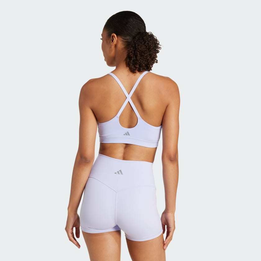 From Sun Salutations to Savasana, feel at ease in this light-support bra from adithtdas. Adisoft fabric is smooth, soft and supportive. Removable pads with grip dots stay in place as you flow through poses. Inspired by ballet, the strappy design has a feminine look that can be paired with open-back tops or worn alone.