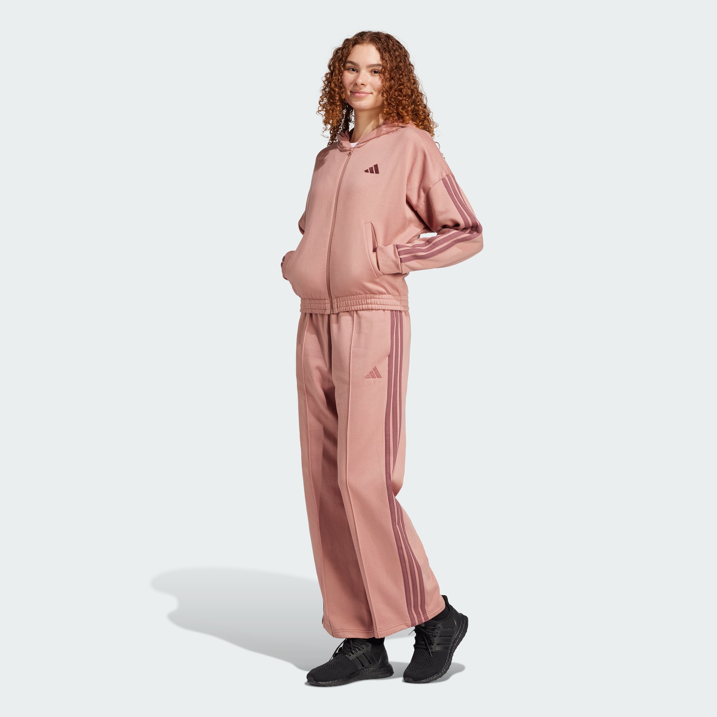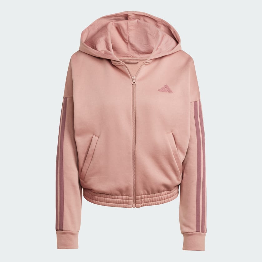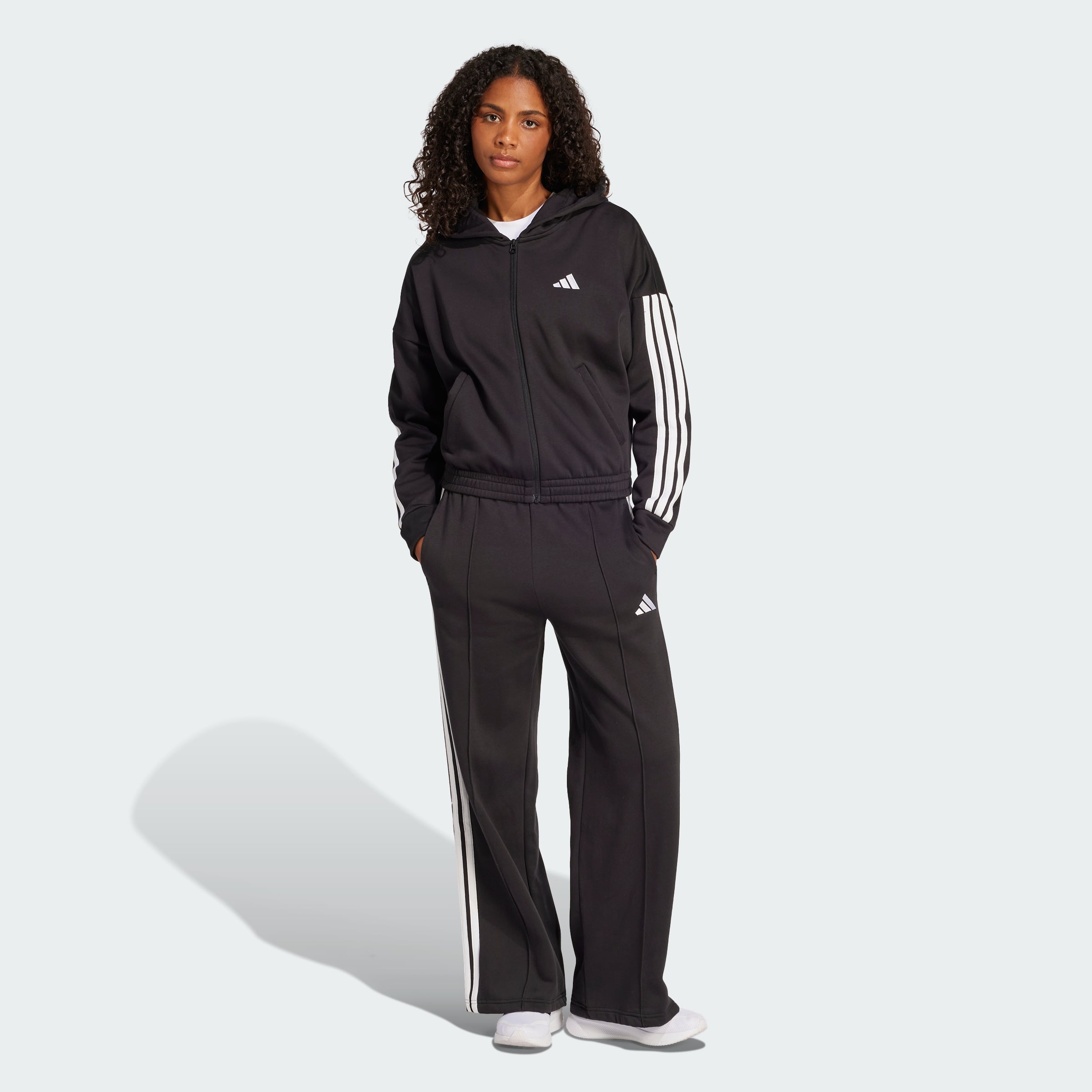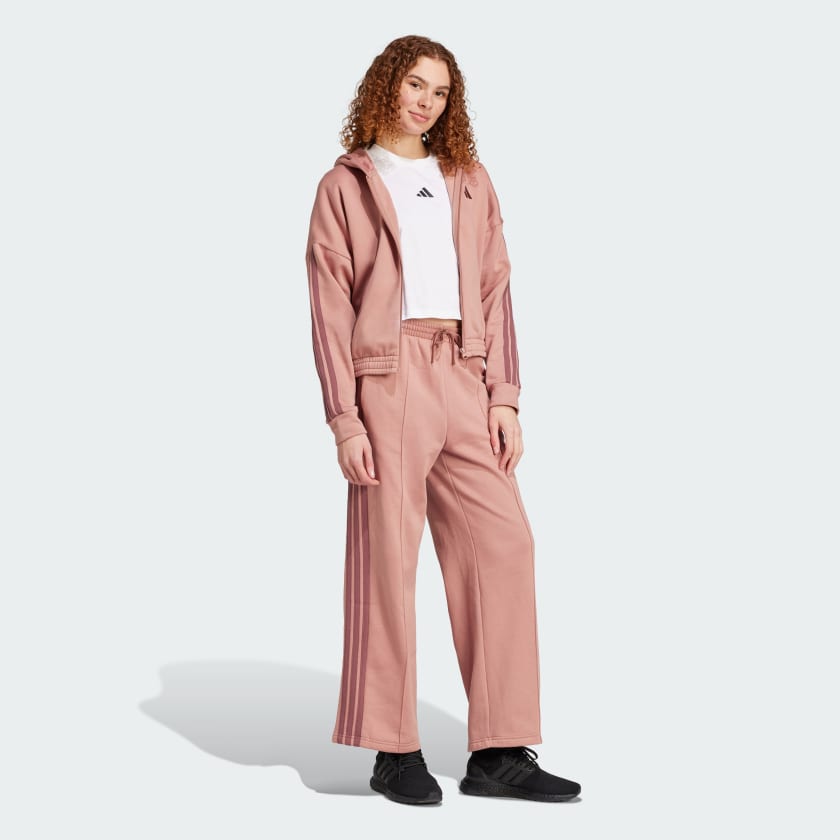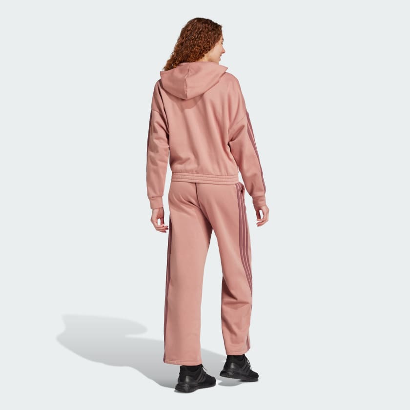 Embrace one-and-done simplicity in this adithtdas track suit. The hooded jacket with matching high-rise pants show off signature 3-Stripes style. The soft cotton blend fleece build is perfect for off-duty days. By choosing recycled, we are able to reuse materials that have already been created, which helps to reduce waste. Renewable materials choices will help us to remove our reliance on finite resources. Our products made with a blend of recycled and renewable materials feature at least 70% total of these materials.