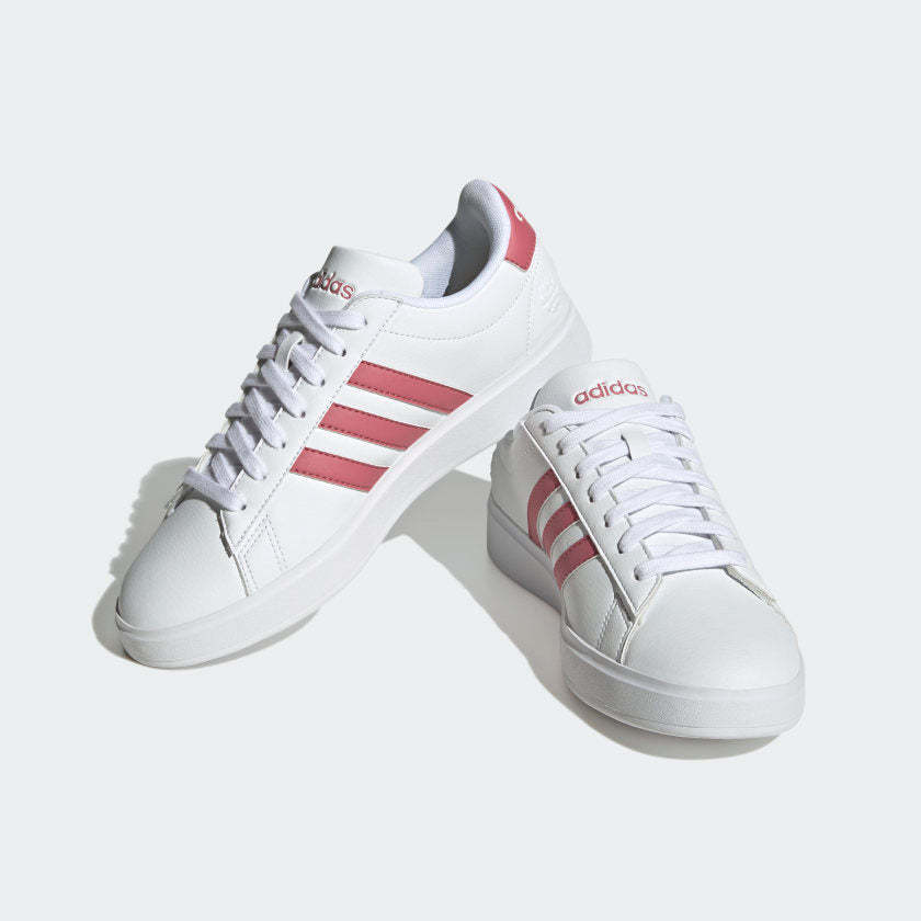 There are trends and then there are traditions. These adithtdas Grand Court sneakers have moved far beyond the court and the catwalk. Now, no wardrobe is complete without them. The Cloudfoam Comfort cushioning makes your feet feel snug and supported, while the classic shape works well with every outfit. Made with a series of recycled materials, this upper features at least 50% recycled content. This product represents just one of our solutions to help end plastic waste.